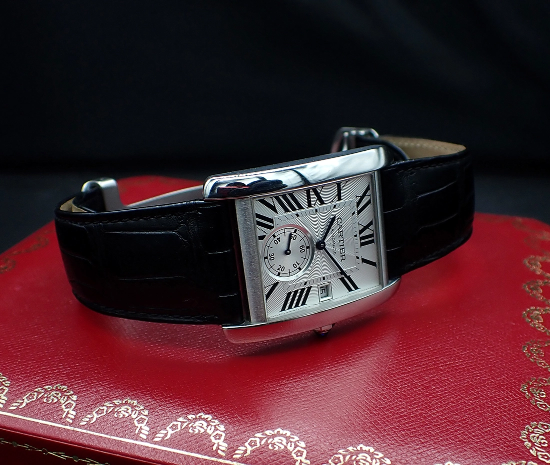 ·On offer is this modern, handsome Cartier Tank MC ref. W5330003 in stainless steel with stunning silver guilloché Roman numeral dial and high-grade in-house automatic caliber 1904-PS MC. This model is part of the now discontinued line of watches that featured Cartier’s first true manufacture-developed & produced caliber after years of relying on other suppliers. For whatever reason, Cartier abandoned this concept after about a decade and took an abrupt U-turn back to almost exclusively outsourcing Piguet and ETA movements again. But it makes for a very interesting chapter in Cartier’s history and who knows what the future will bring for these models in terms of collectibility down the road?