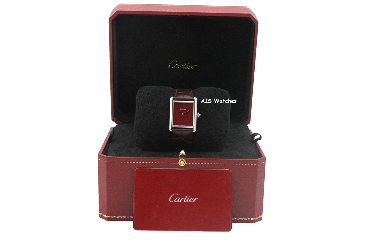 Up for sale is a Cartier Must de Cartier WSTA0054 Red Dial 33.7MM x 25MM Box & Papers. The timepiece is in excellent condition.
