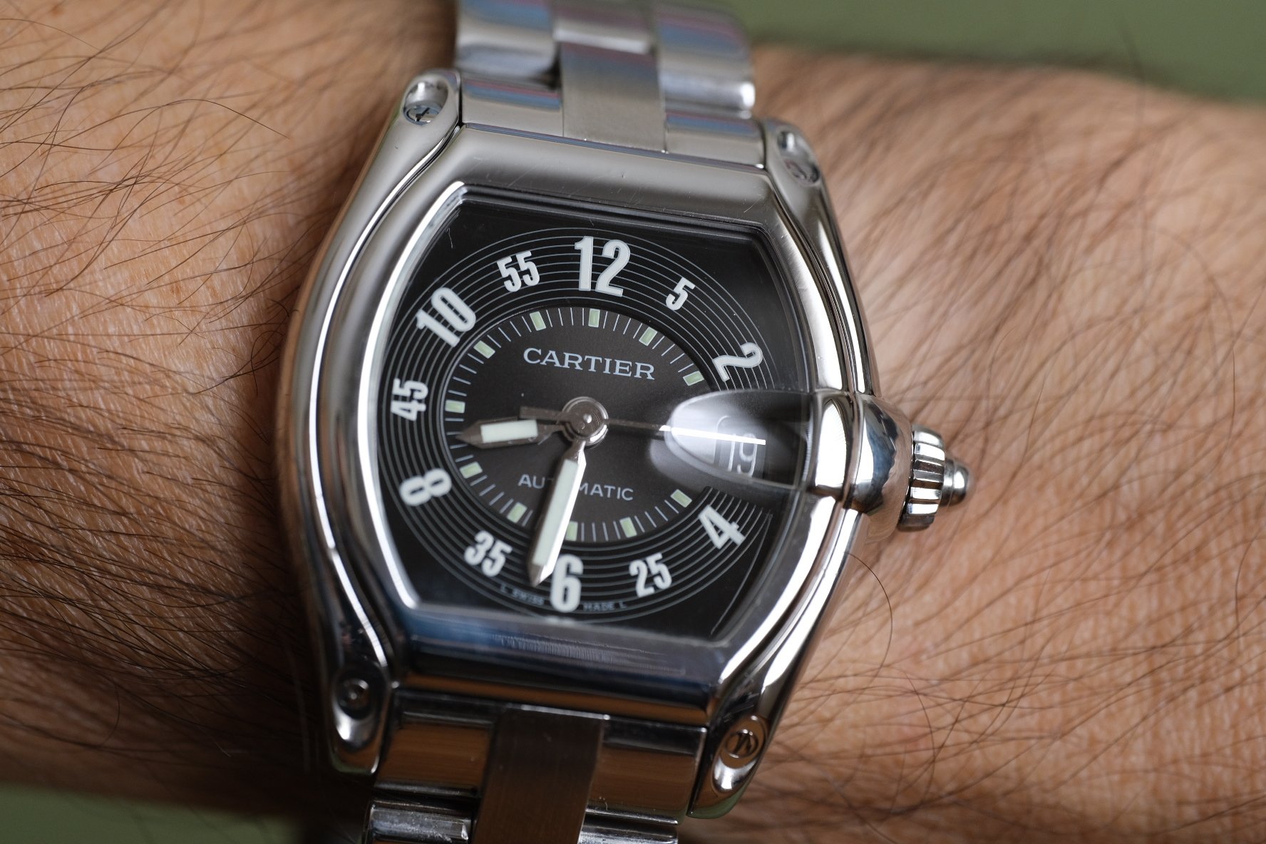 MOVEMENT: Comes with Cartier service papers. Though very recent service history unknown the Cartier automatic is running beautifully, winding feels nice and smooth, quickset date working perfectly and timegrapher numbers are STELLAR at 1 second per day and a very healthy amplitude of 296!