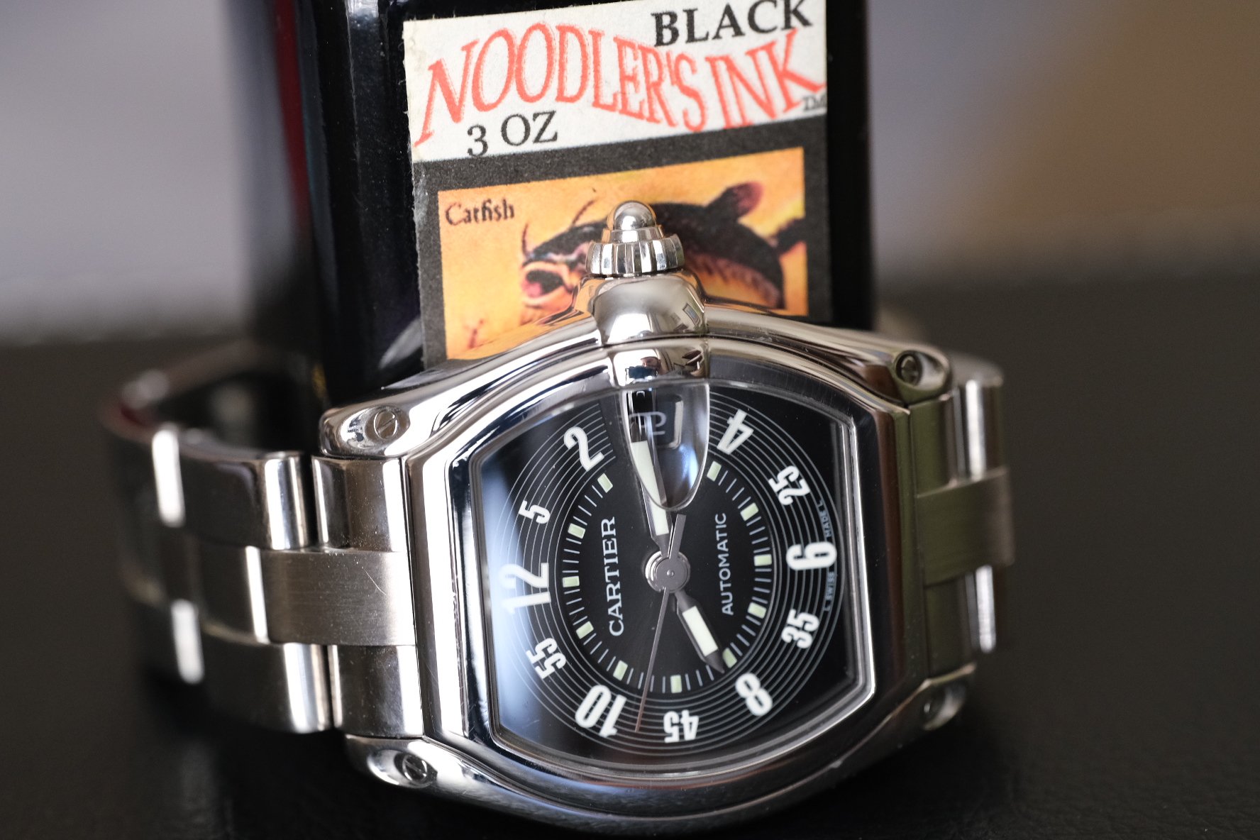 ·Sunday cruisin in a ‘61 Corvette? How about mixing that feeling and that mid century design flare together into a watch?!? Could only be talking about the Cartier Roadster! An absolute design marvel, Cartier only produced this sweetness for 11 years, and it’s been discontinued since 2012. I think it’s a sleeper in the Cartier lineup and extremely undervalued - simply gorgeous, and crazy cool in this all stealth black concentric circle track version!