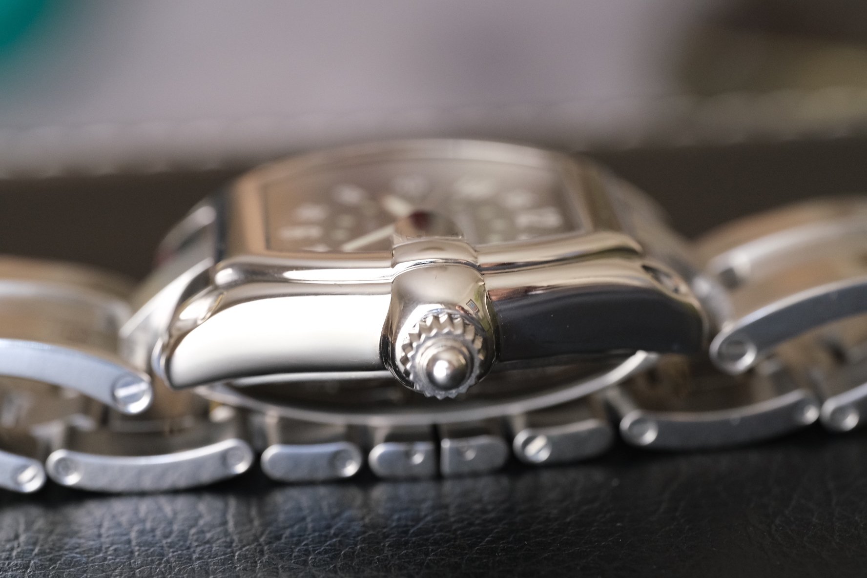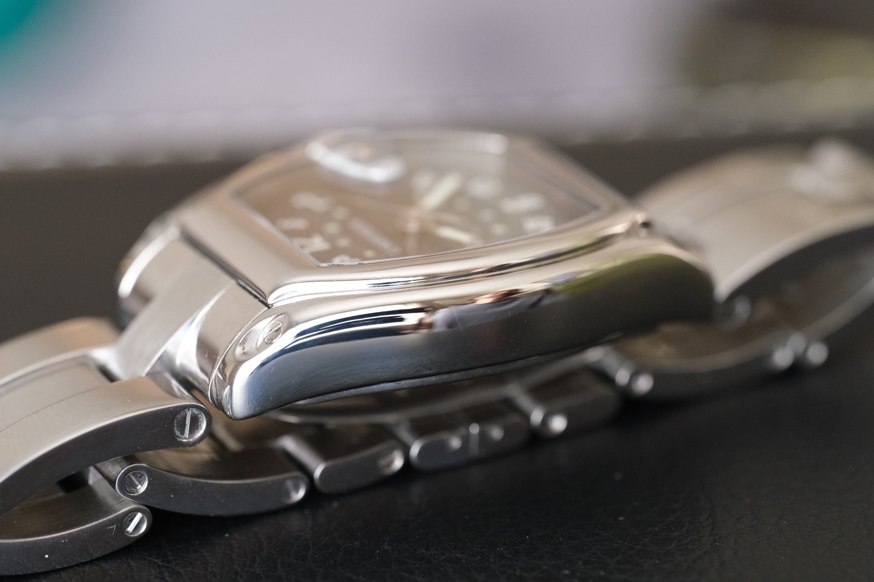 CASE: Stainless steel case measuring 37MM x 44MM, - talk about classic design meets modern sizing, this wears beautifully! A whole lot of presence on the wrist, while still being classy (shown on my 6.6 inch wrist.) Case is in really nice shape, light scratches and a few small nicks, as expected, especially on a watch with this many polished curved lines, but all in one of the cleanest I’ve seen!