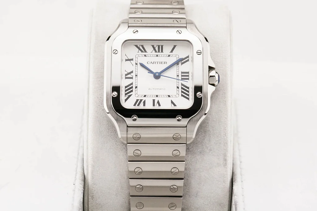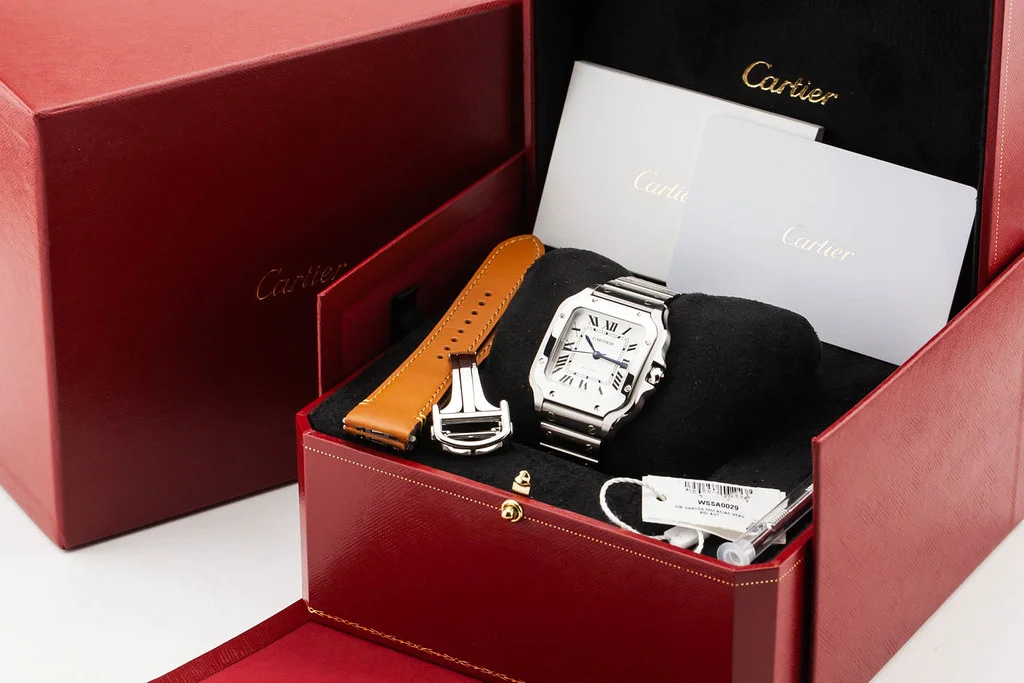 ·Up for sale is a mint condition Cartier Santos De Cartier Medium Size, reference # WSSA0029. It comes complete with all boxes, papers, booklets, Smartlink straps & clasp, tools, hang tag, and Cartier Warranty Card dated March 2026.