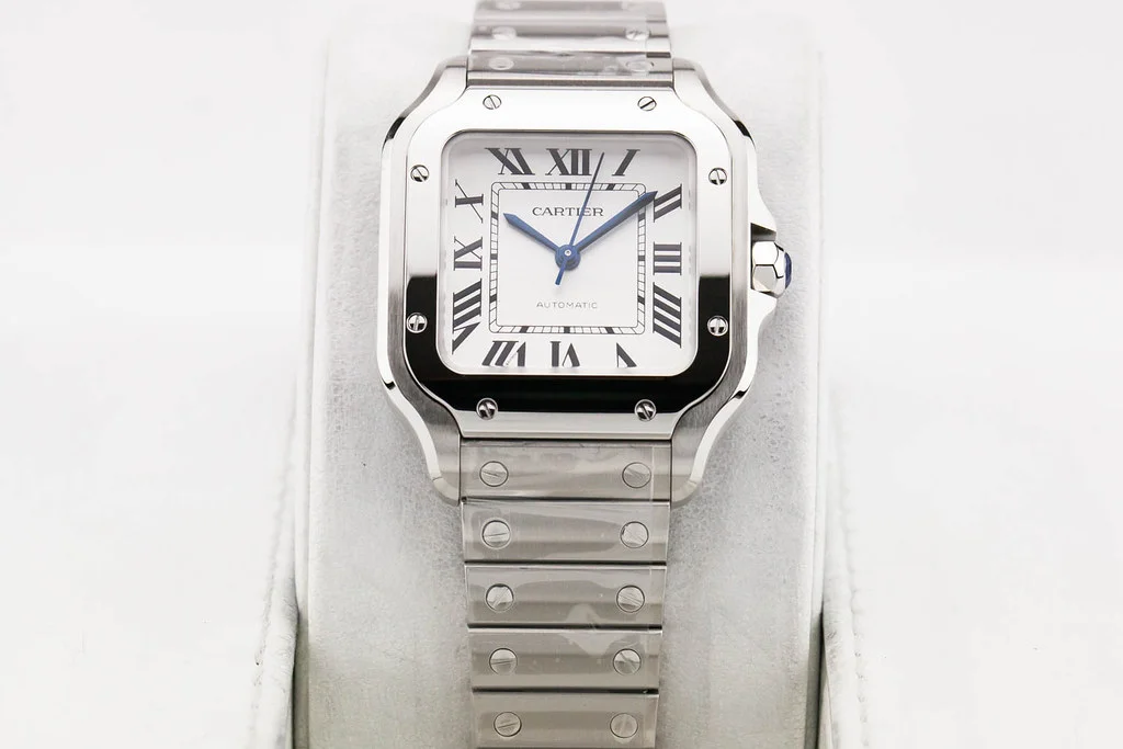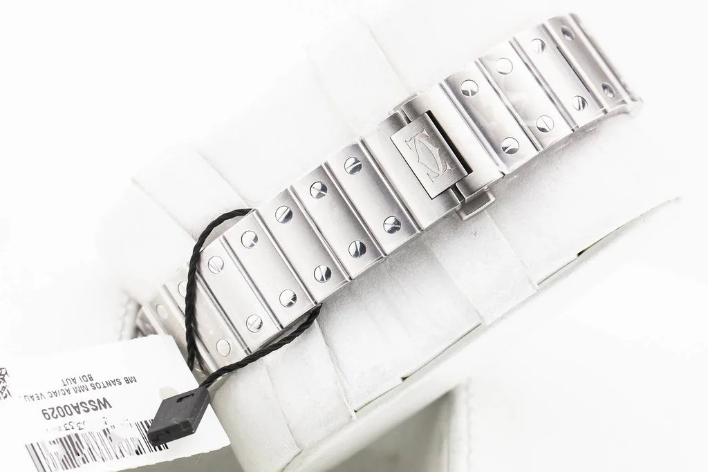 ·Up for sale is a brand new Cartier Santos De Cartier Medium Size, reference # WSSA0029. It comes complete with all boxes, papers, booklets, Smartlink straps & clasp, tools, hang tag, bezel guard, and Cartier Warranty Card dated May 2025.