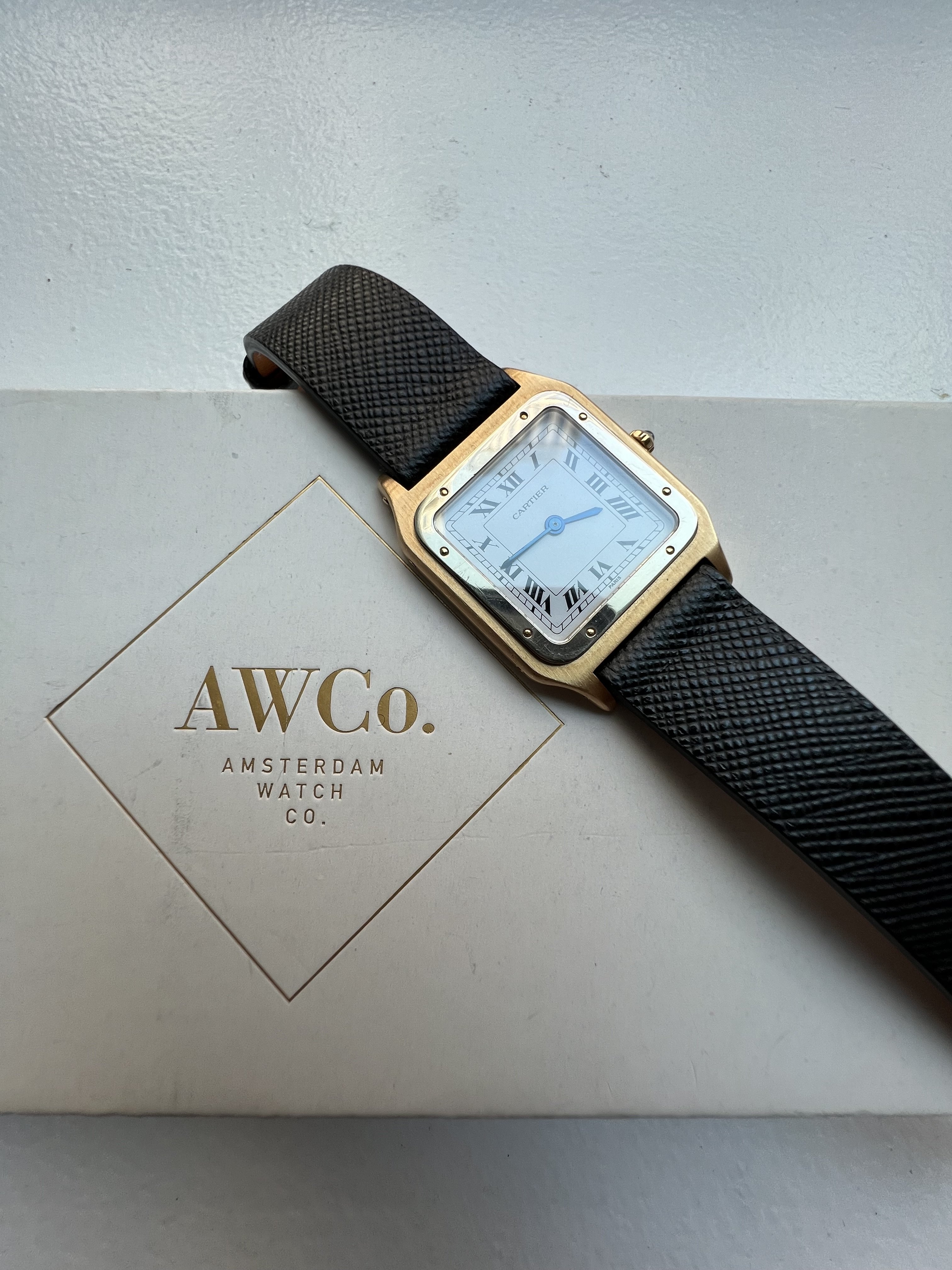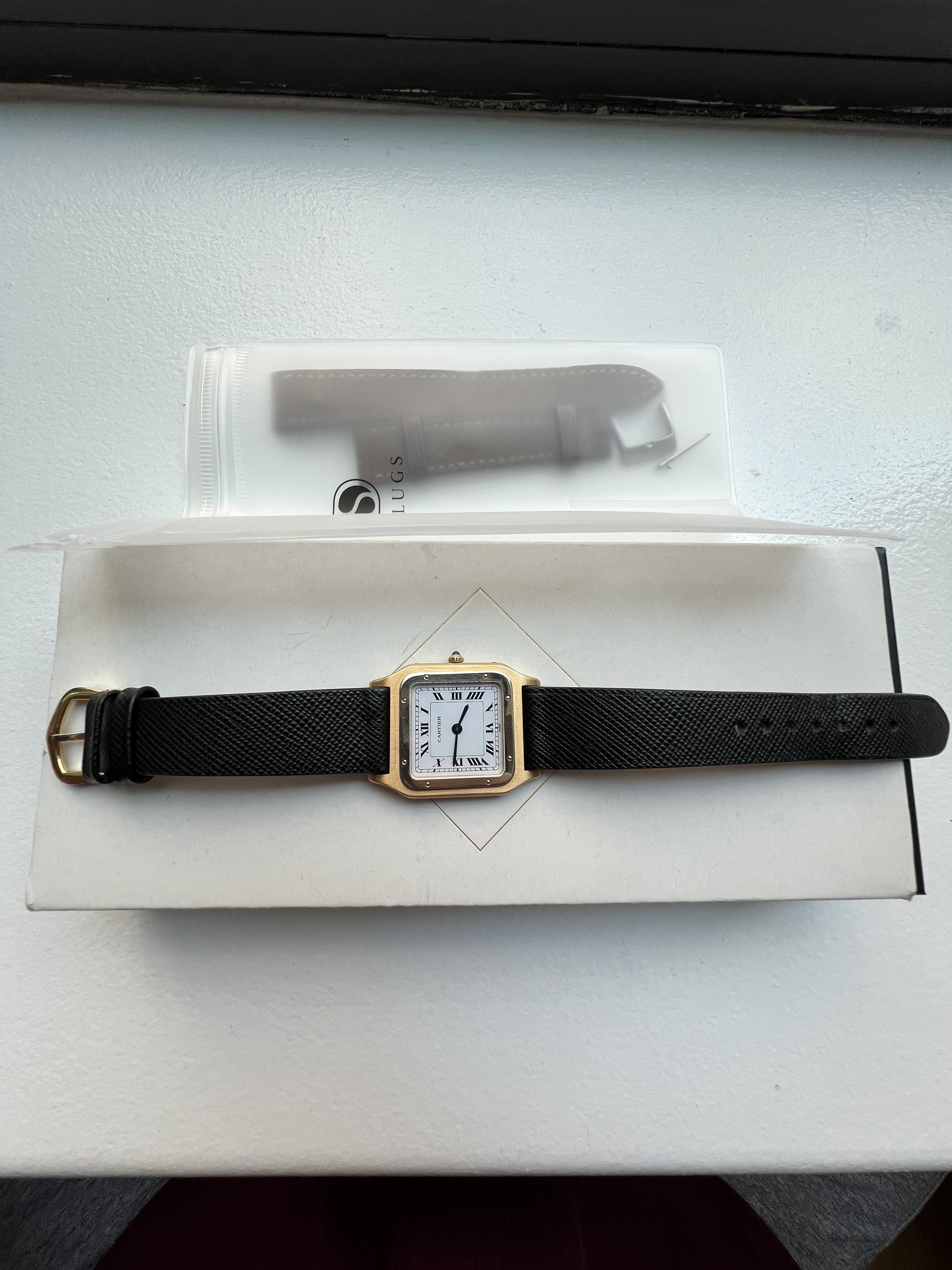 -Comes with two straps, AWCo calfskin strap, and Delugs black saffiano strap