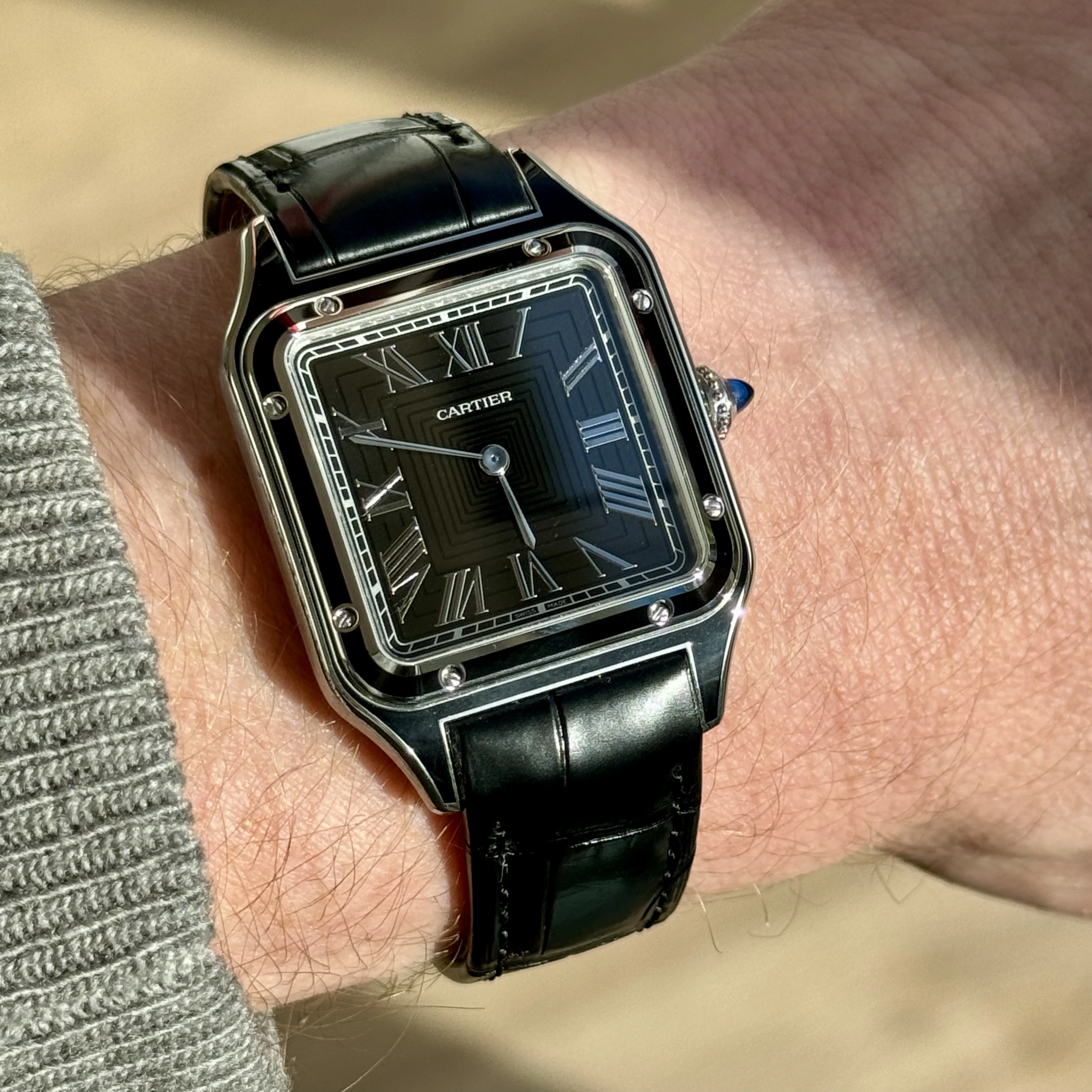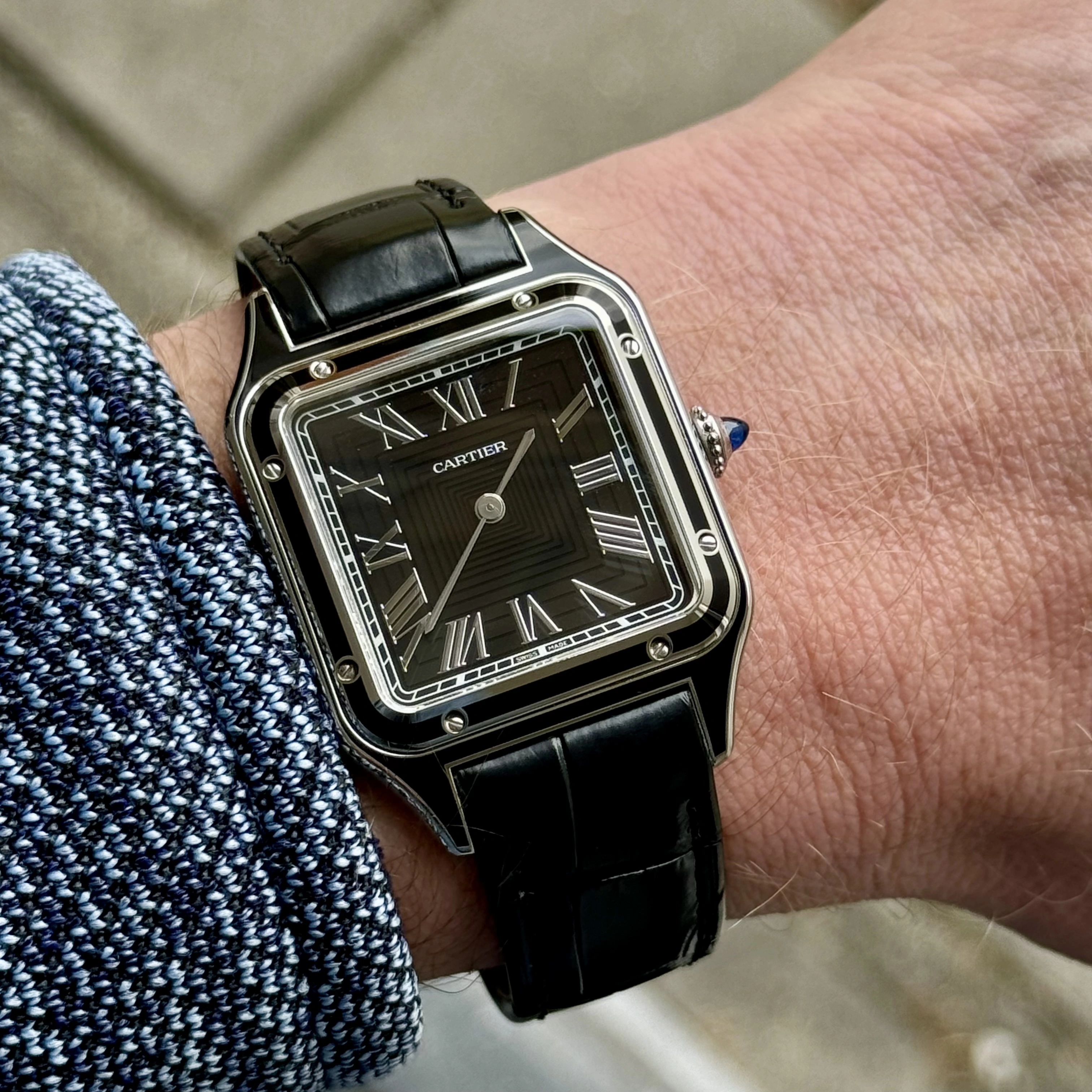Choices, choices… In order to fund another purchase, I would like to offer this Cartier Santos Dumont ‘black lacquer’ for sale.