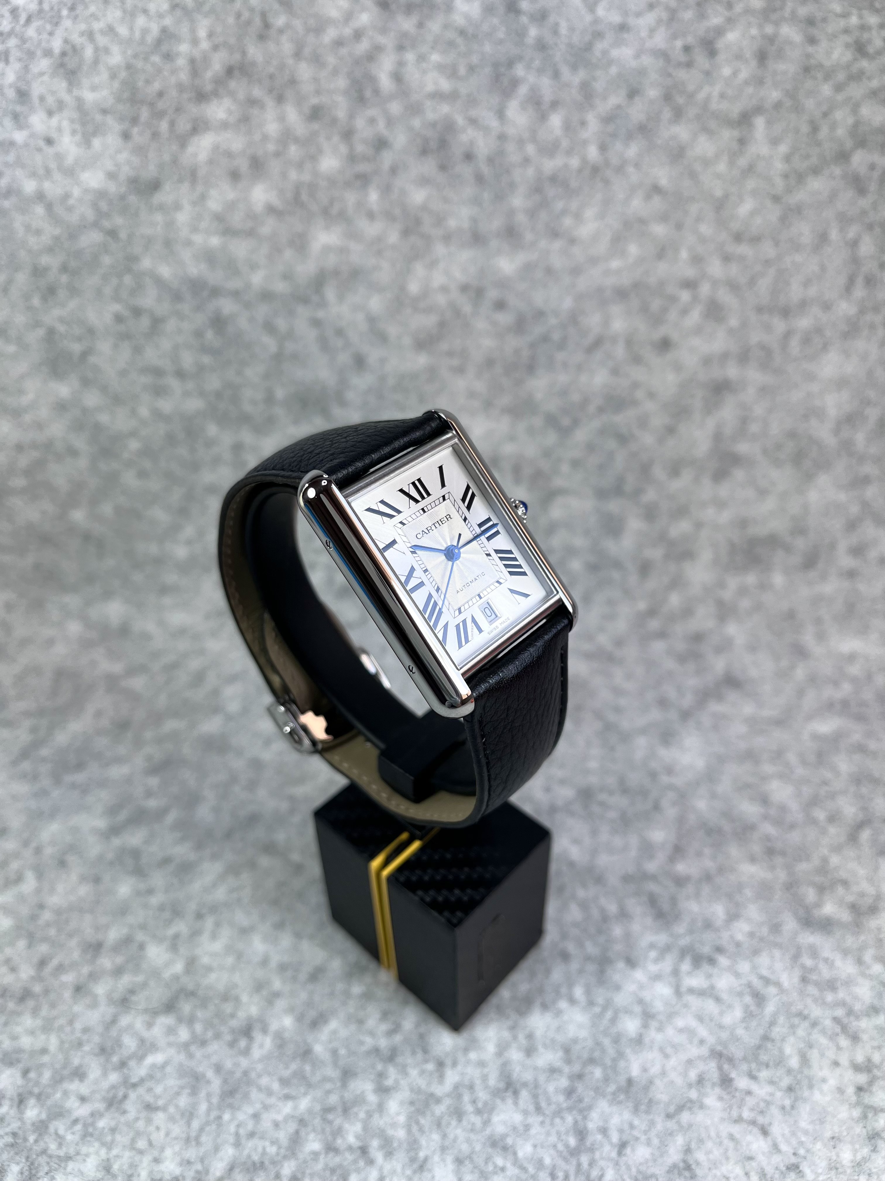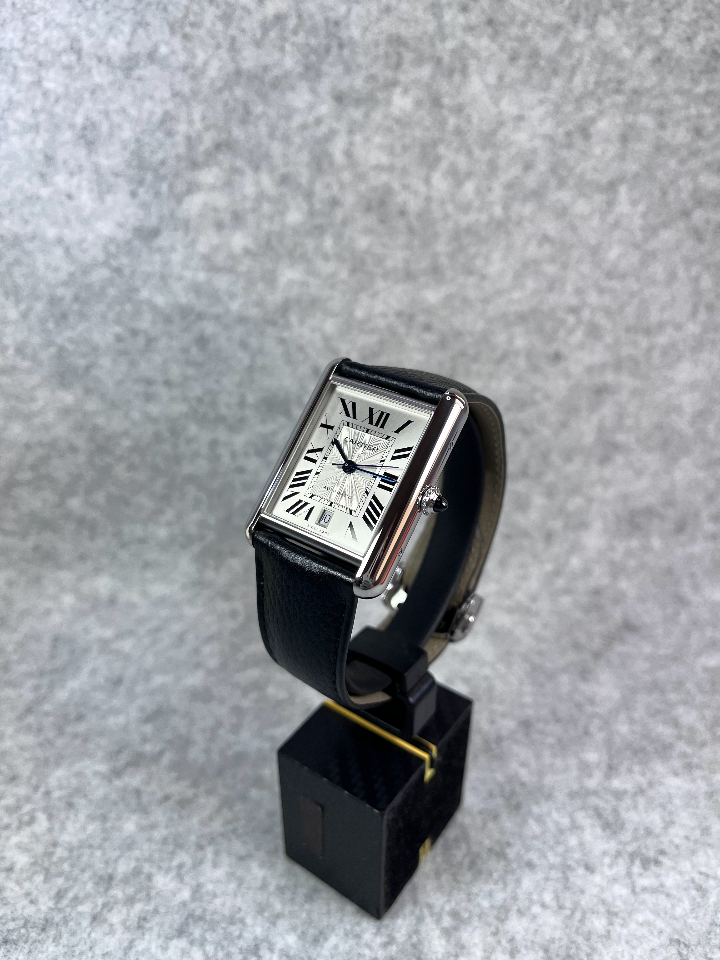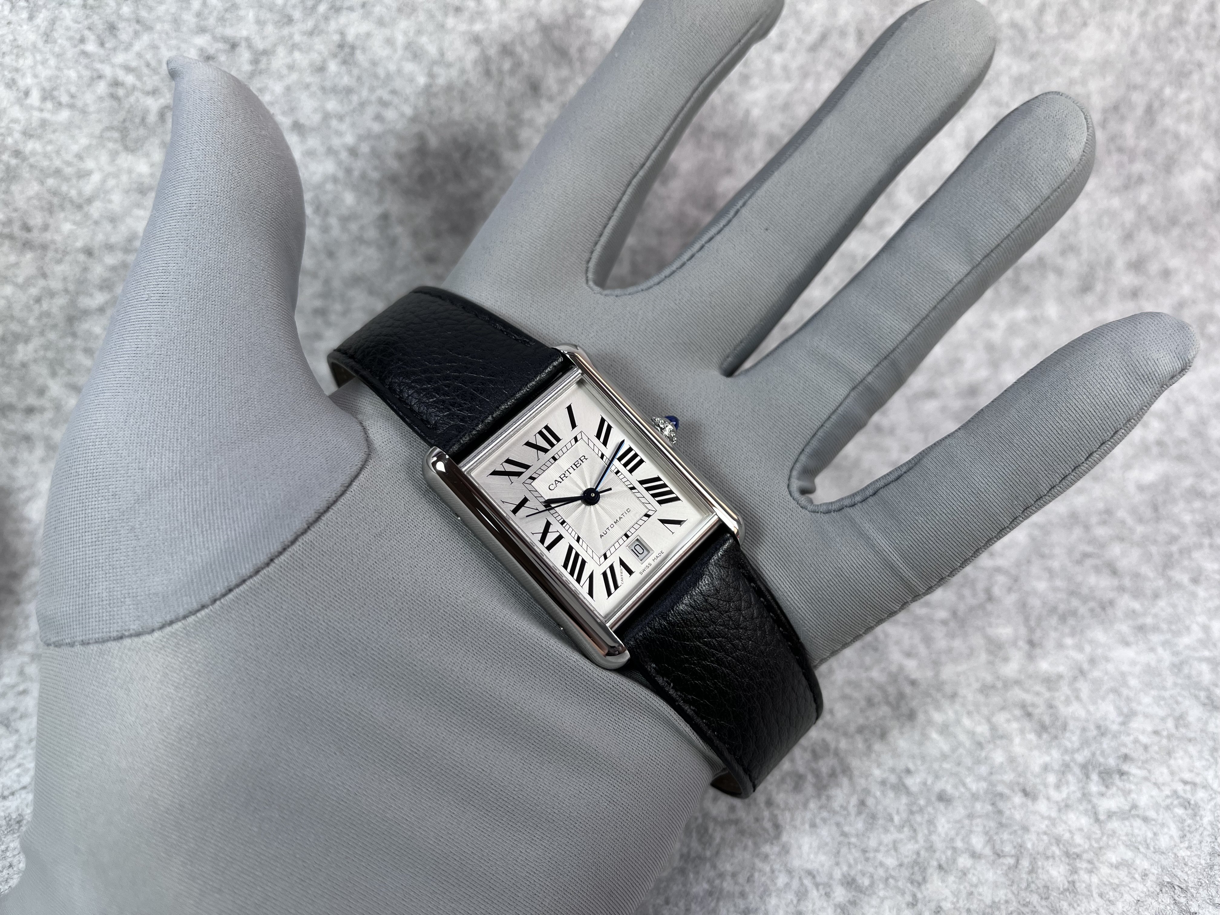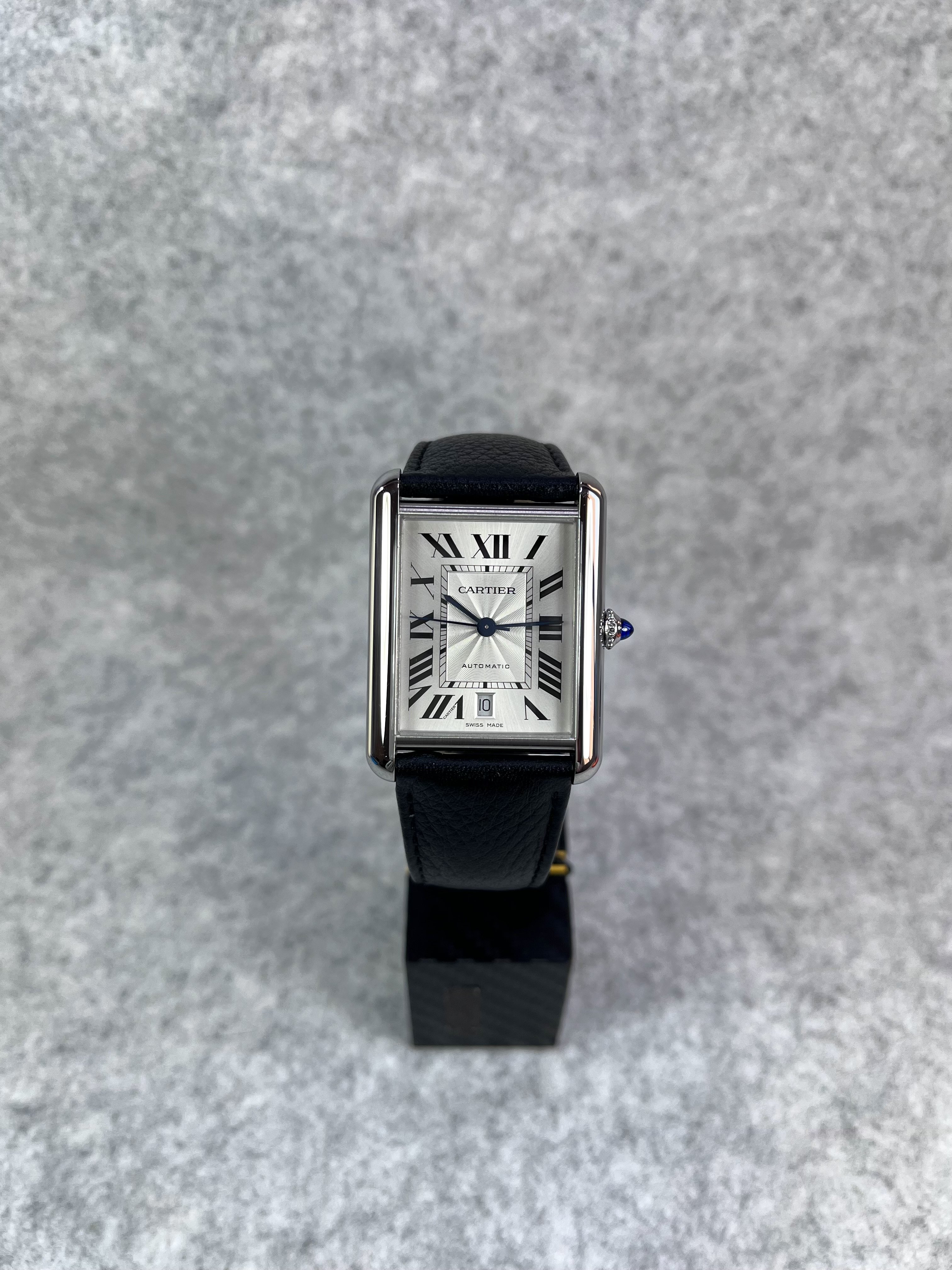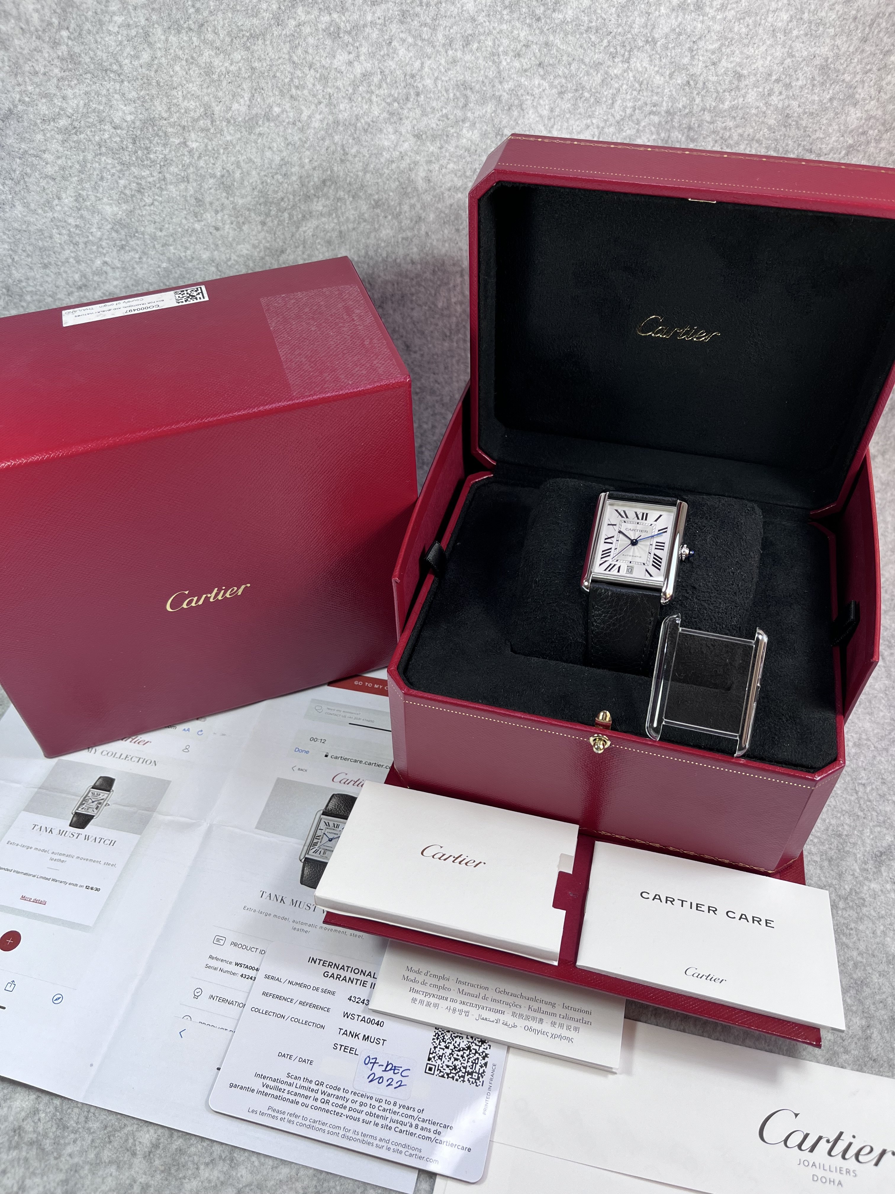 I have a like new 2023 Cartier Tank Must (Extra Large) automatic watch. Selling for only £3,599 or best offer. The case is what Cartier calls the extra-large model (41 mm x 31 mm), with mechanical movement and automatic winding calibre. Polished steel case, beaded crown set with a synthetic cabochon-shaped spinel, silvered