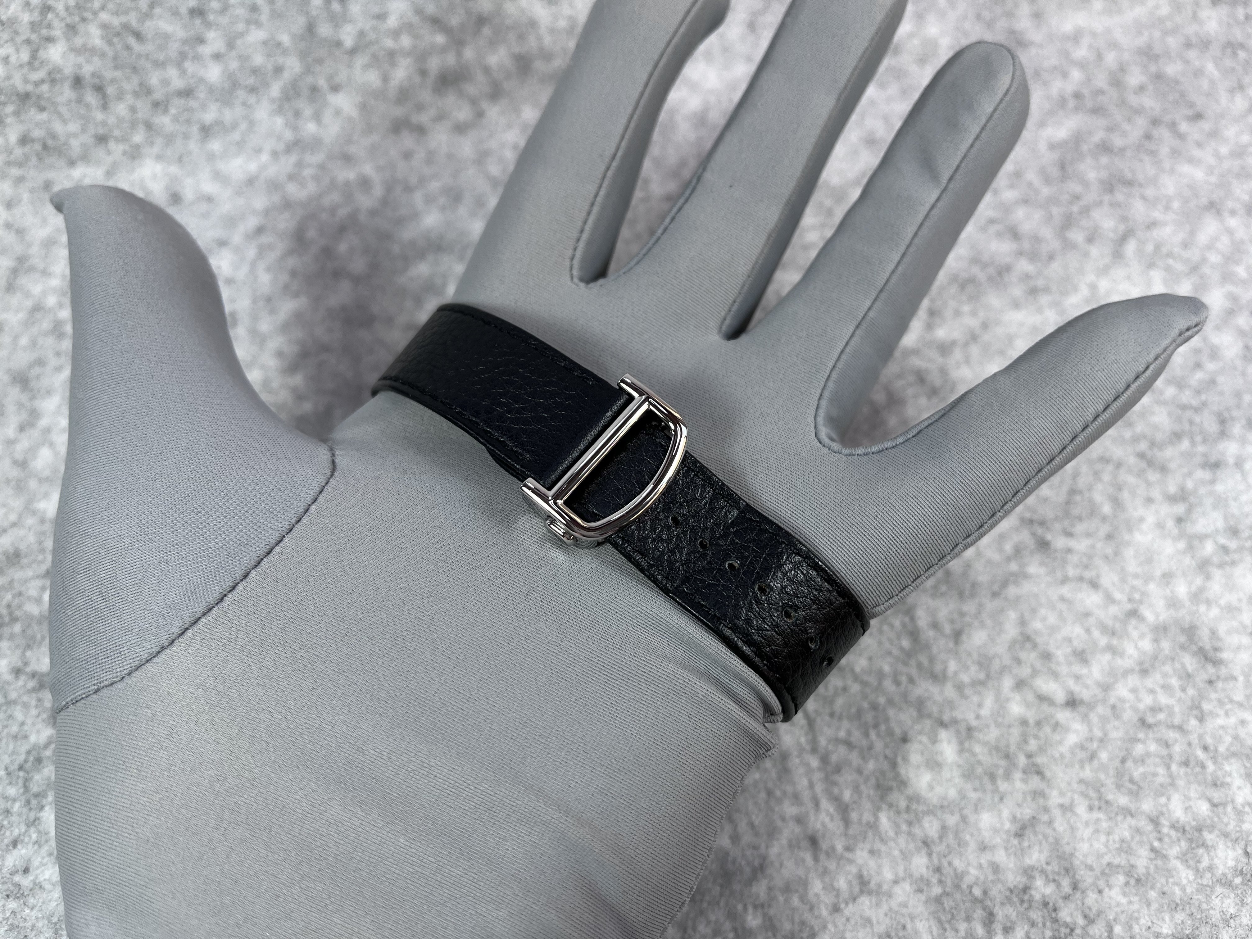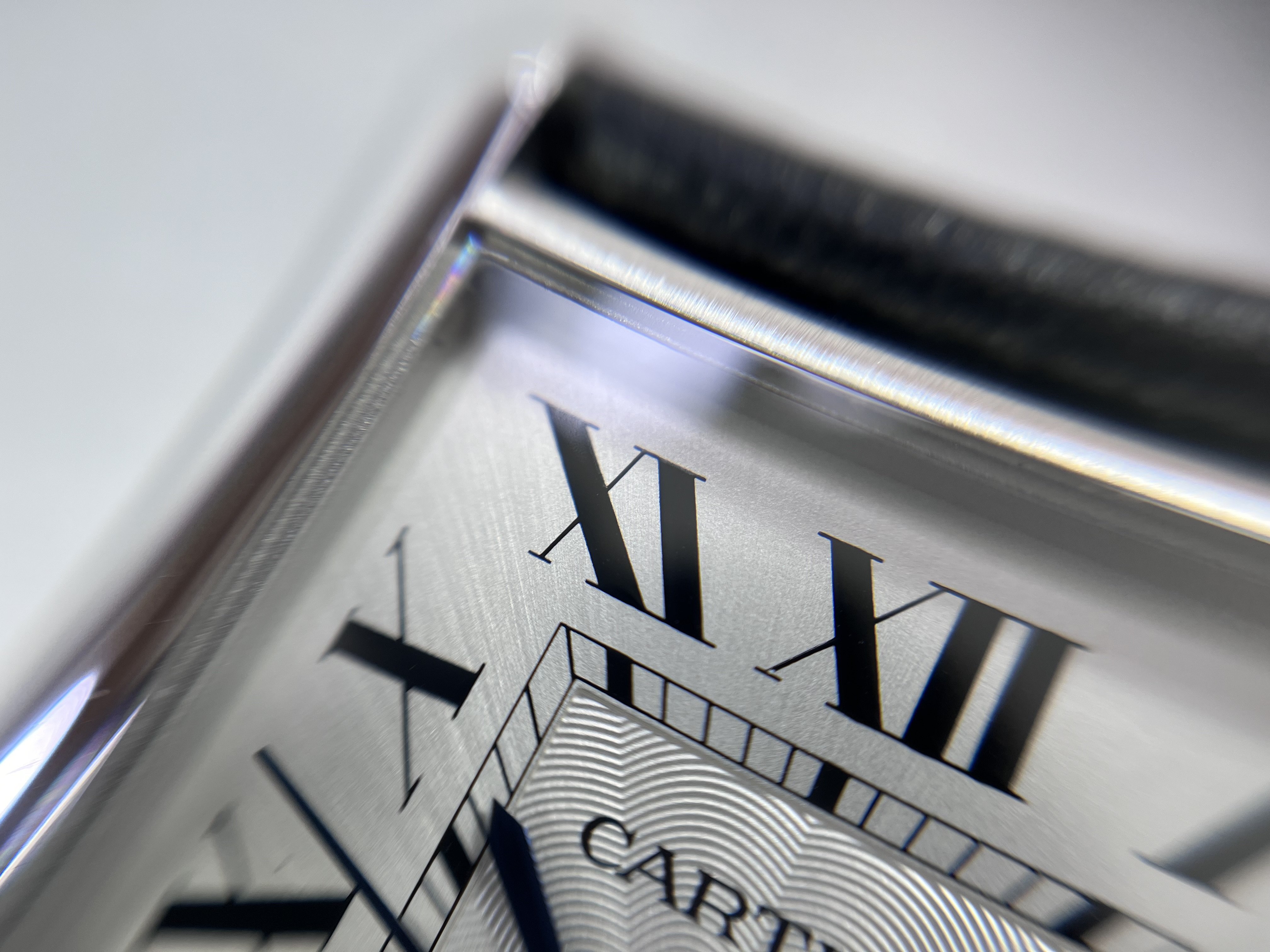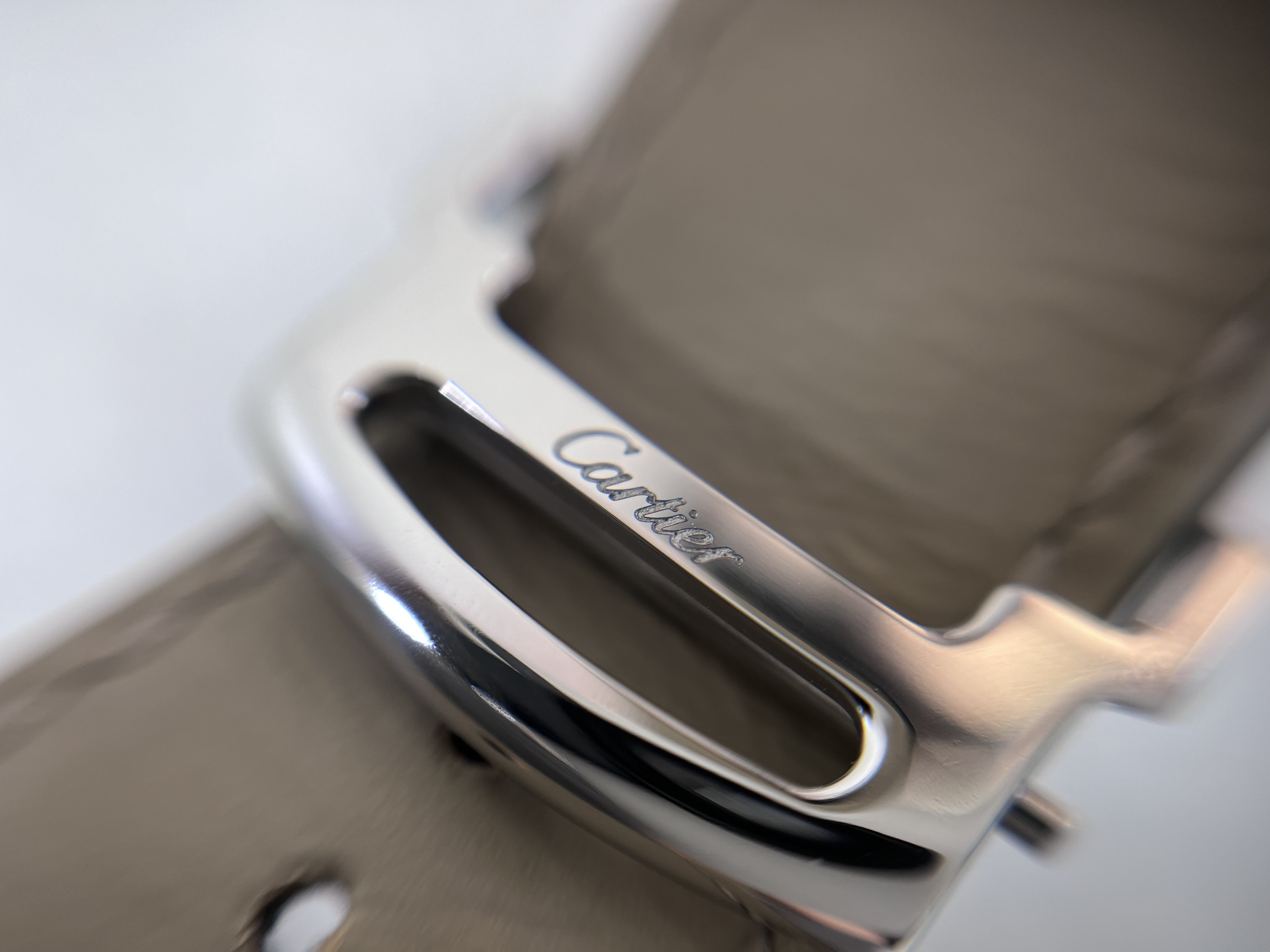 flinqué dial, blued-steel sword-shaped hands, supple black grained calfskin strap (barely broken in), quick release/ interchangeable steel folding buckle, calendar aperture at 6 o'clock. The watch is in almost new condition. It comes complete with outer card box, Leatherette Cartier box, watch cushion, 2022 factory warranty card and paperwork (8 year warranty until 2030), manuals, original cartier Boutique invoice and plastic case bezel protector. The watch has been kept in my tough, watertight, dustproof, pressure equalised PELI 1450 watch case (not included) in a temperature controlled room and opened once a month to give the movement a full wind.