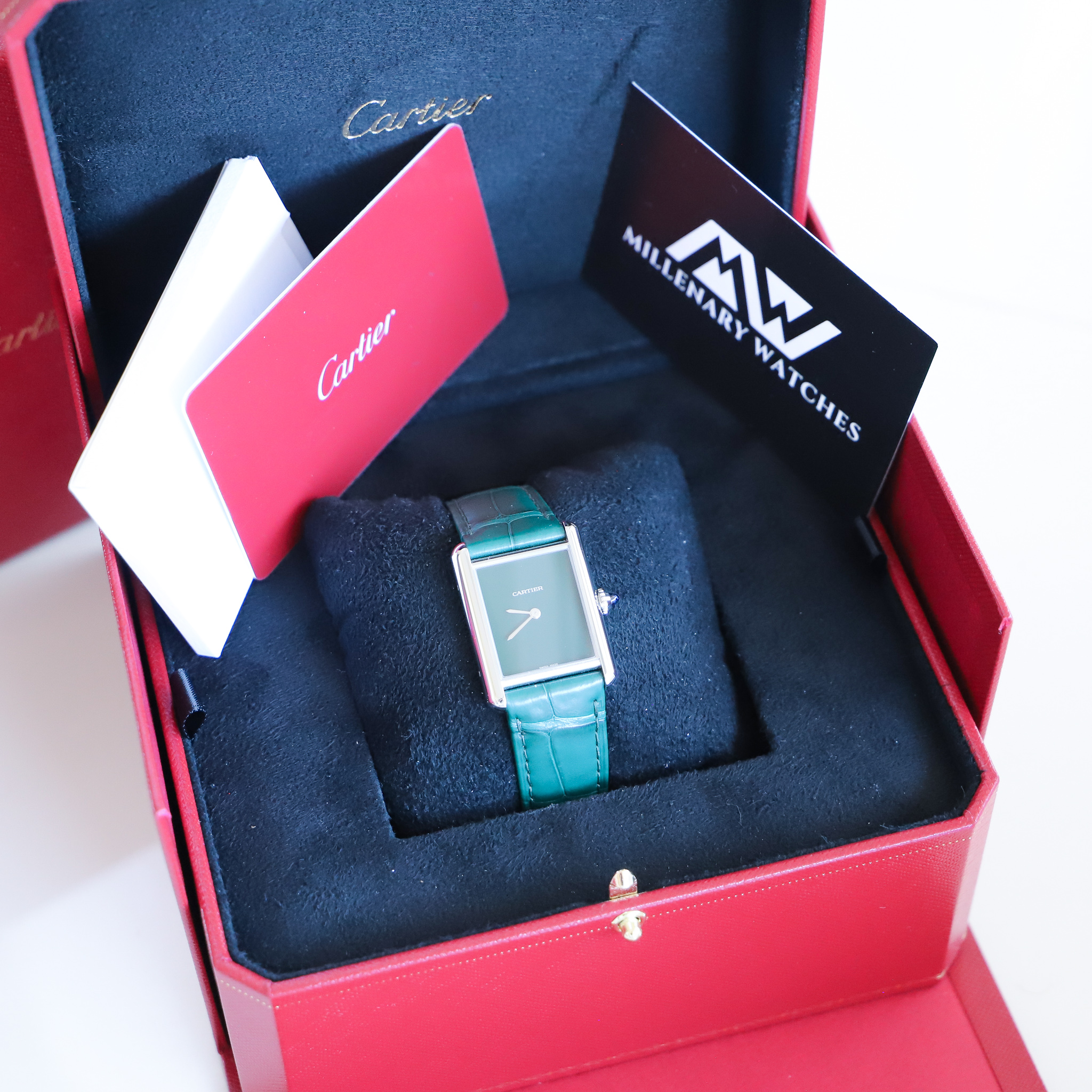 Selling a BNIB Cartier Tank Must Green reference WSTA0056 novelty for 2021 and already sold out in many places. The watch is “Large” model with the dimensions 33.7 mm x 25.5 mm, thickness: 6.6 mm. It comes with Cartier's 8-year international warranty.