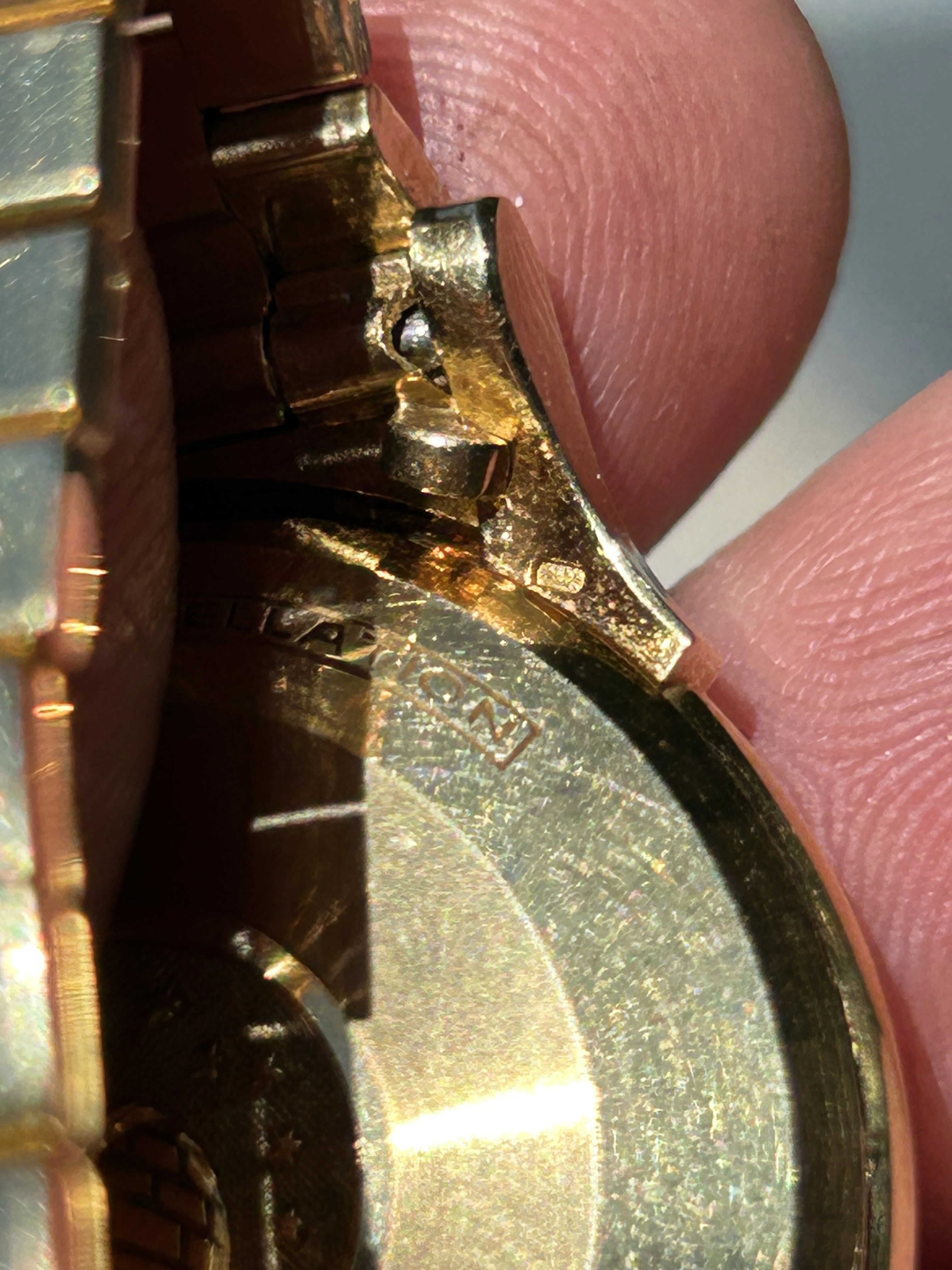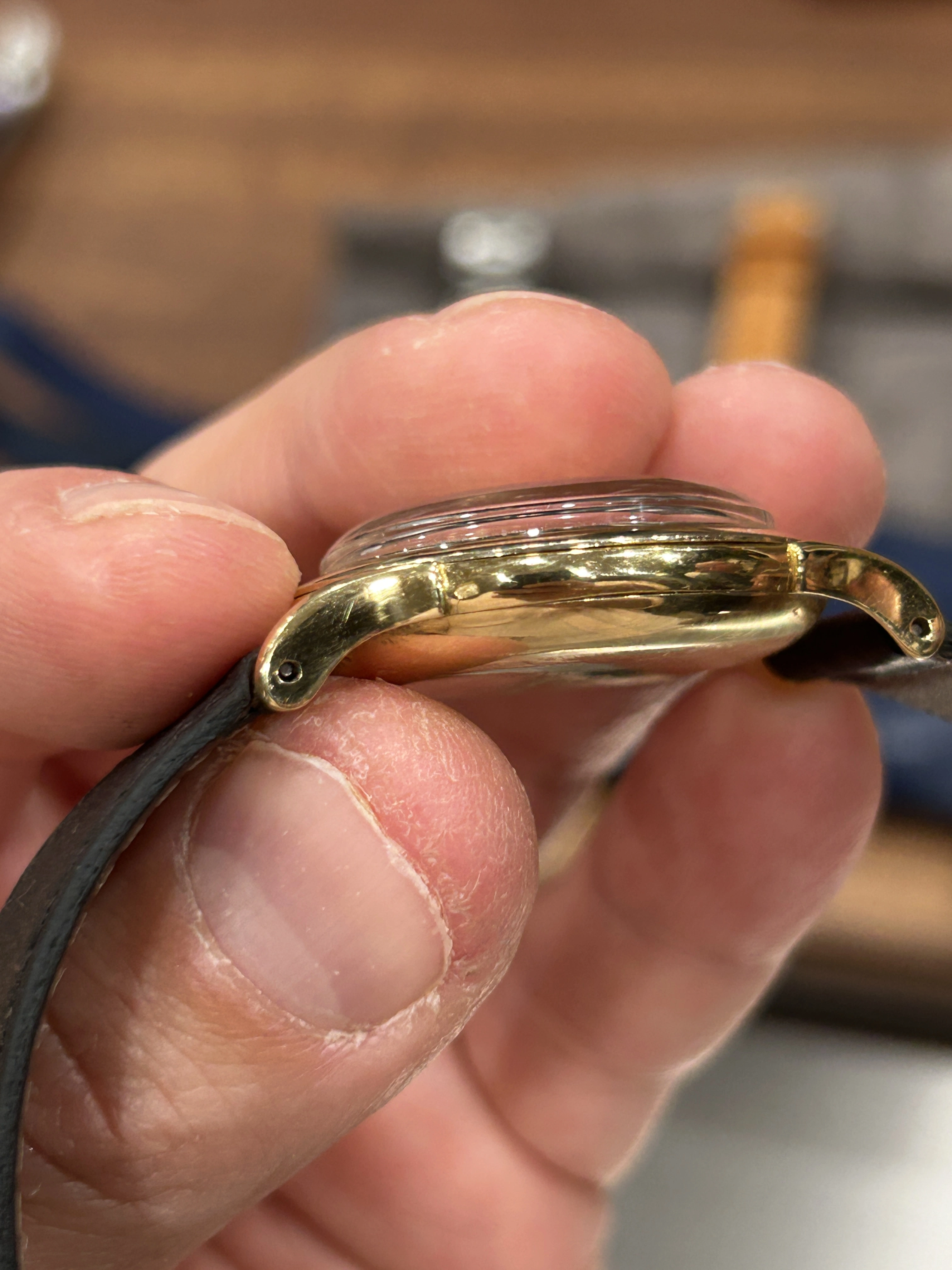Case can be significantly polished and still have a hallmark. This one shows no remains of the bevel on the bezel. Lugs are very soft indeed too.