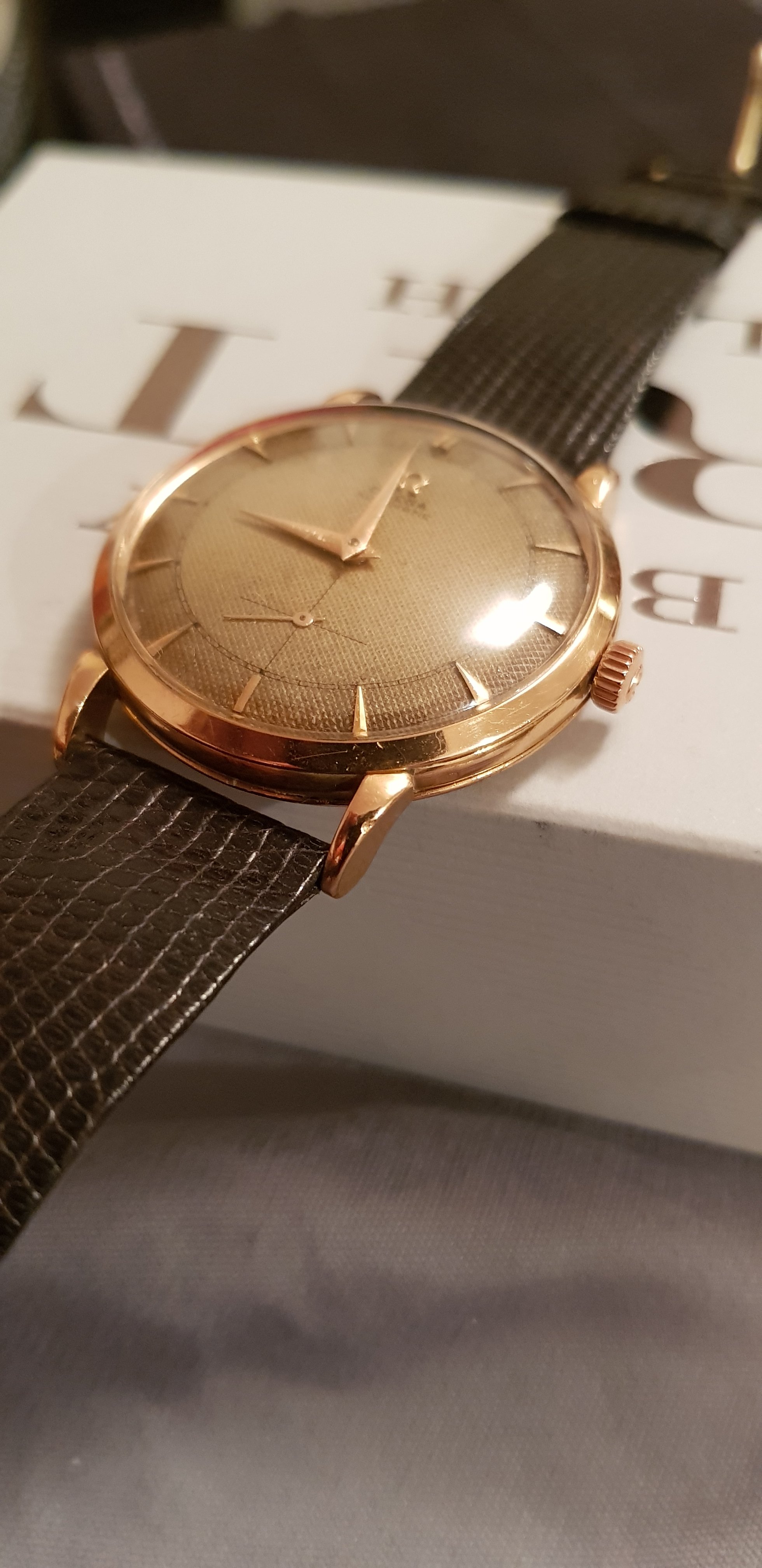 ·Gooday all. I'm trying to identify a couple of vintage Omegas that I own, and would appreciate some help. First off I have an 18ct gold dress watch bumper from the early 50s (pics attached). I am curious about the Key logo with a digit 1 in the centre. I am sure that someone out there can tell me what this refers to, so PLEASE do. It's intriguing me.