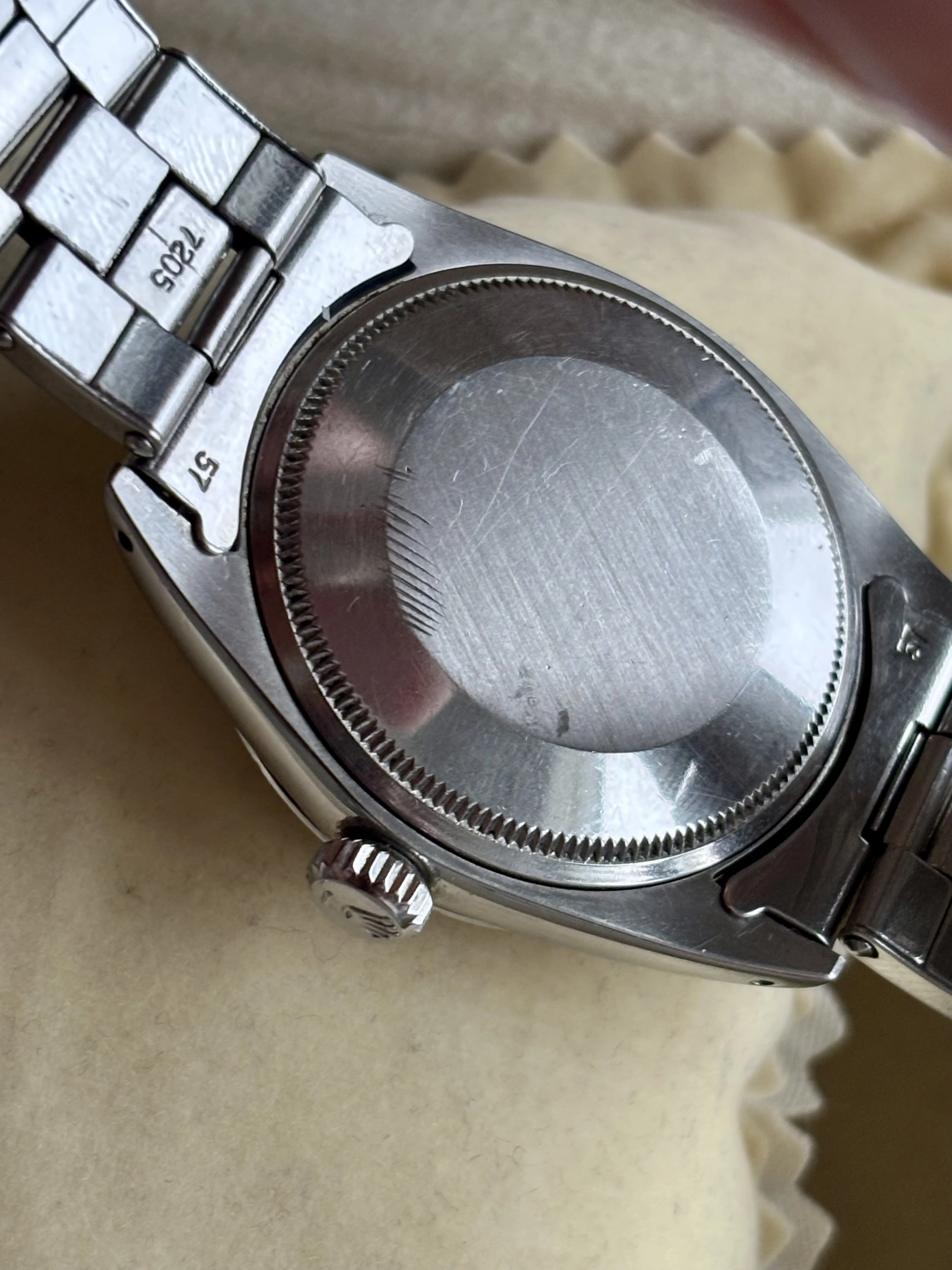 Rolex Oyster. Iconic. Threaded back and screwed-down winding crown.