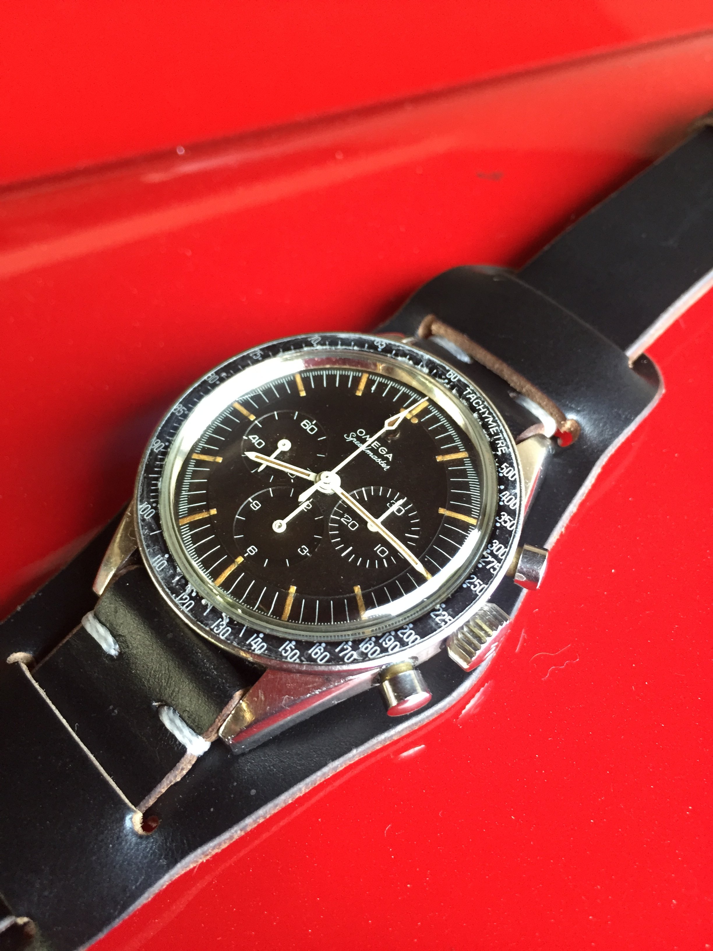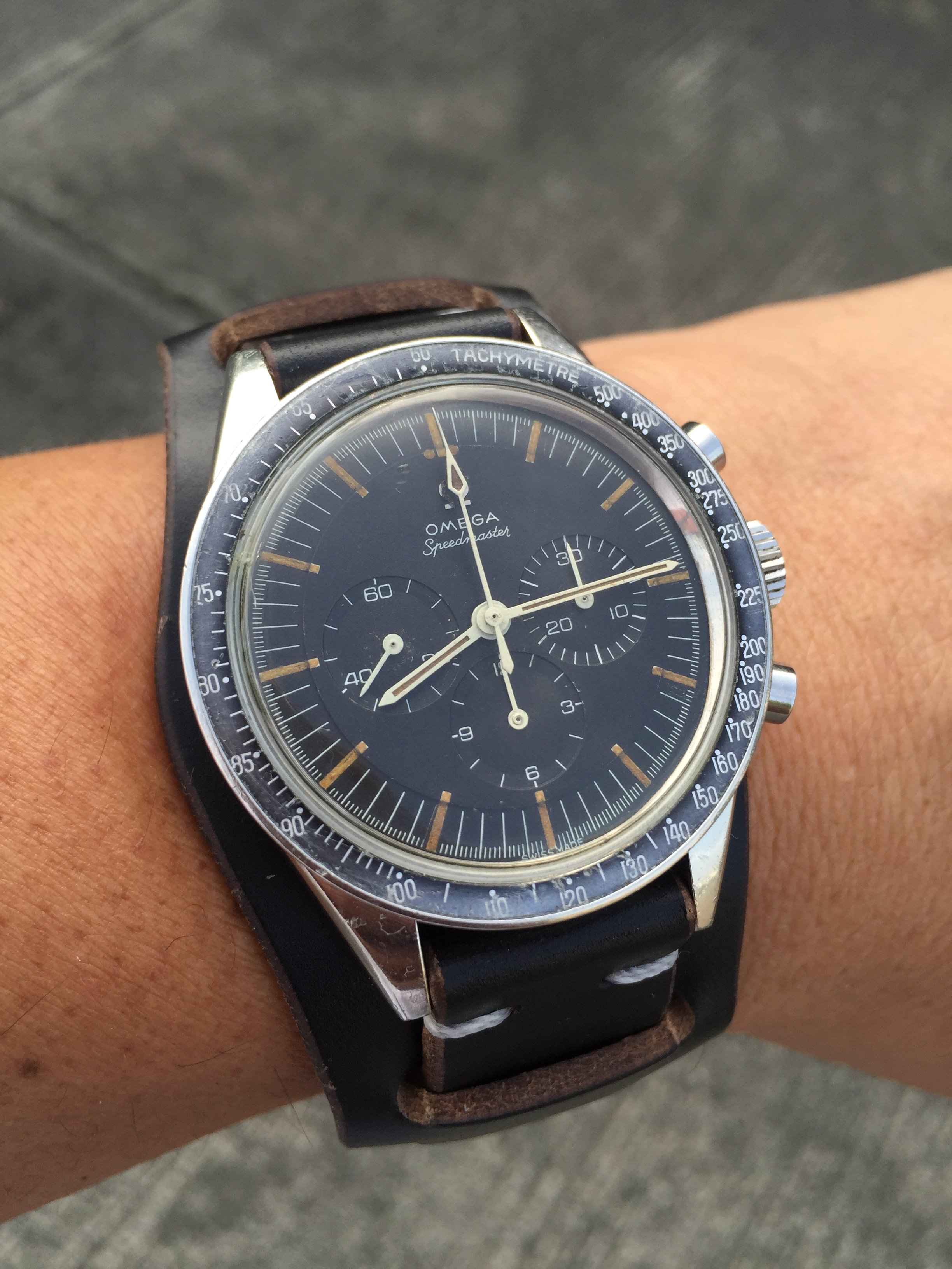 ·Its quite fortunate that this Speedmaster was offered to me, a rare ref.105.003 63 in very nice condition. This is also my first Speedy with the straight lug case which appears to be unpolished. The dial is the desirable "swiss made" variant with radium lumes. It still glows under UV light. The don bezel is decent and the watch keeps good time. The serial number is 20521XXX which is within the range for a correct 63 model. Another great addition to my collection.