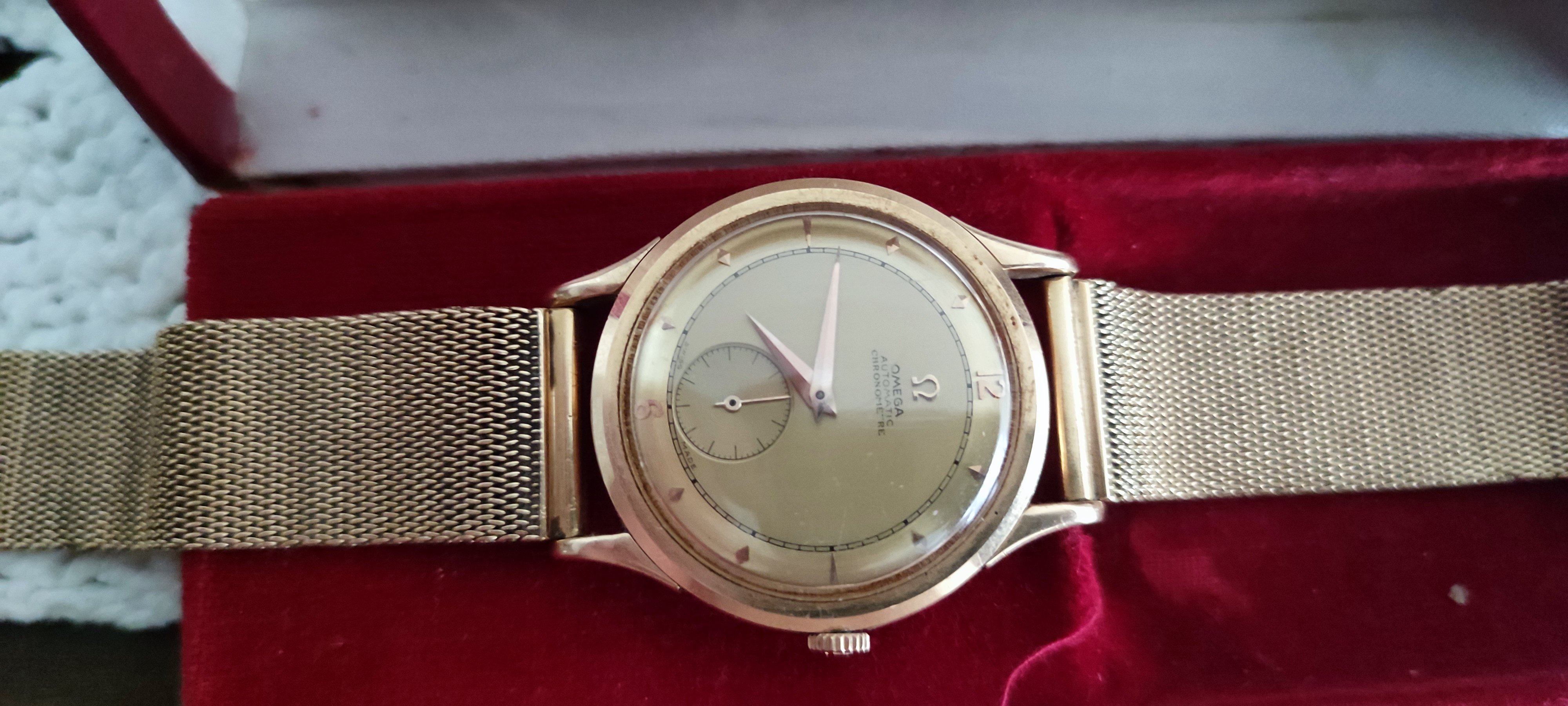 My grandfather placed it with a gold bracelet as well, and I will leave it like this. I was asked for 2600 euros minimum by Omega in Portugal to send it to Switzerland to get it checked. I have declined the offer and will get a new battery for it at the local store, and maybe a cleaning and hopefully it will be enough.