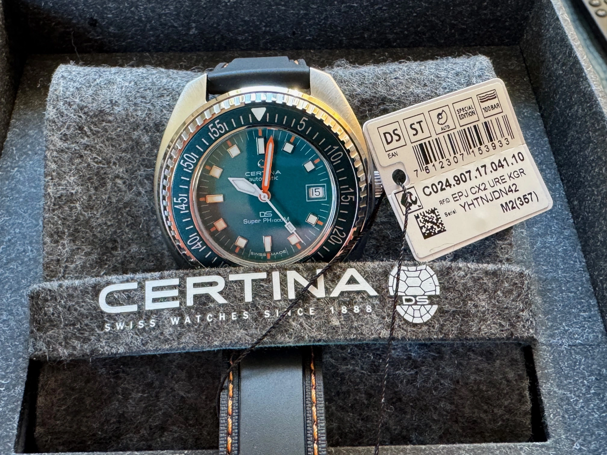 ·For your consideration this Sea Turtle Conservancy special edition of a classic saturation diver. This was purchased directly from a Certina AD by me as a set of two and is new and unused. The turquoise dial is striking and legible, and the case is highly wearable and brilliantly finished for the price and well beyond. Timekeeping on this is well within COSC.