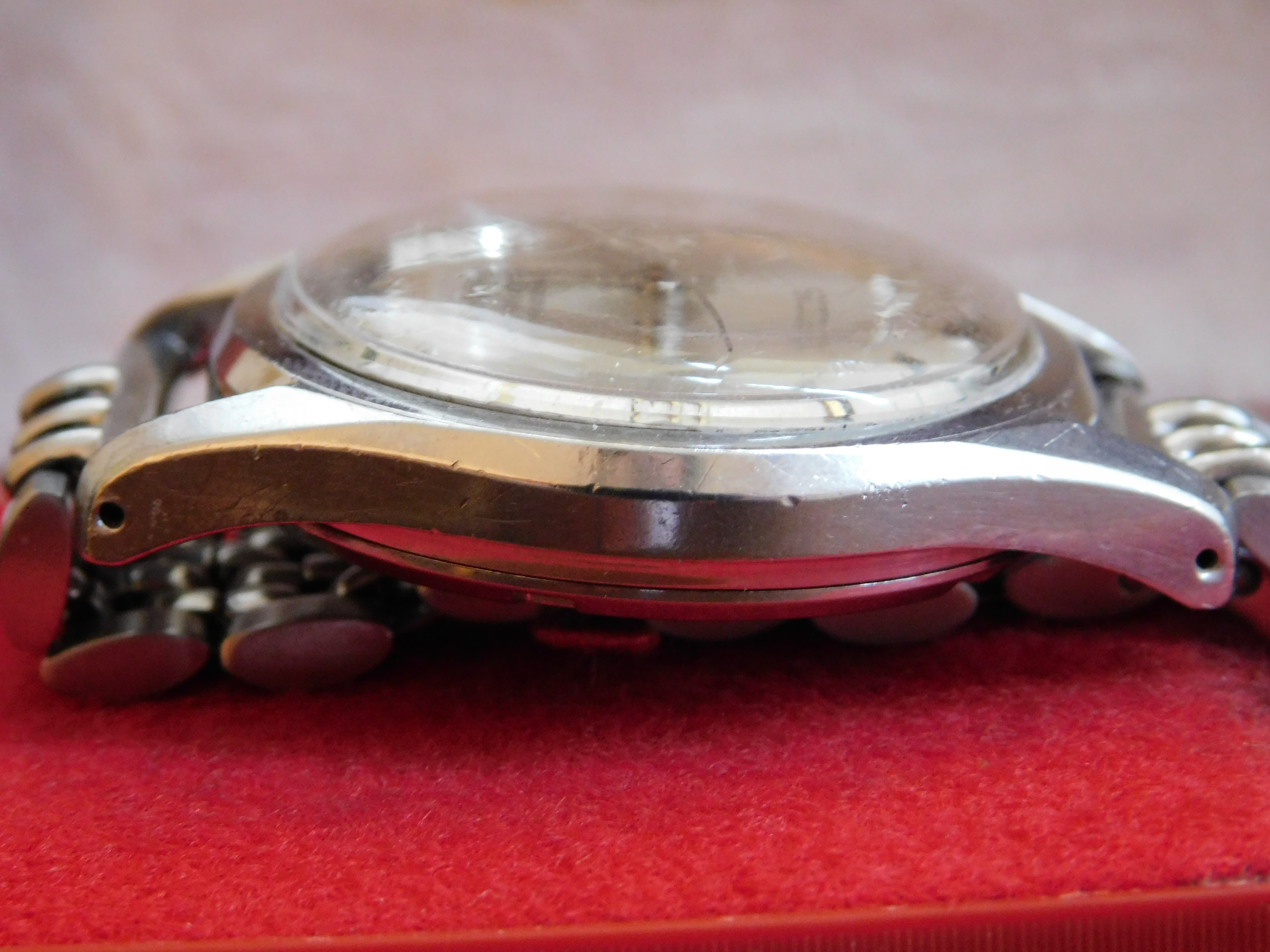 Condition: In very nice all original condition, keeping good time. Minor ageing on the dial and batons, commensurate with age, ditto small scratches on crystal and case. Edges sharp and unpolished.