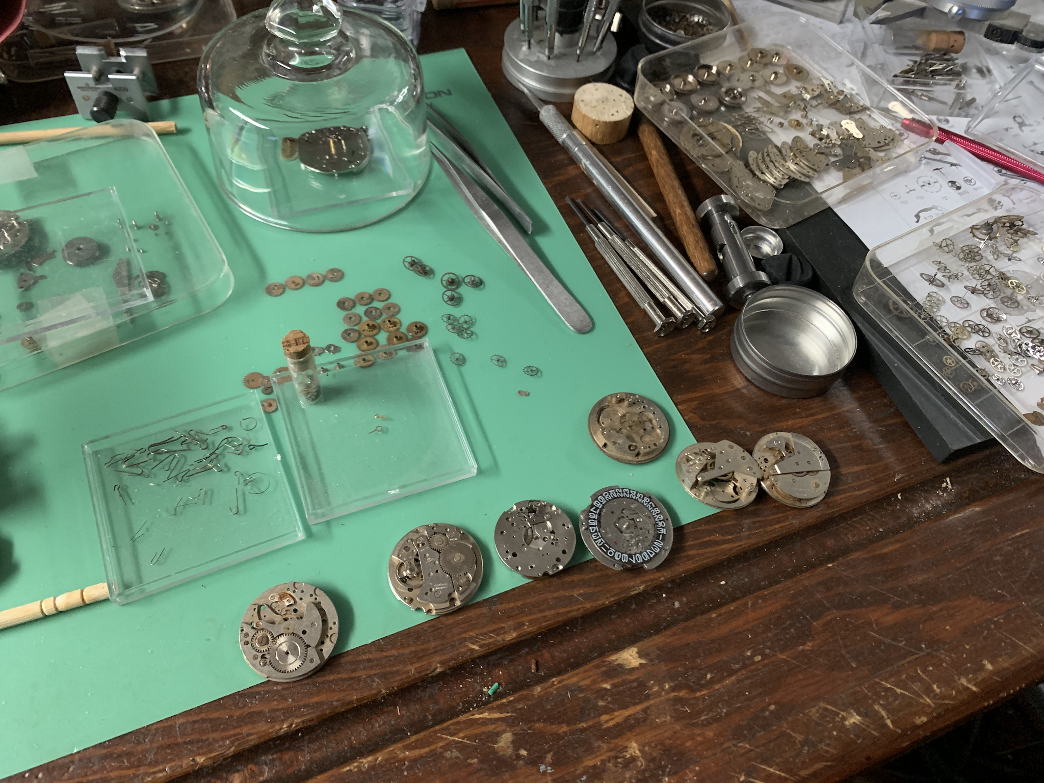 Given that I have bothered to hoard these costume watches for a few decades, for a day like today. It seem strange that the base plates are missing for one of the calibers. Could be that some of the parts I sorted, then resorted by caliber over the week are used and replaced? That would then make this the proverbial junk drawer where vintage parts go. (Too bad these are mid grade from the 1960s. and not the stuff that is popular now.) I did have some rollex spares, but I sold them off years ago. I keep the Omega spares in a separate box. Chrono spares show up now and again.