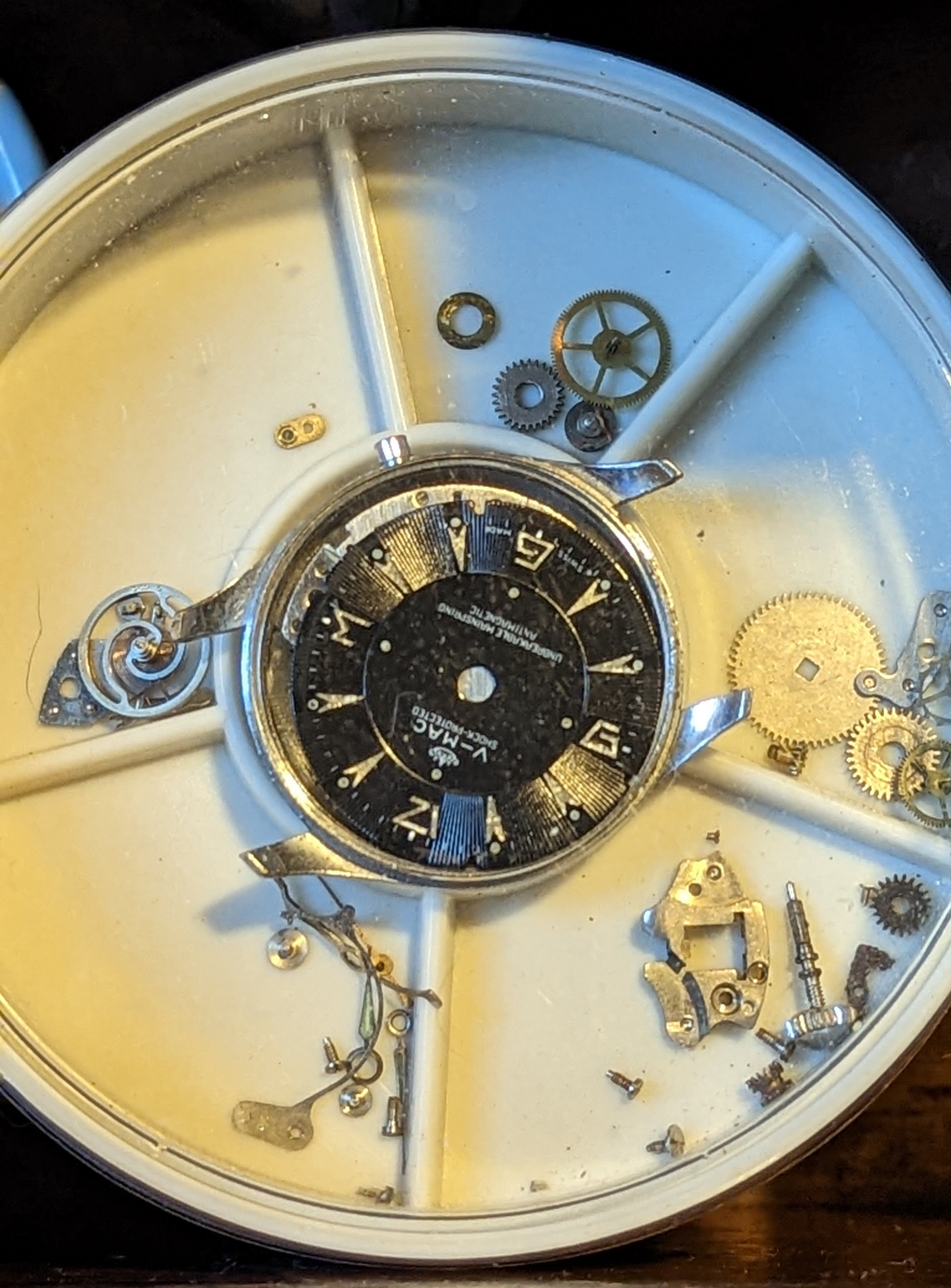 Then one chases after documentation. Which has become a bit easier as much is online now. Find a caliber number, enter it into an auction site like ebay, then one can see what the other parts should look like. Then it is back to the boxes of parts to sort through and look again, to see what else is overlooked only to get farther and farther away from the project at hand.