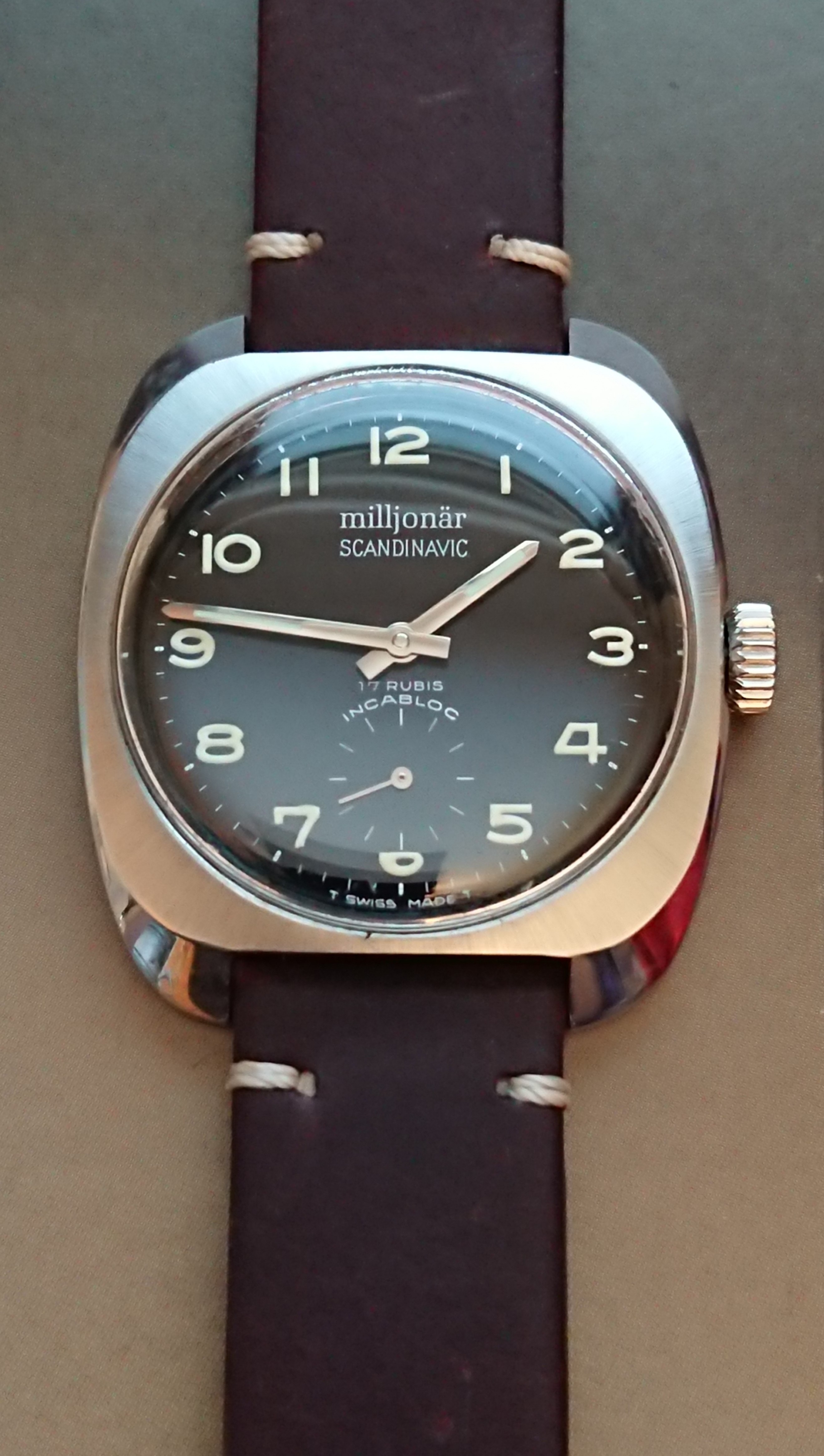 I’ll start with a Milljonär Scandinavic. Milljonär was a small Swedish brand that operated from the 1950s to the early 1970s. It sold cheap, often chrome plated, watches and frequently copied its designs from another popular cheapo brand, Atlantic. Imagine being a poor man’s Atlantic… Well, that business concept proved to be a pretty successful one and eventually Milljonärs were peddled via mail order magazine adds throughout the Nordics.