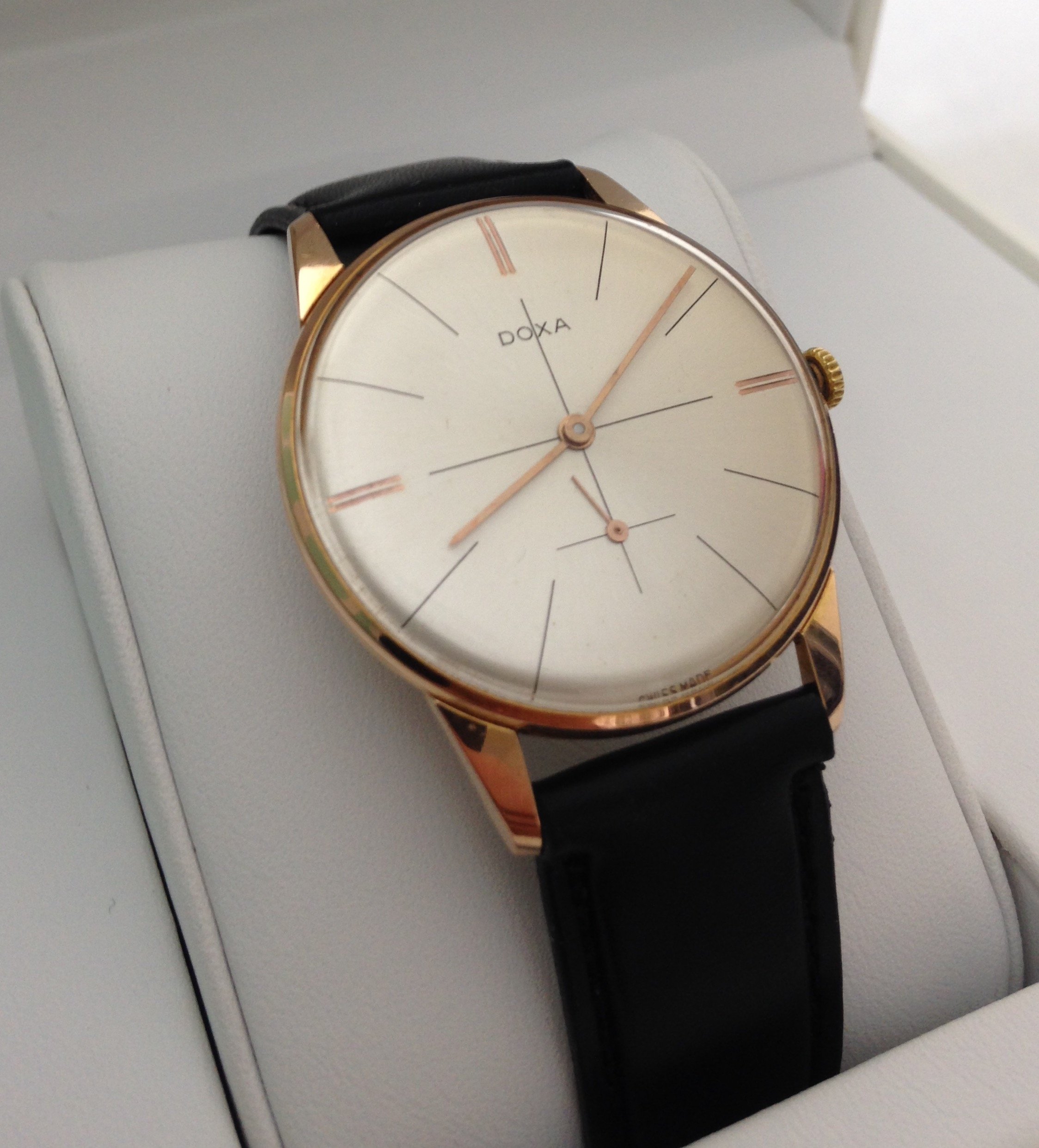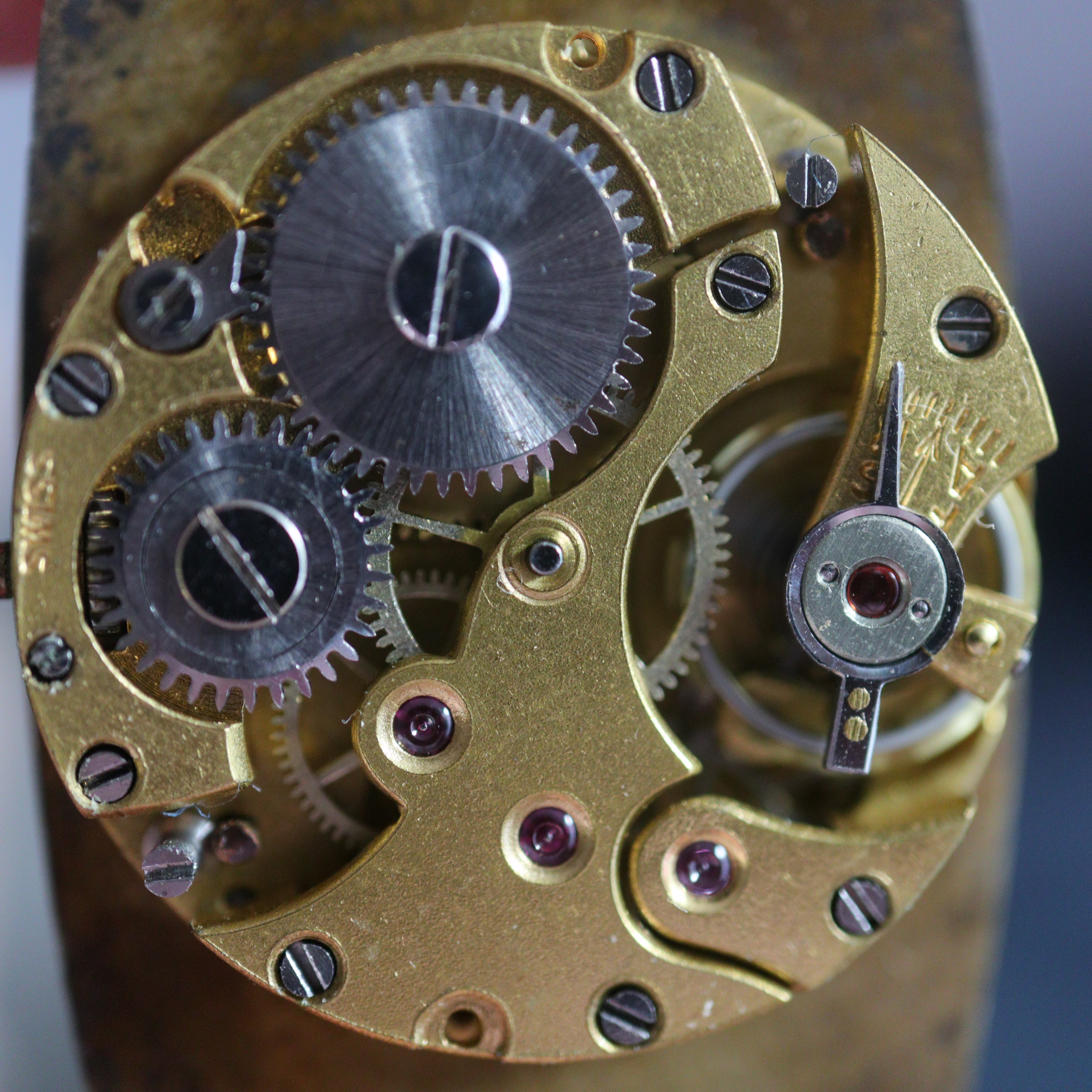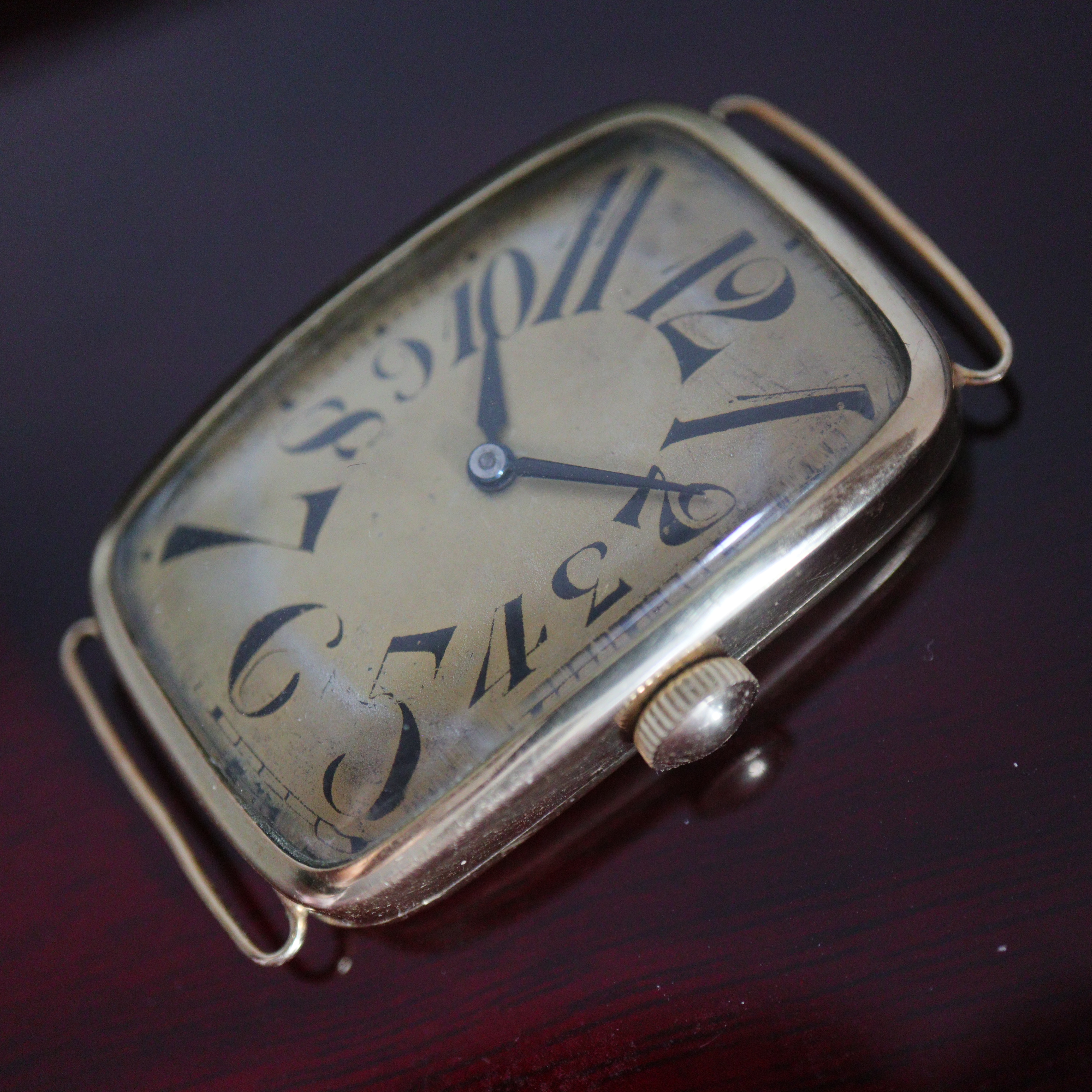 Here is an anonymous wristwatch in 14ct yellow gold. I has been well worn, clearly. But now, after a service of the movement, runs again like a charm. Look at these elegant numerals 😀 It still requires a nice open-ended strap for the fixed lugs.