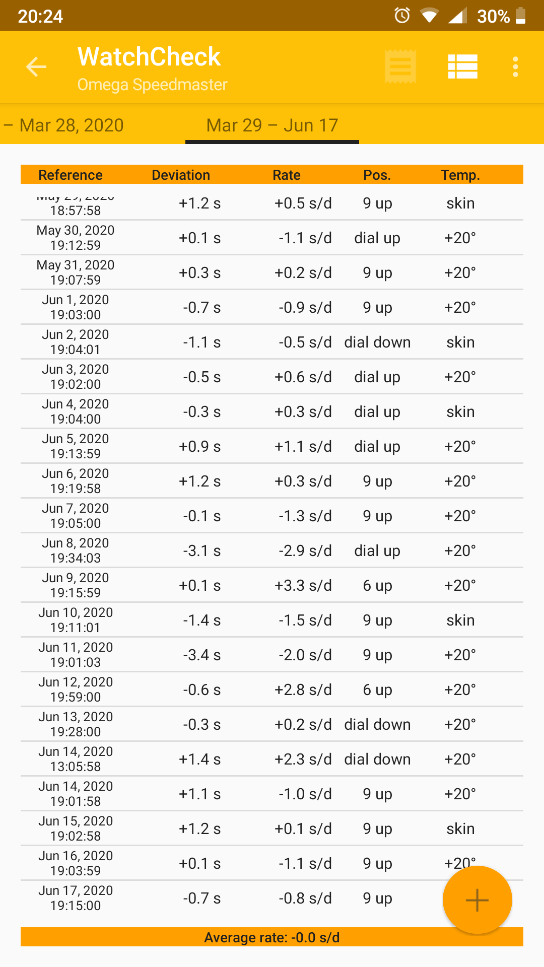 Then.. the next evening, I decided to lay it flat while overnight. This did in fact prevent too much more loss. In fact, by morning it had only lost 1 additional second. From there, I put the watch on.. and wore it until the next night. During the day around 3pm (when the test started) I took note, and it was now running -7sec for a full 48hrs. By that evening, it was -8sec. Again, took it off overnight resting face up.. and this morning it was the same, -8sec. Wore the watch now for a few hours and now has dropped another sec. (-9)