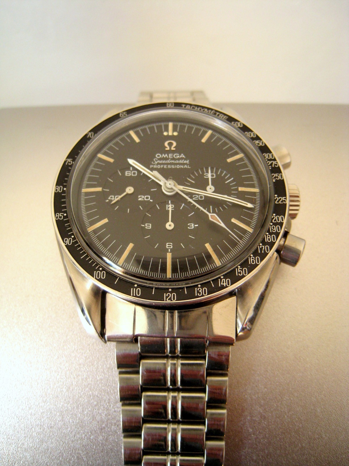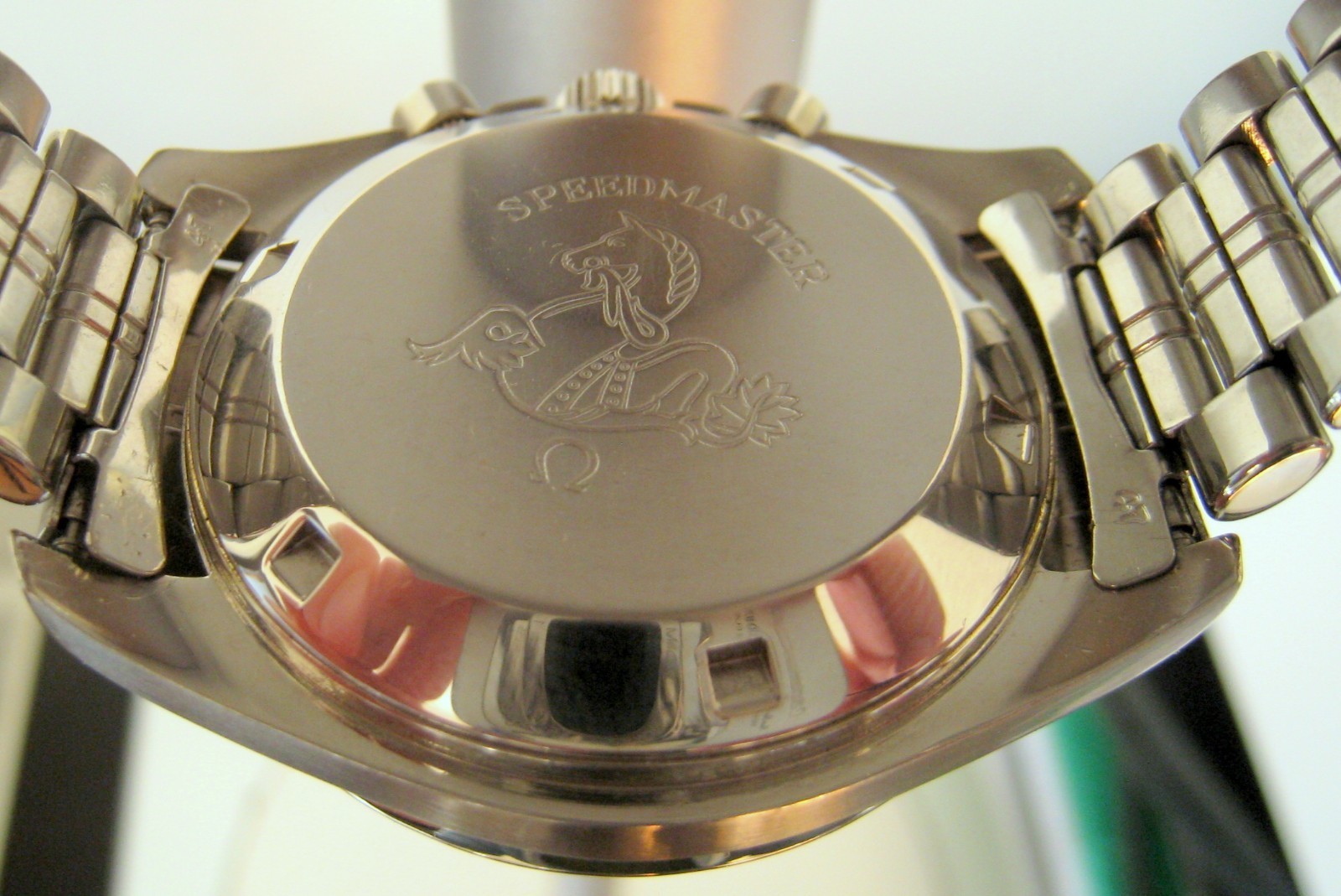 It came with an Omega steel bracelet, but I don't think it is a Speedmaster bracelet. I'll post a pic of the bracelet tomorrow in hopes that someone can identify what watch it goes to.