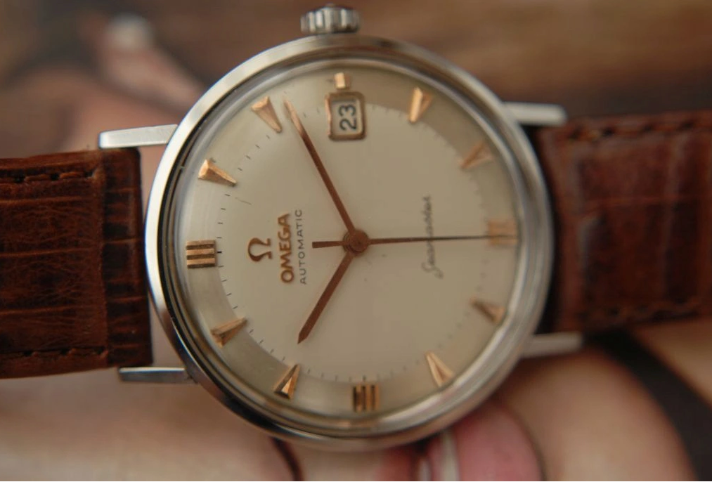 2) Omega Seamaster 1961, also listed as "in original state, never renewed". I spent a good hour looking for a watch with identical dial on the web and couldn't find one that would have the cooper-coloured hour markings shaped that way.