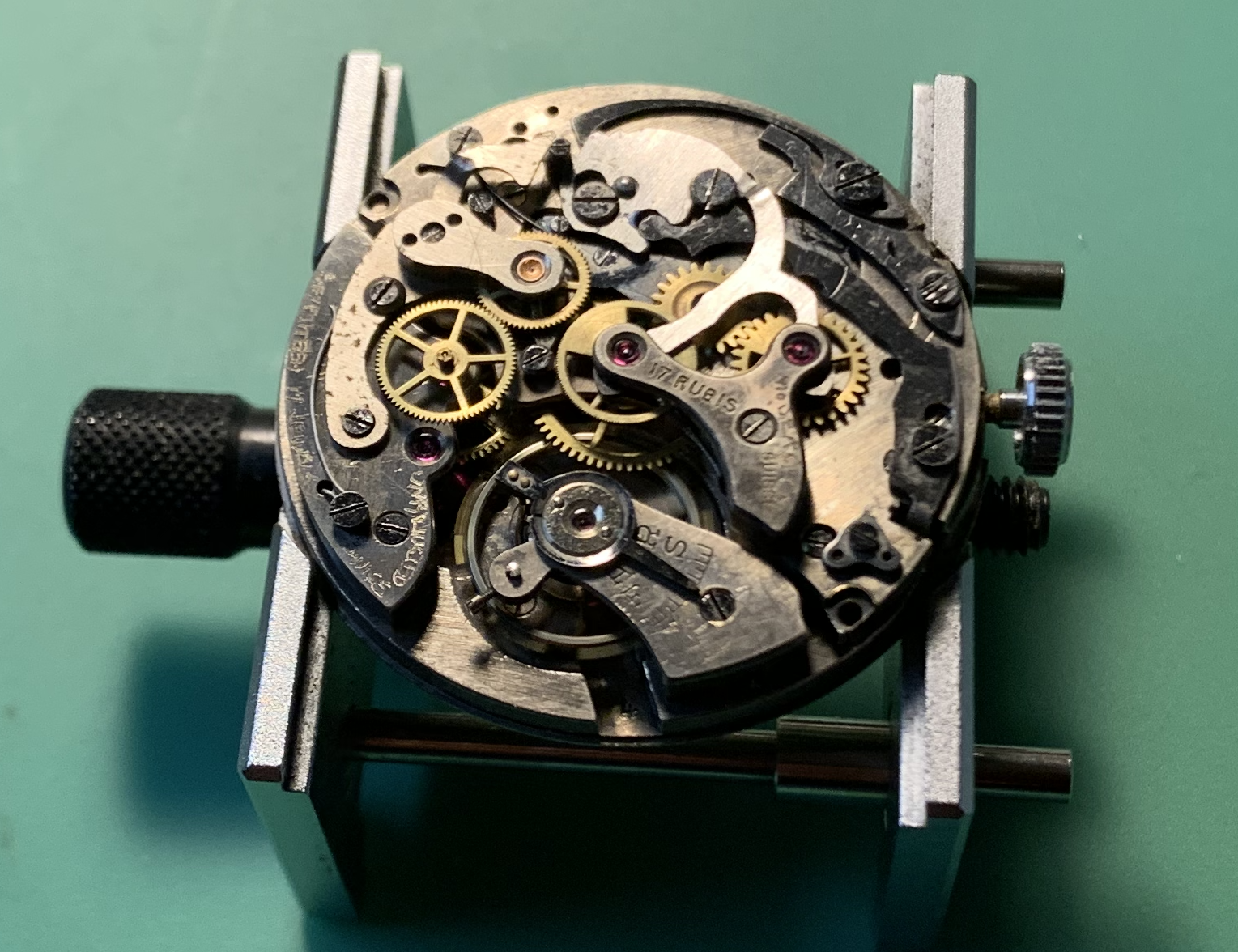 ·So I got the 'Bunny' Landeron 48 chronograph back together. When installing the activating lever I bunged the minute jumper. Also missing the piano wire springs on the flyback lever which may be the one I used for the 'goat' Landeron 48.