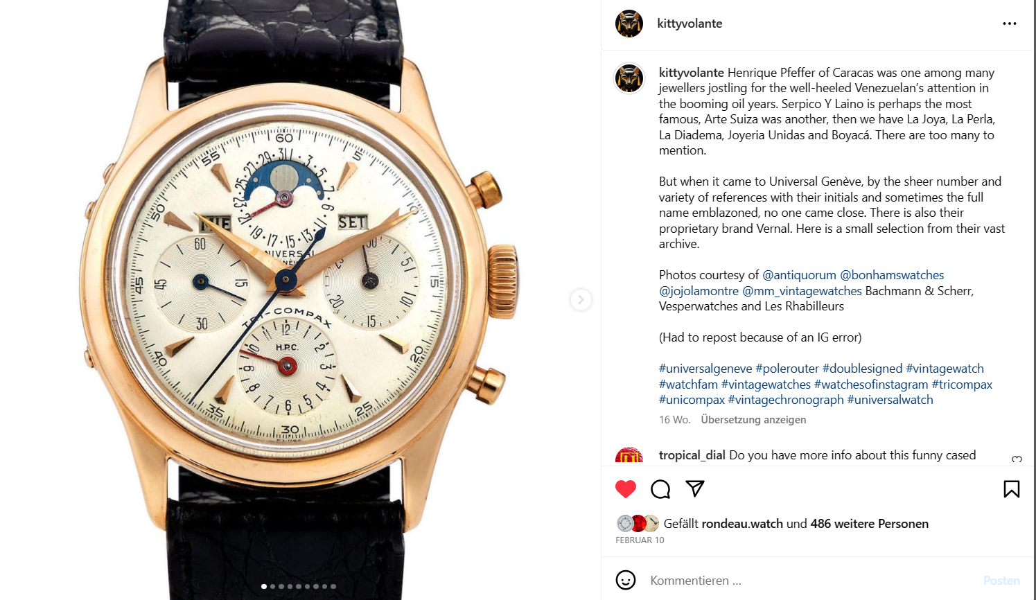 5) Lastly, I came across an article on the dink about a collector that has two same time only reference, one is signed HPC and one is not. In this article they state that HPC stands for Henrique Pfeffer Caracas. So I wonder where does their information come from (maybe the collector?), or did it come from here on OF, or have others independently come to the same conclusion, etc? I guess we could reach out on IG and ask.