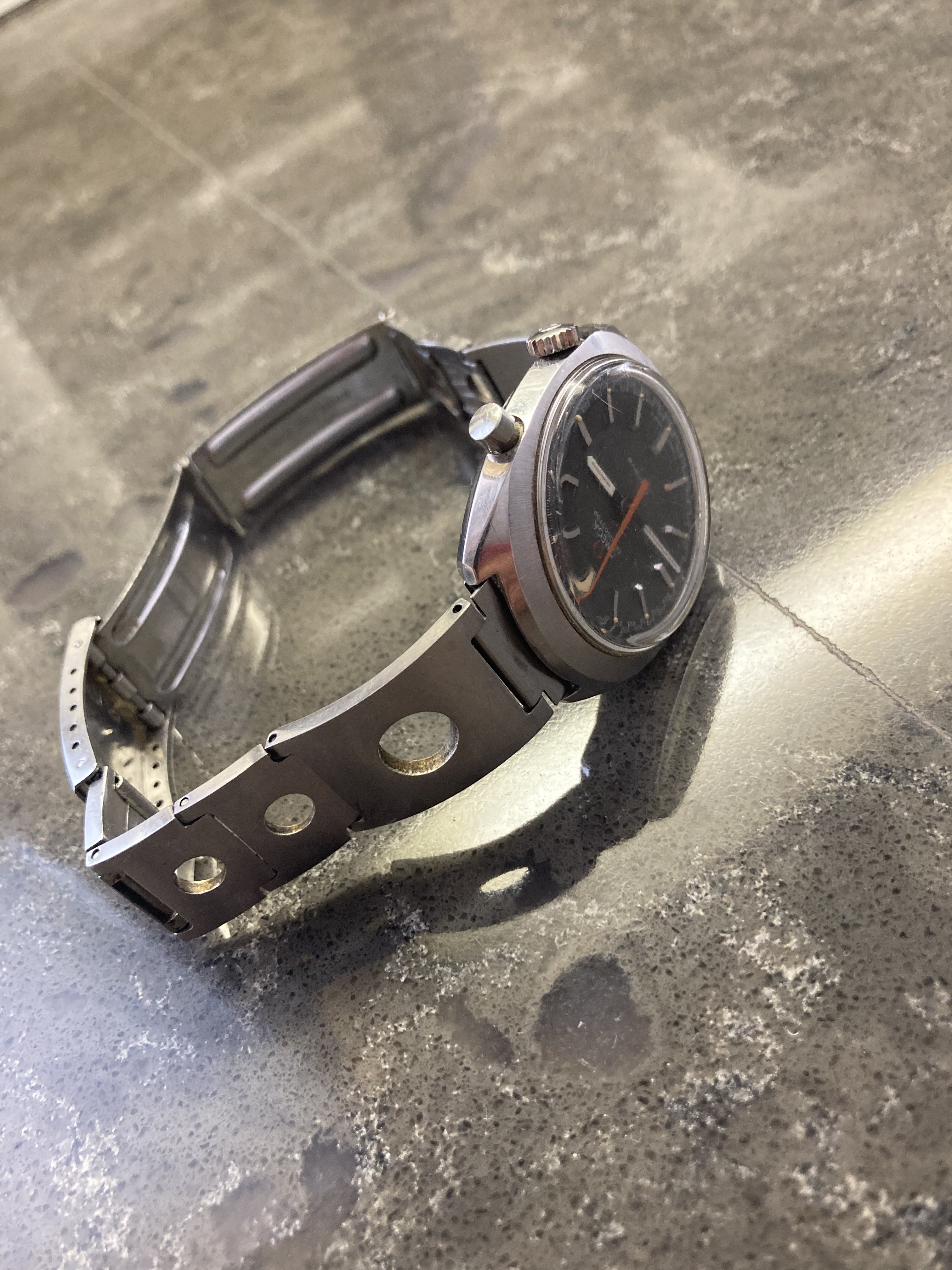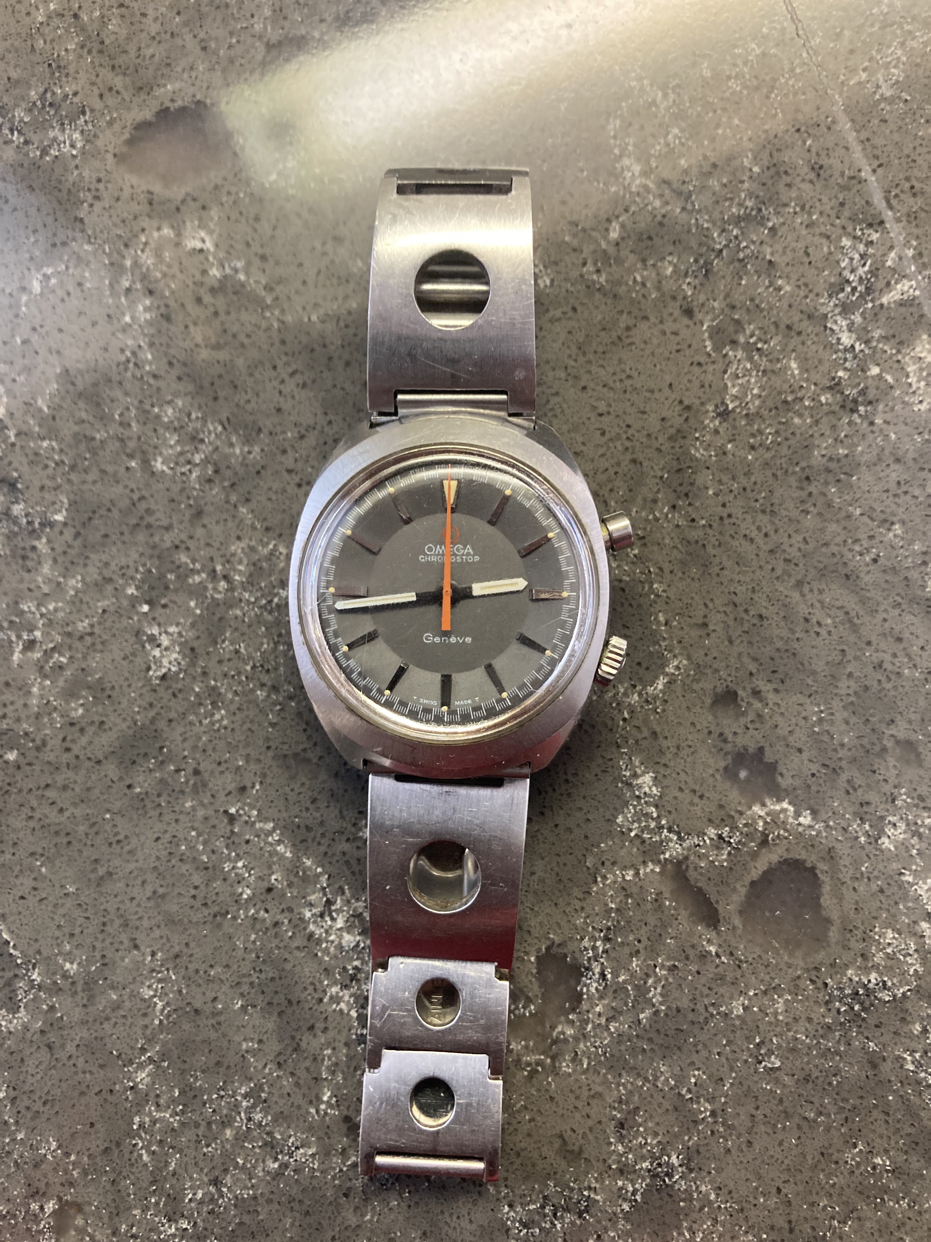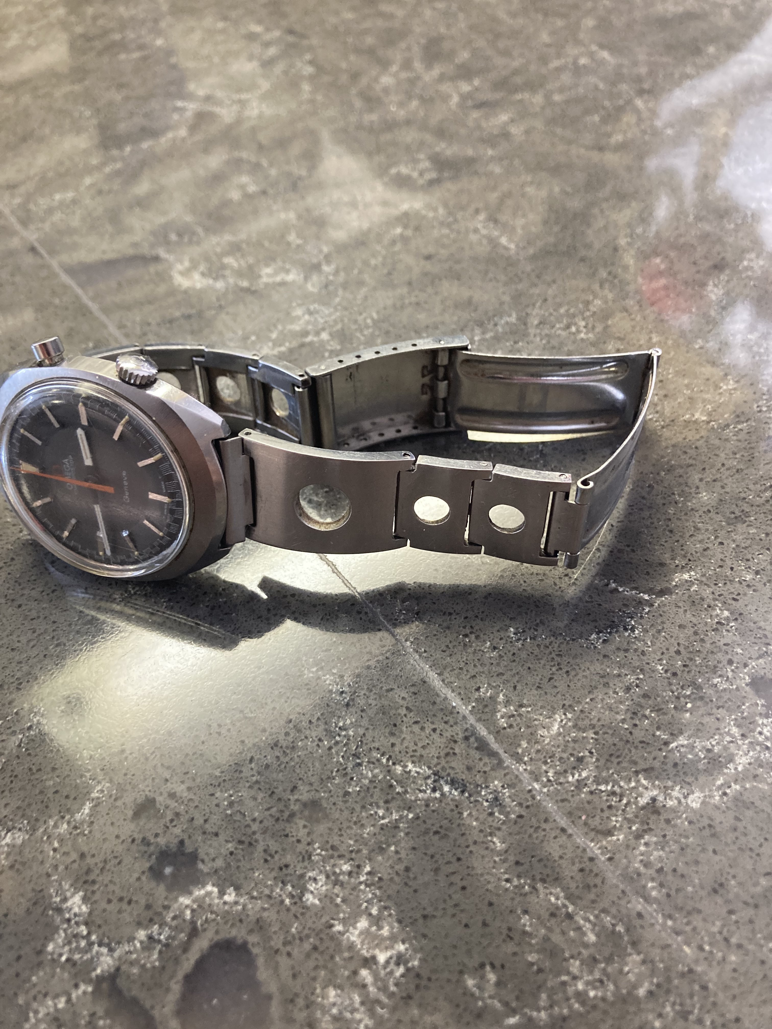 ·Opened an old box and found my Granfather’s Chronostop Geneve. I remember him wearing it every day when I worked with him paving asphalt driveways and parking lots. Yes it’s not perfect but it’s got all his hard work in it. Unfortunately the band is a little small for me and I would like to source an extra link or two for it. Can anyone help me identify the band numbers or any identification? Thank you in advance. All advice is much appreciated.