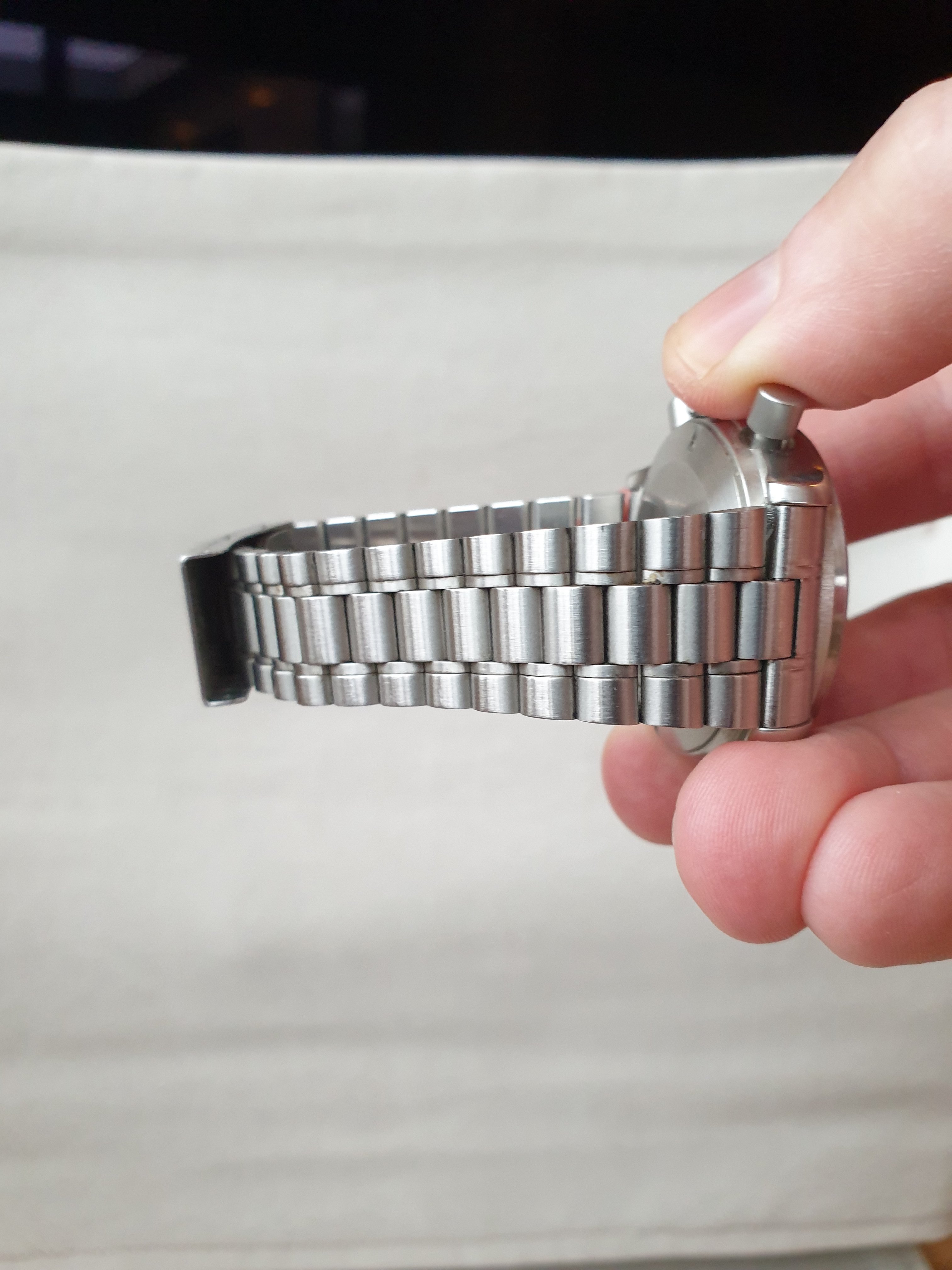 The 1571/871 bracelet is without stretch and has only minor, superficial scratches on the clasp and some equally small marks on some of the bracelet links and the top end link. The clasp closes firmly without any give.