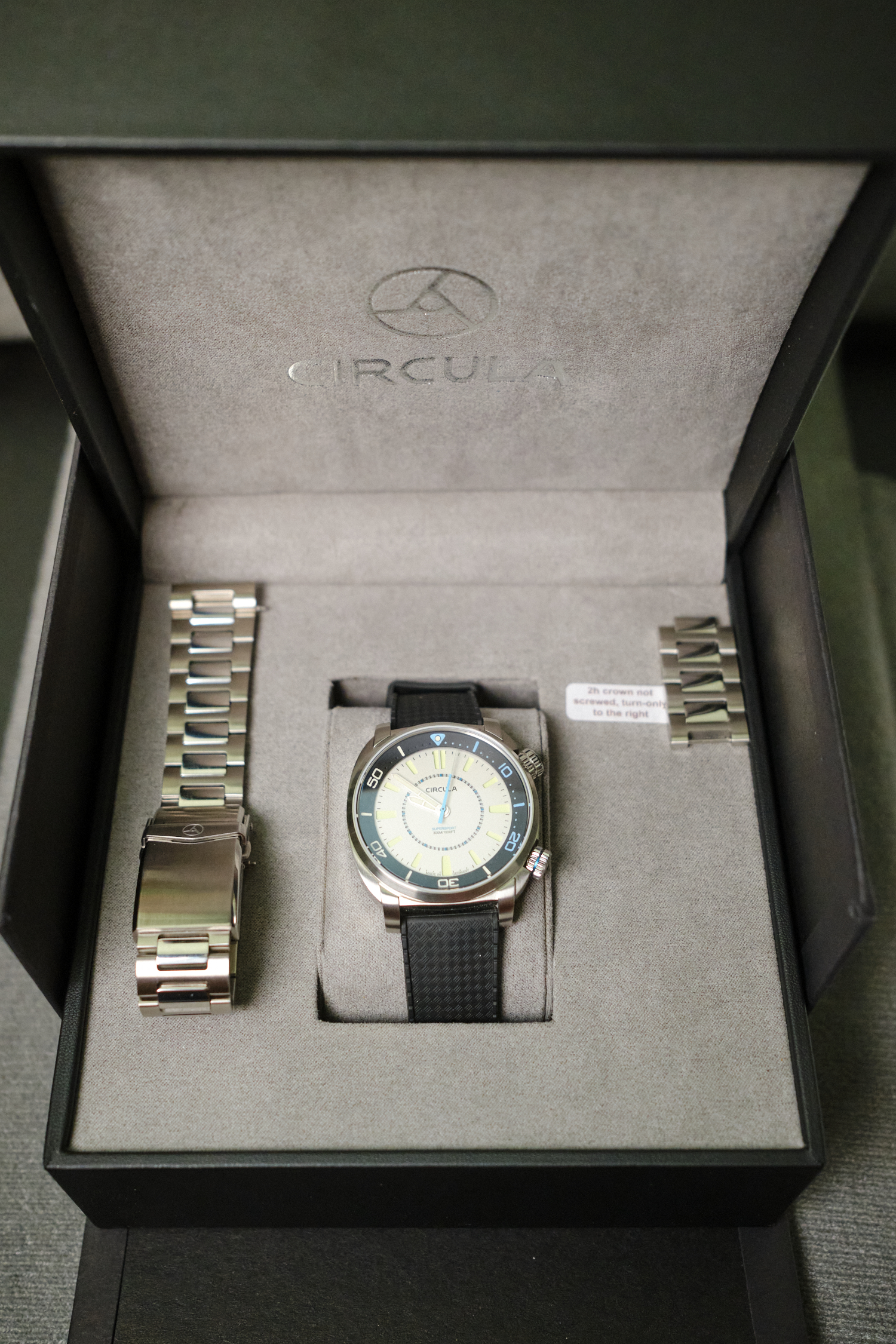 ·Reducing my watch collection a bit. Recently purchased this watch directly from Circula. It is their new Super Compressor watch with the white face. I've worn it five or six times on the tropic strap. I sized the bracelet for my wrist but never wore it. Lovely watch. Condition is very clean. I see one very small mark on the left side of the case - toherwise perfect as far as I can tell. Pictures are the best way to see the condition. I've sold quite a few watches over the years on ebay with 100% postive rating. (bcd5555) Been a member here for a while, usually pop in to see the WRUW forum and occasionally the listening forum. Would prefer to sell this direct rather than deal with eBay anymore. $600 Full box, card, warranty, etc. Prefer Paypal F&F. I'll pay for shipping in the U.S. via Priority Mail or FedEx ground. Details below🙁Price reduced to $575 May 28th, 2022)