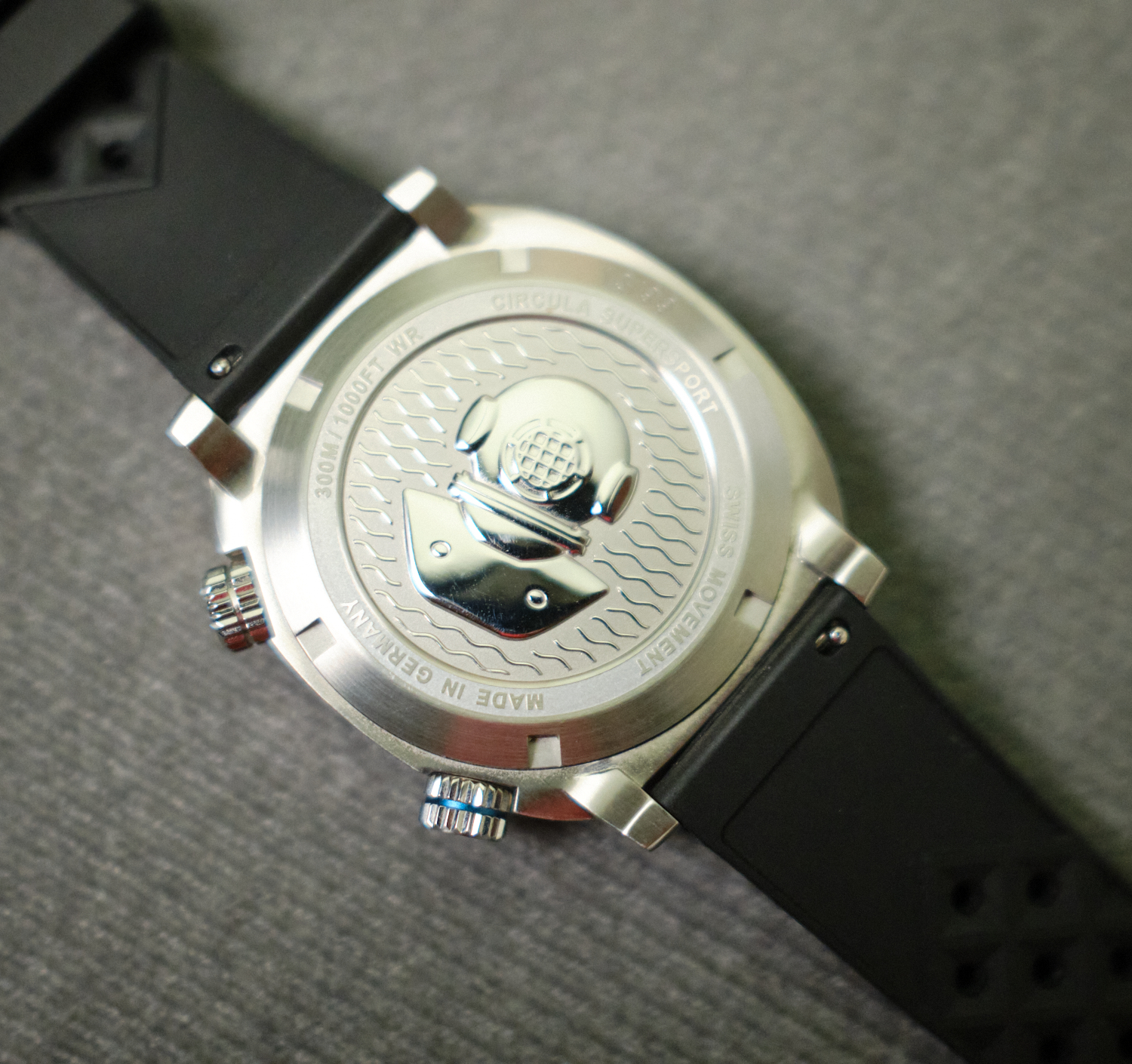 - Weight: 105g with tropical rubber strap, 175g with steel bracelet