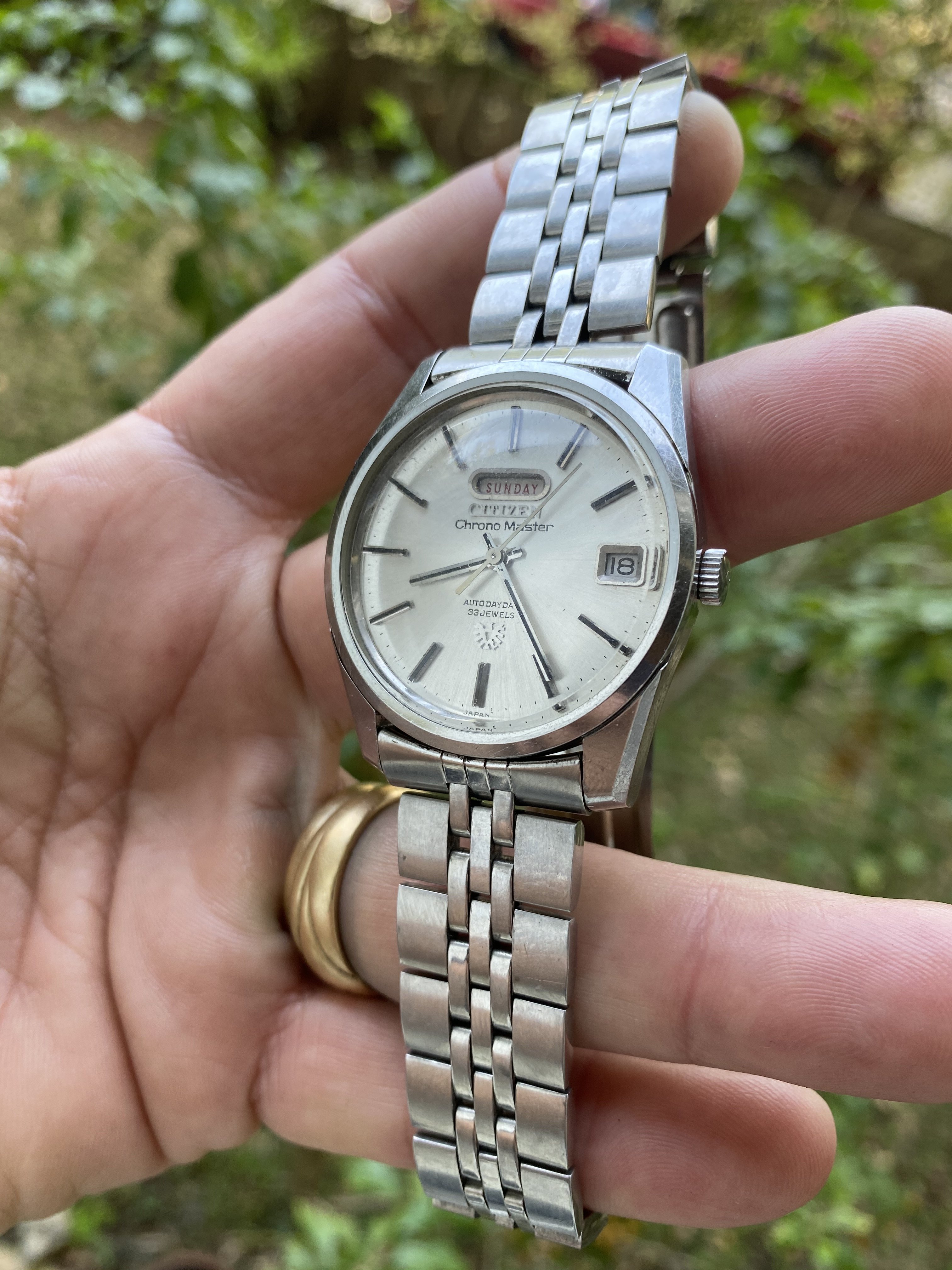 The watch includes its lovely original I614 20mm Vintage Citizen Chronomaster Chronometer Bracelet Solid Link 131.2 (200$)