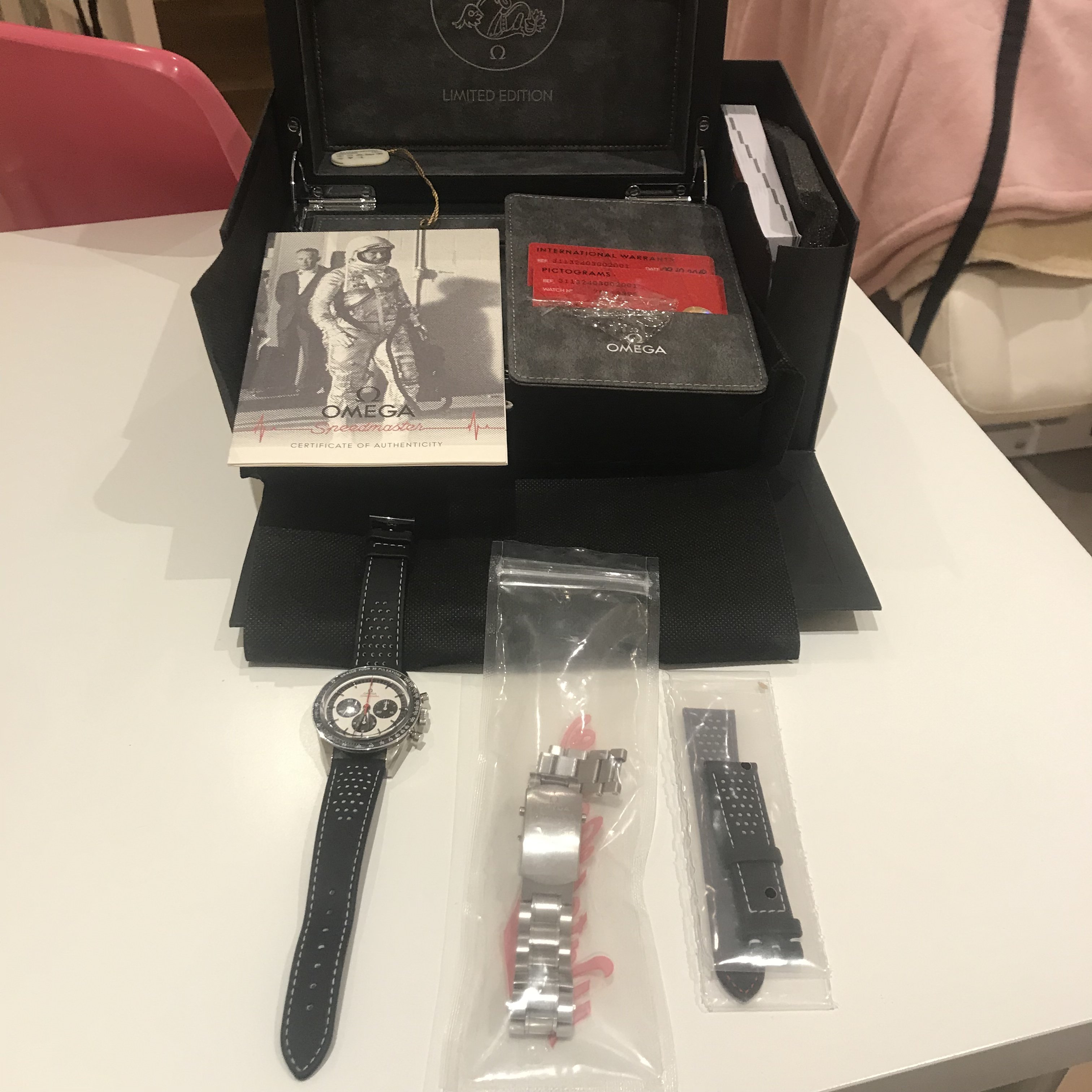 Also, I have a spare omega strap and also the speedy racing bracelet which makes the watch a lot more sporty. The strap is unused and the bracelet is a couple of years old and in great nick with a few scratches to the clasp.