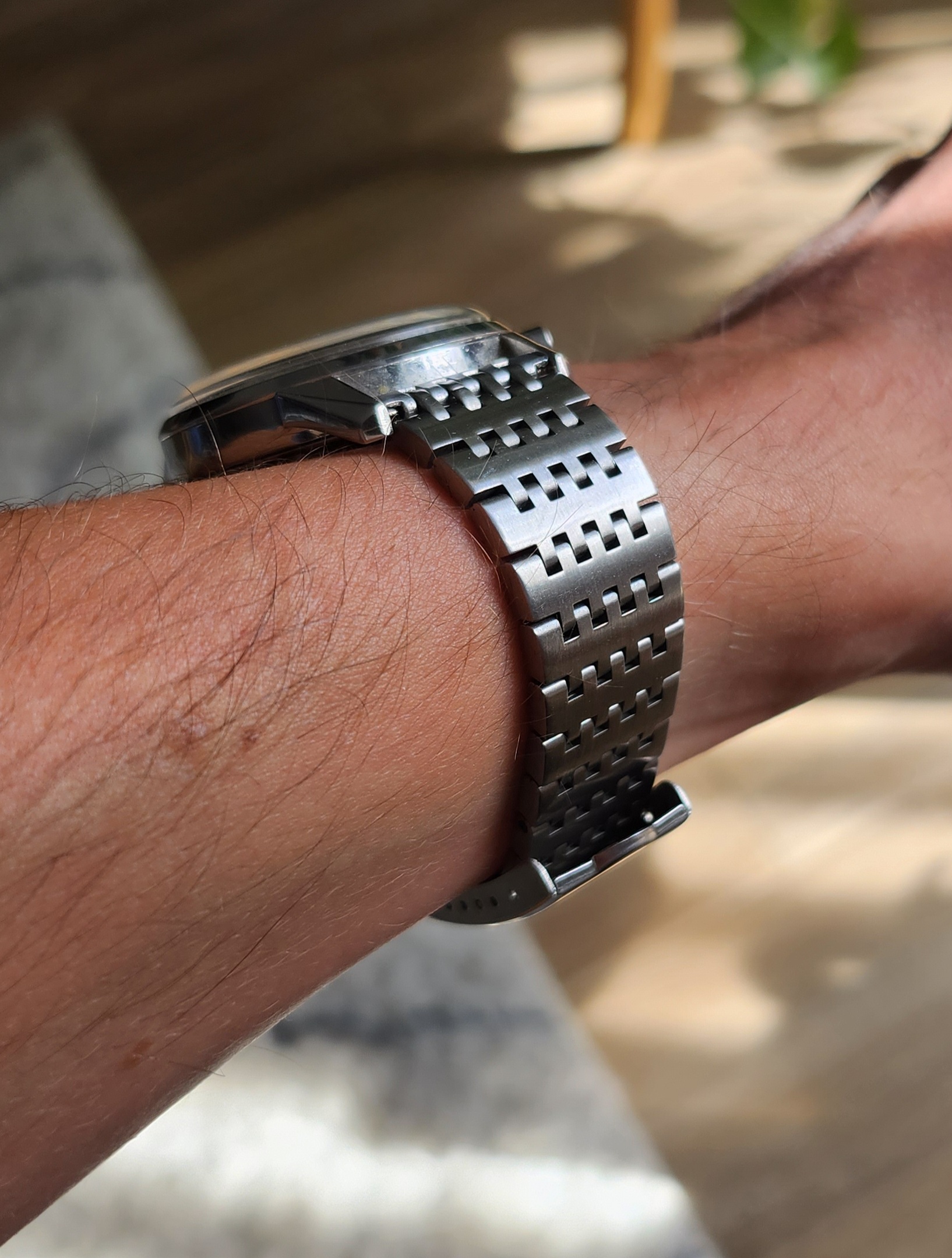 It's not necessarely designed to fit perfectly as the bracelet has straight end links but I just wanted to play around with it.