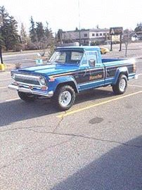 Caught without my camera today, and my cell phone (not a smart phone) takes horrible pictures. I spotted a spectacular AMC Jeep model called a Honcho, from circa 1976. Jeeps from this era generally look like a candidate for the wrecking yard. But this one was, well, spectacular. I took this shot with my crappy flip phone, dashed home to get my camera, but when I returned to where I spotted it, the Jeep had departed. With a bit of photo editing, this is the best I could do.