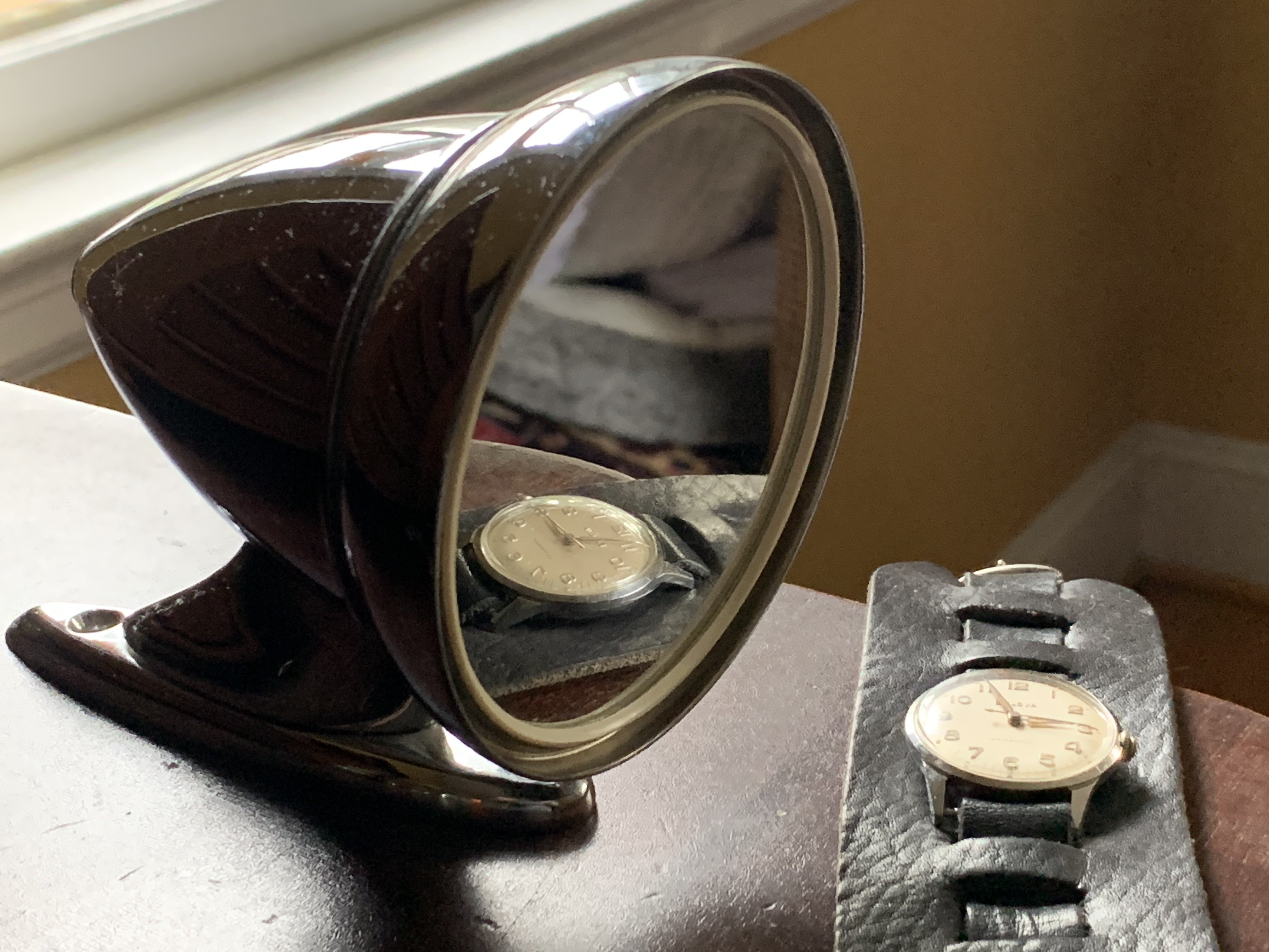 I changed the mirror - switching from the original Talbot and instead placing a Raydot mirror on the drivers side door only. The Raydot has a spun natural aluminum housing vs. the chromed Talbot. With the absence of much of the chrome, I felt that natural aluminum Raydot was a bit more purposeful.