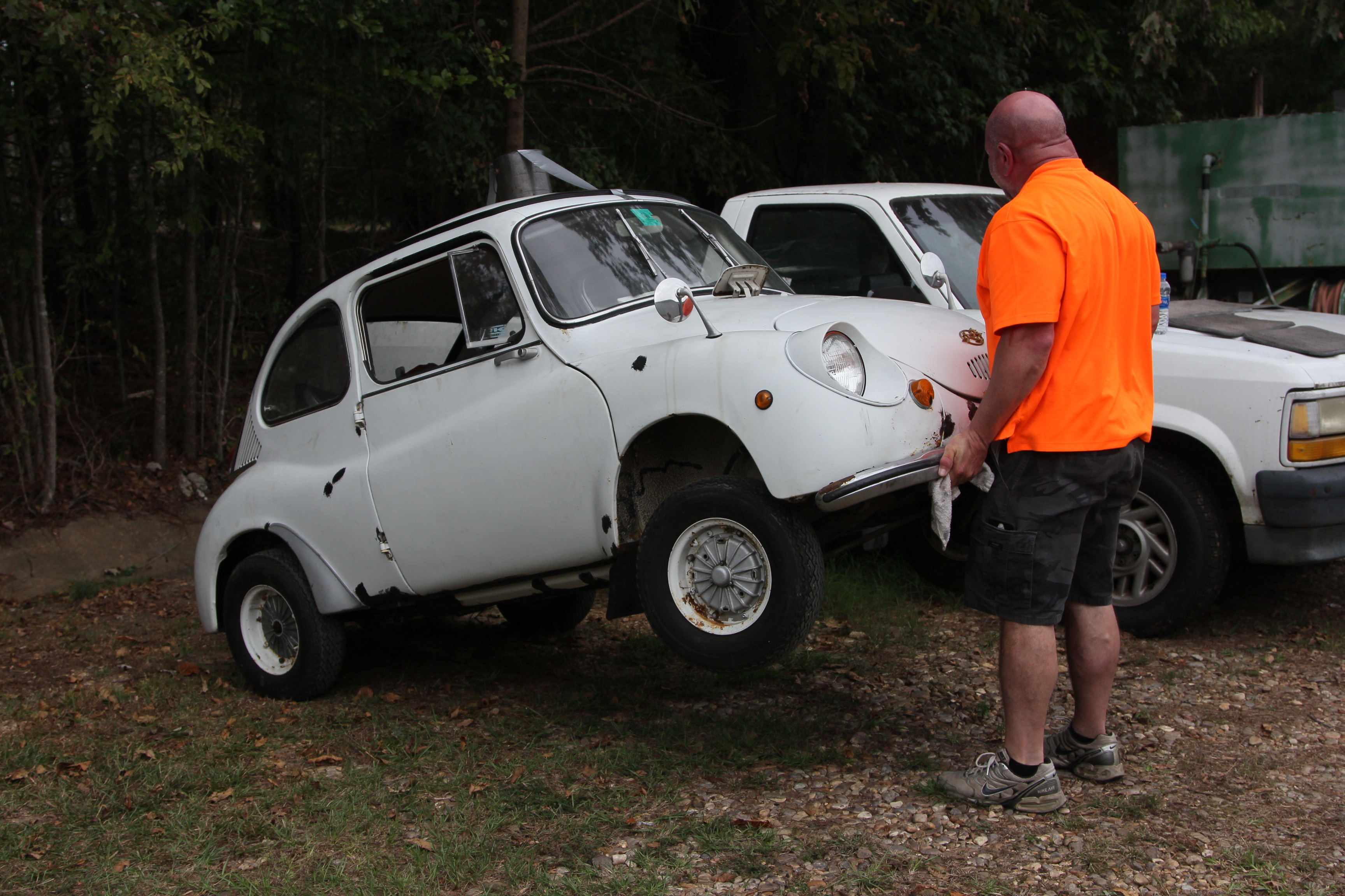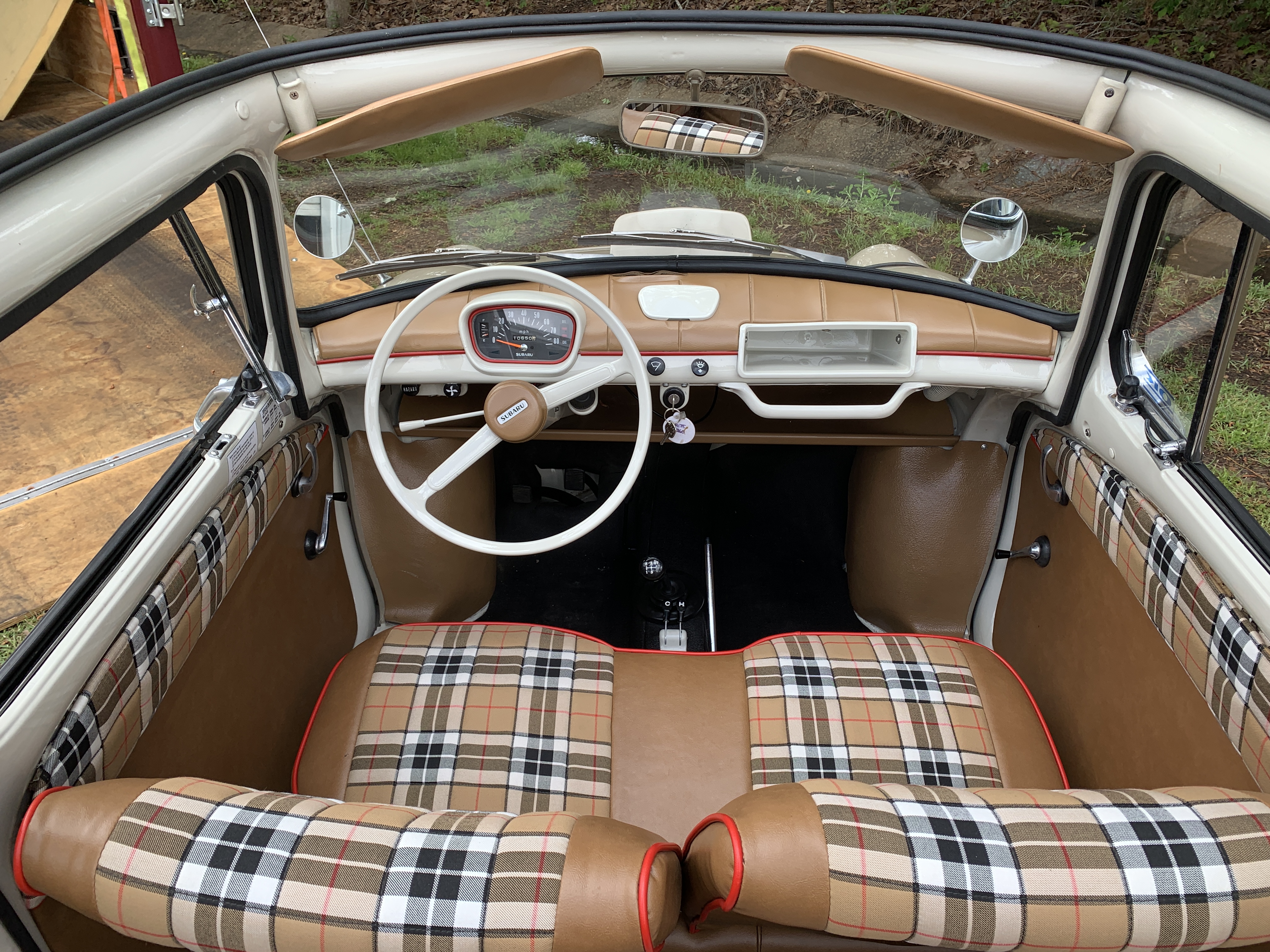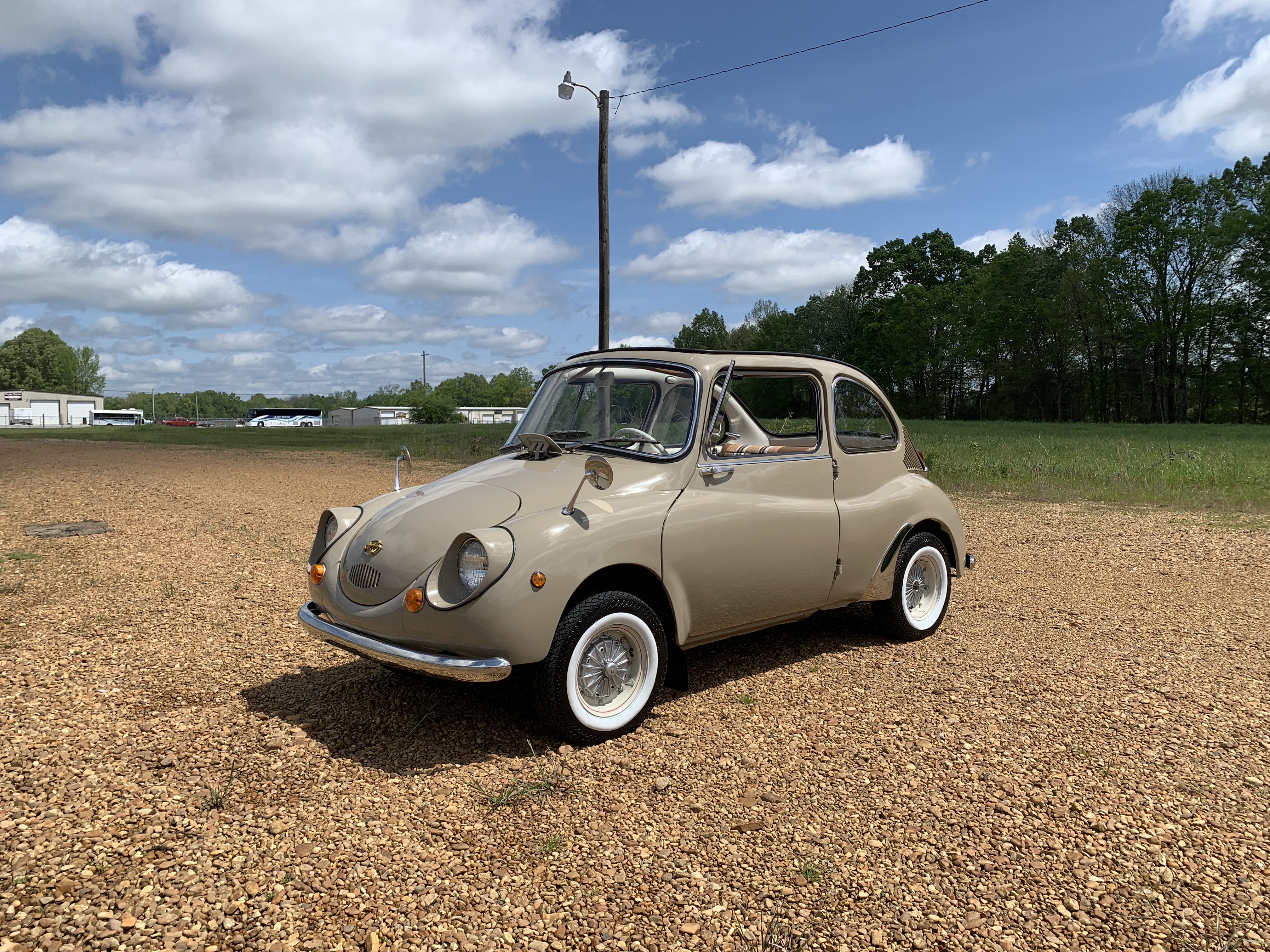 This is one of my cars. Subaru 360 sedan I restored. Air cooled 2 stroke.