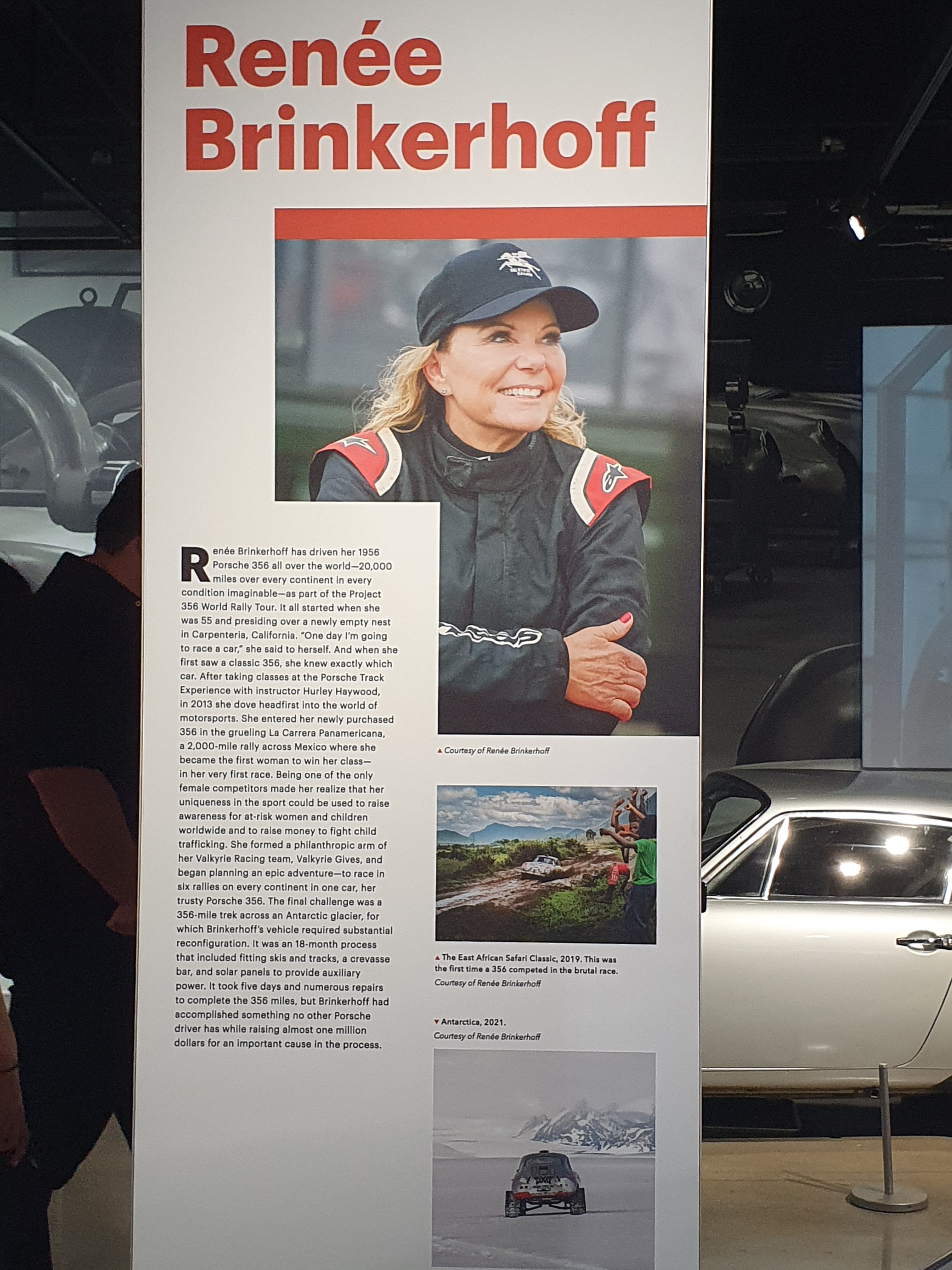 Renee Brinkerhoff drove her 1956 Porsche 356 all over the world, including Antarctica. From the Peterson museum.