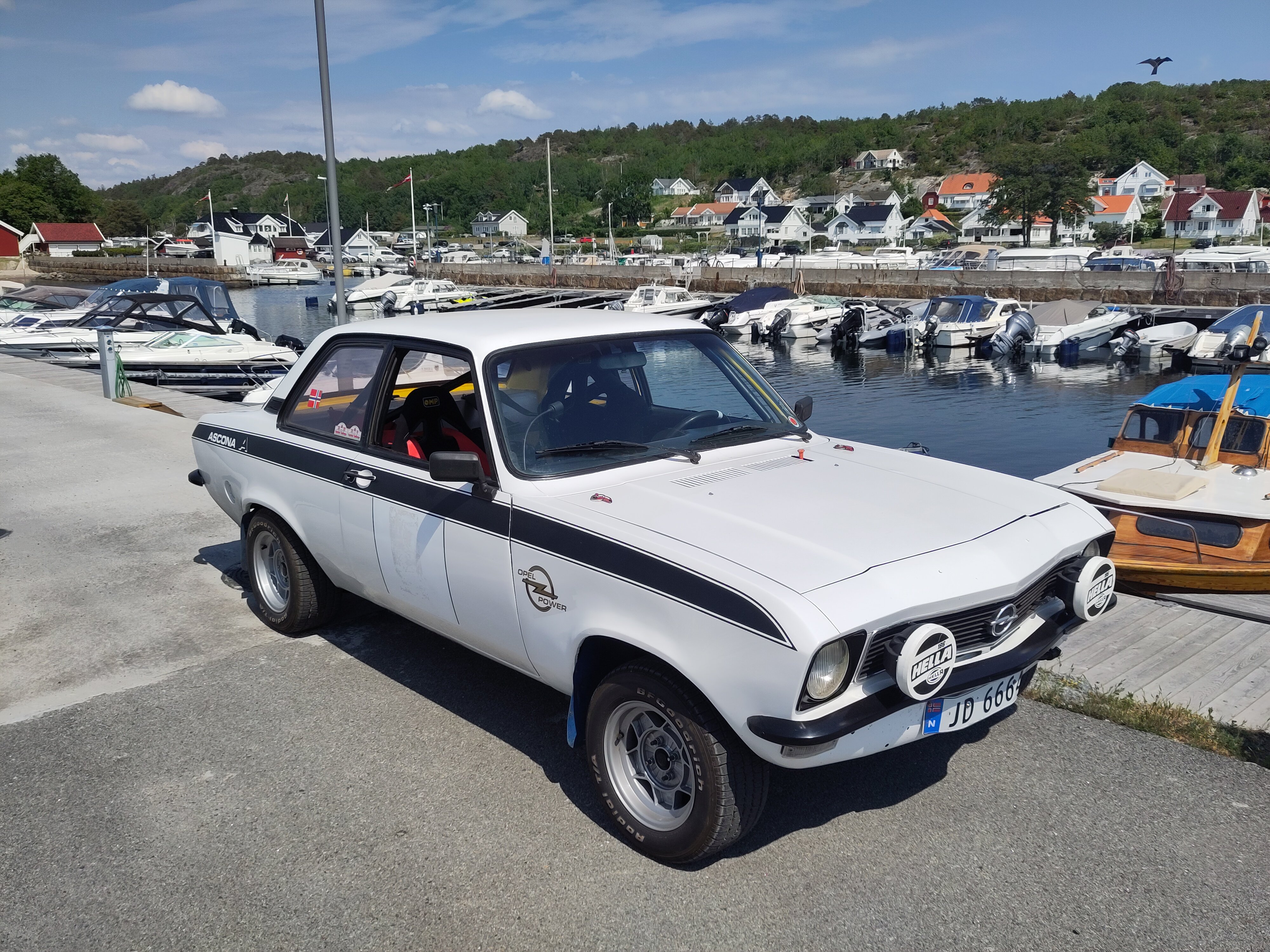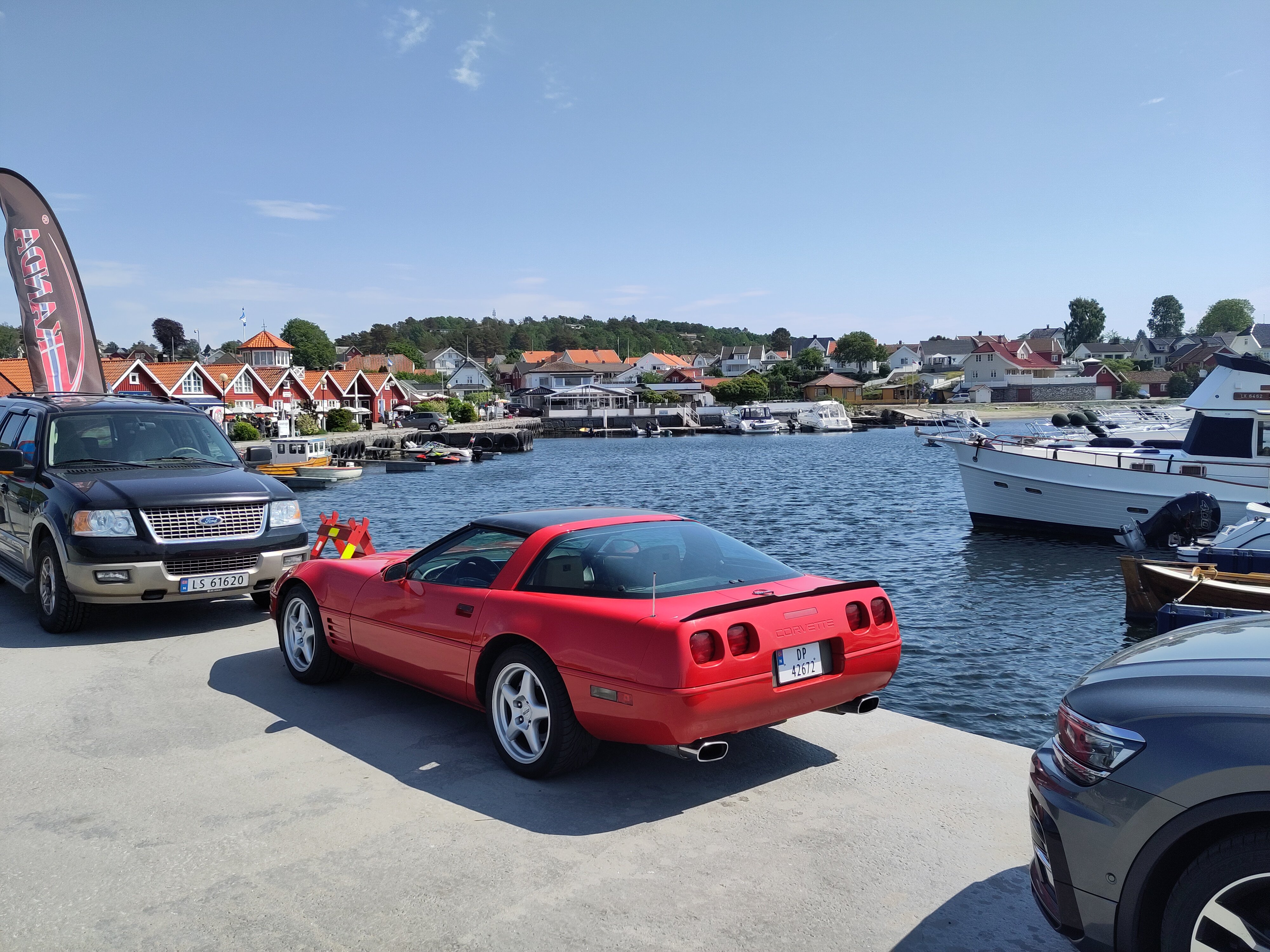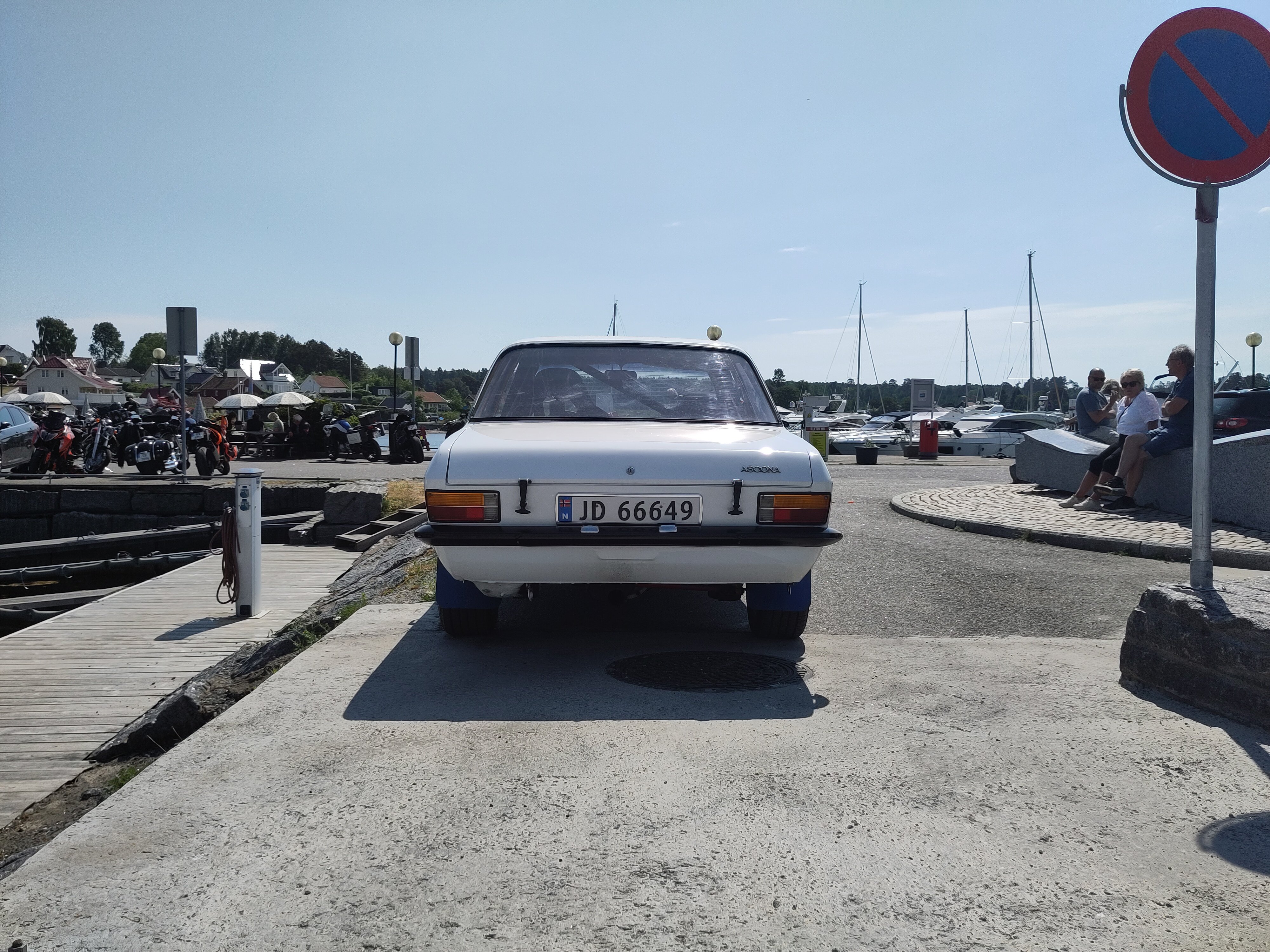 The belt was to keep the body and splatter inside the car in case of an accident probably. Picture is from 1972, the year after seat belts were made mandatory by law in Norway. In 1979 they were made mandatory to use.