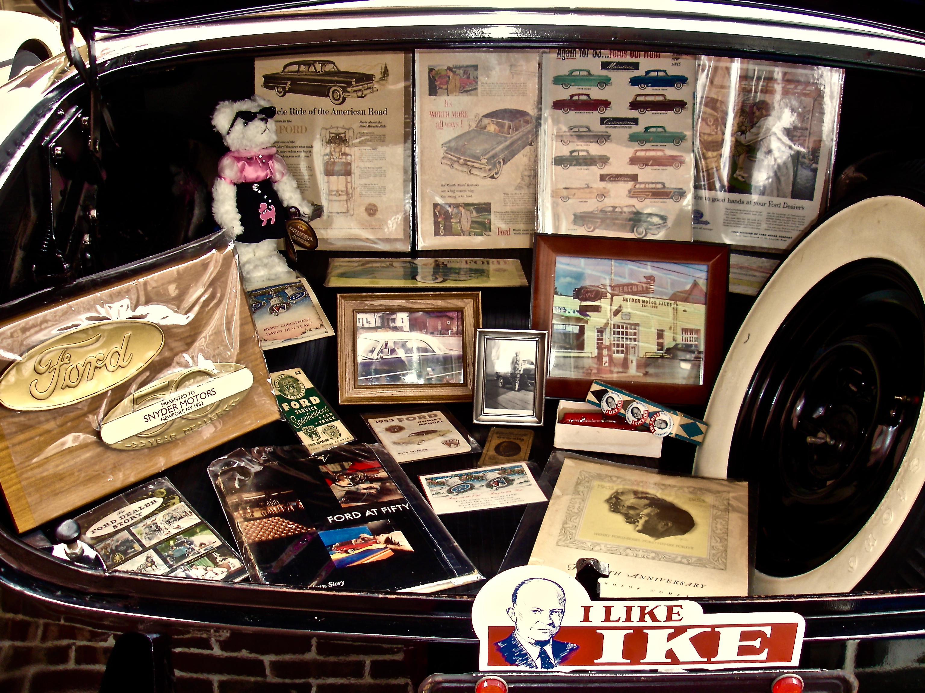 In 1953, my family visited family in Detroit. We visited the Ford Rotunda which was the focal point for the 50th anniversary of the Ford Motor Company. The rotunda was designed by Albert Kahn, and was built in Chicago for the 1933 World’s Fair. Henry Ford had it dismantled brick by brick, and moved to Dearborn. The building burned in the 1960s. The highlight of the show (to me) was a Lincoln convertible with white metallic paint (gold flakes), all chrome gold plated, and all knobs on the dash, solid 14-karat gold. Gold was 35 dollars an ounce then, and there was $8,500 worth of gold on the car. Shearling carpets, white leather upholstery. I wonder where that car is, today! A banner year for Ford.