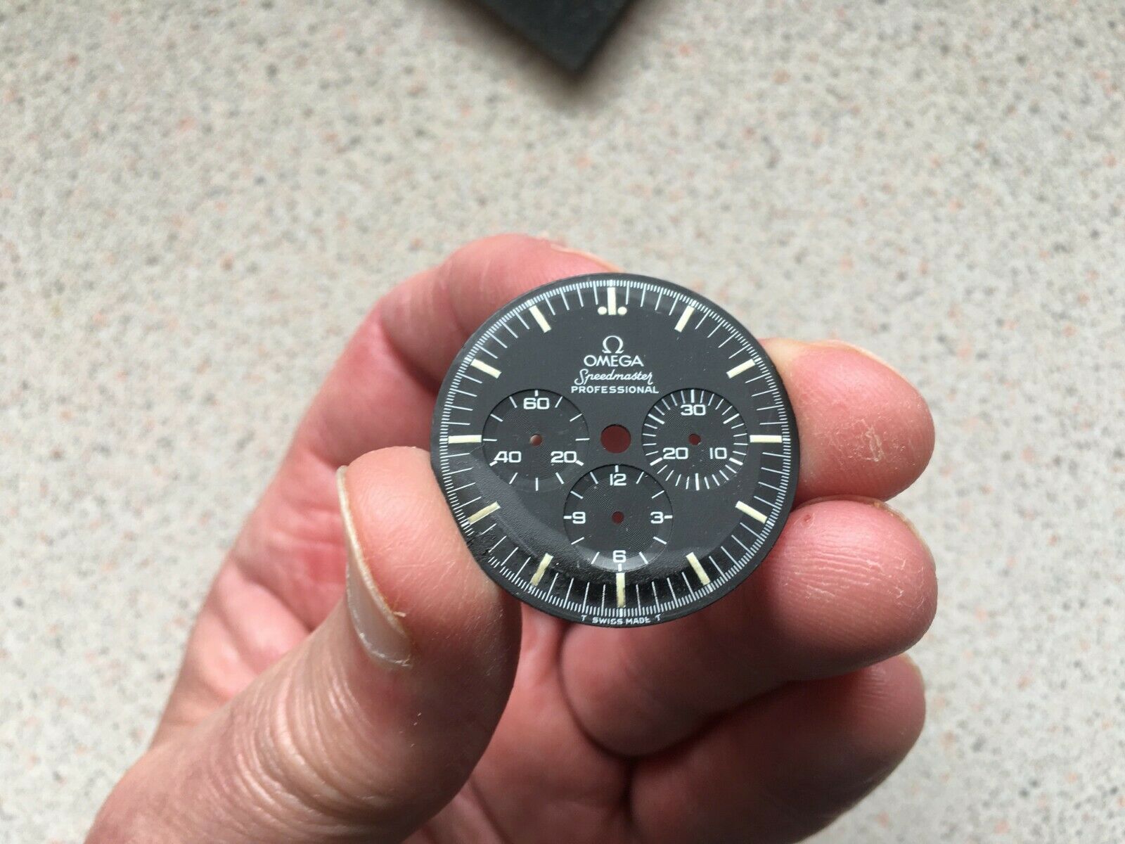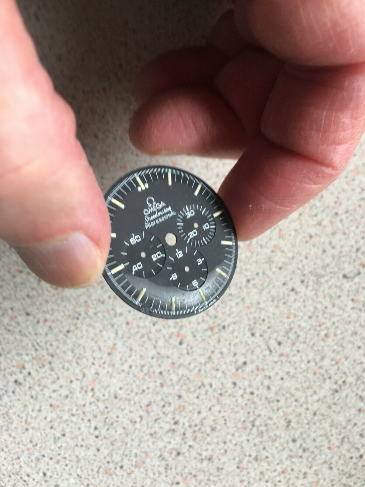Just to show some not so good outcomes with watchmakers cleaning dials, these were sent to me by very upset watch owners to ask my advice on what to do, and why a watchmaker would even think of cleaning the dials they sent them. This one was washed...removed some lume and generally made a mess of it: