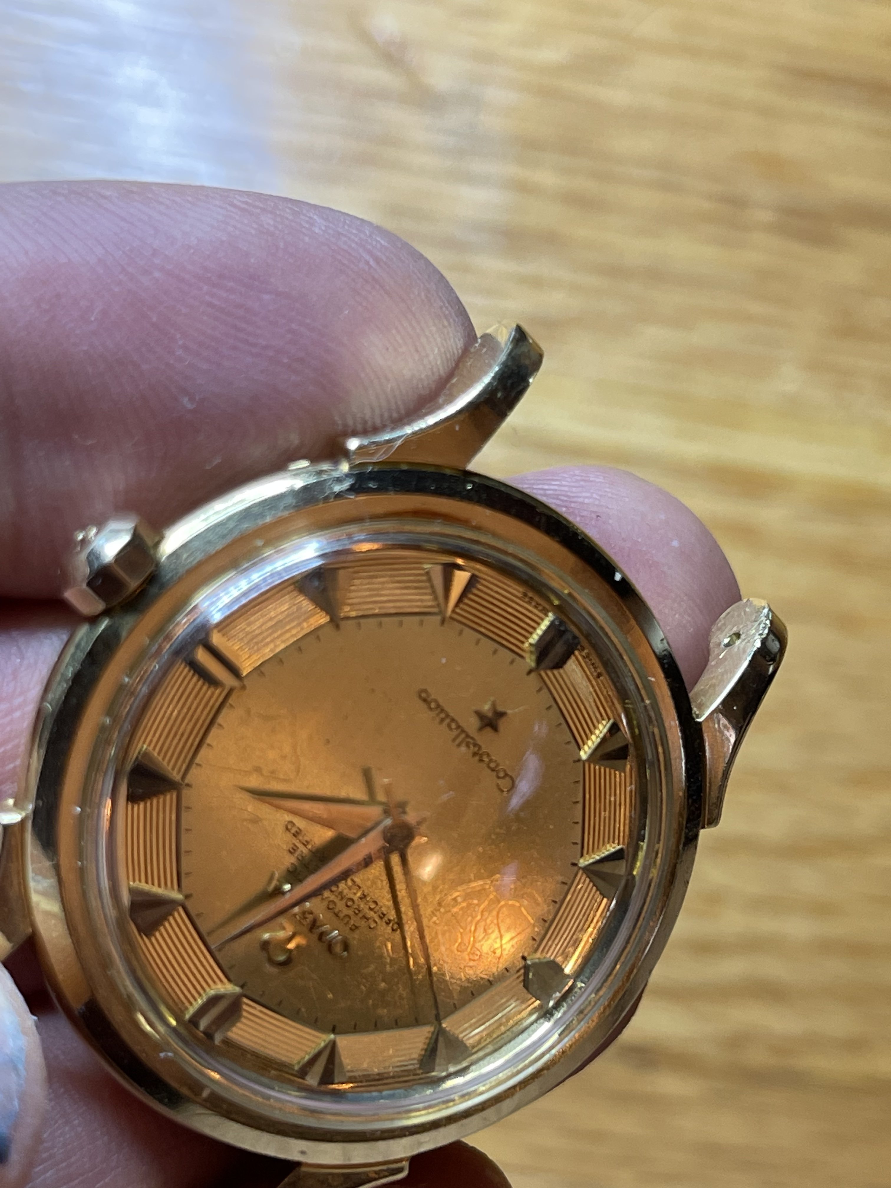 ·Is this fixable? Has anyone seen anything like this? I just got this in the mail. It almost looks like someone put tape on the dial, it got old, and when they pulled it off, it left some residue. There also appears to be a scratch (on the left side of the dial) on the coating, but not through to the metal.