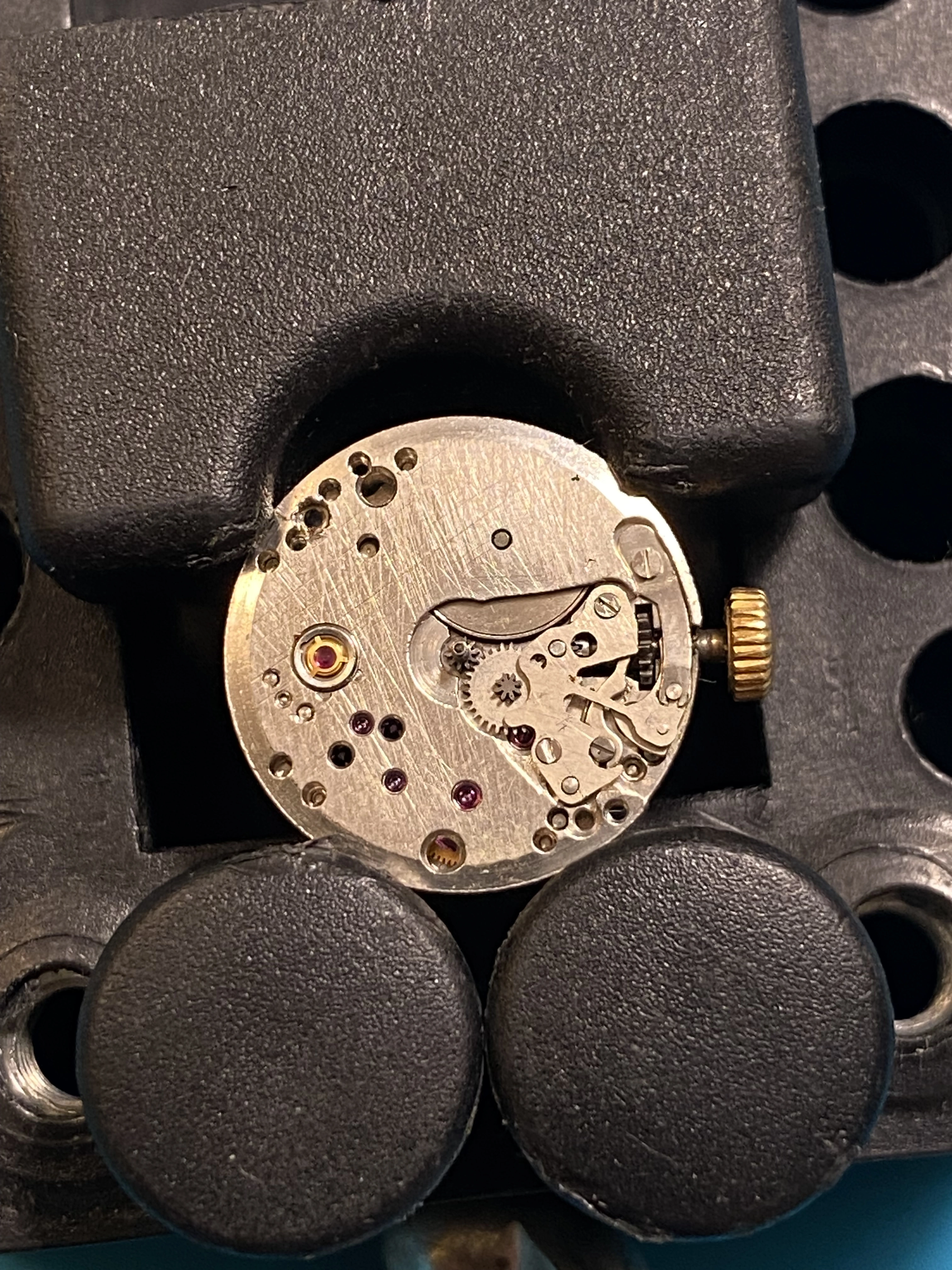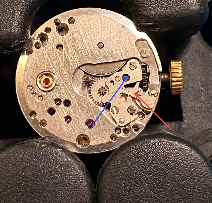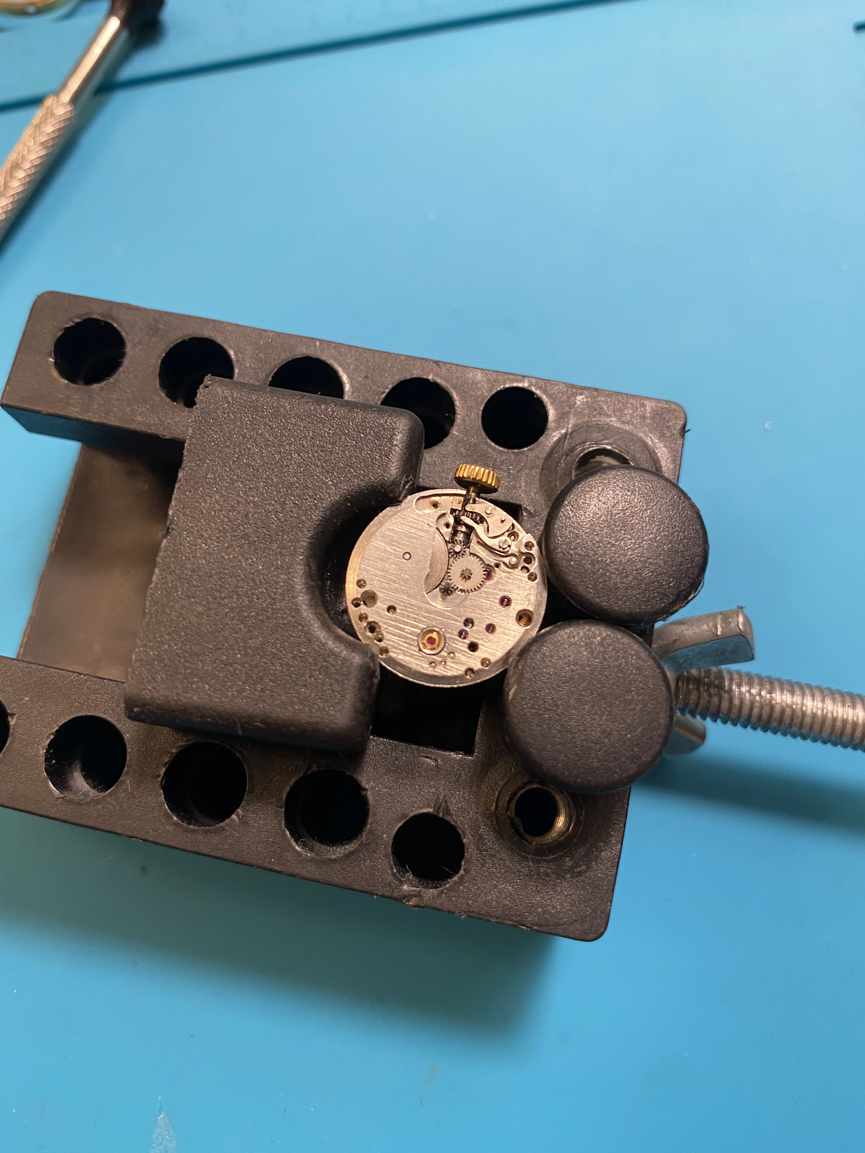 I‘m doing a service on this russian ladys watch(Beginner). Before dissasembling the Watch i noticed that the keylessworks doesn‘t work. The clutch lever was fixed with a screw without a thread. It was stuck in the mainplate just like an axle. It seems to be excentric. So im assuming that it is adjustable. While dissasembling i noticed that the clutch lever was out of place(like you can see in the photo). My question is:1. how do i install/adjust it correctly?