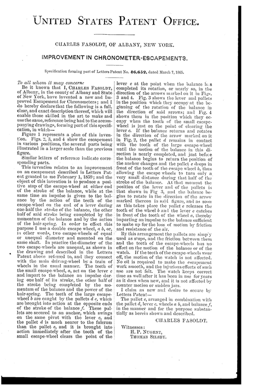 After first patenting his escapement in 1859 Charles Fasoldt made several of these for sale at about $300 a pop, a shitload of money in those days They were 20s pocketwatches, made in USA.