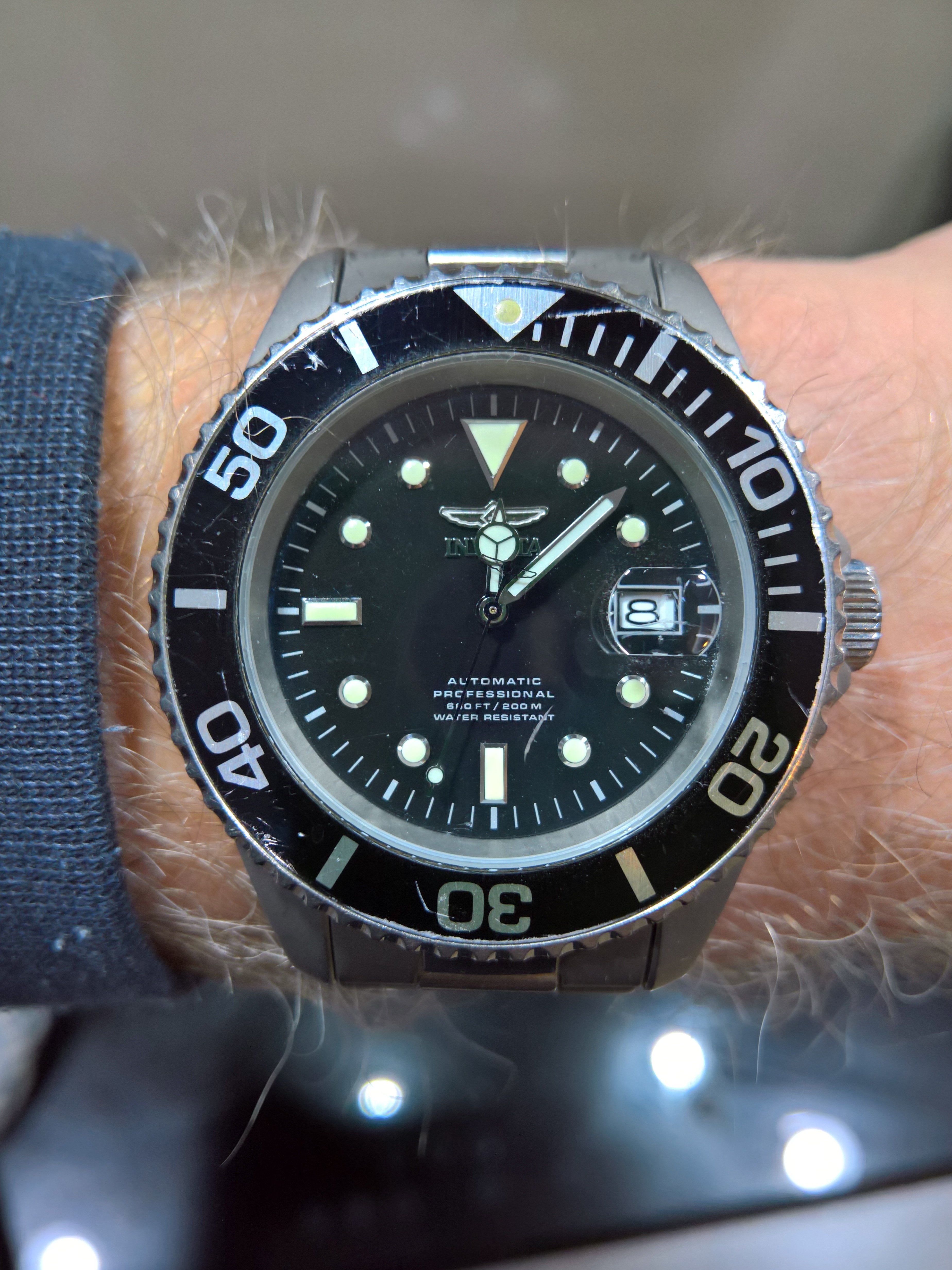 He came in Monday with a big shiny Invicta with a blue bezel that looks similar to a Rolex sub. If people like invicta I have no problem but he specifically said he “wanted something well built and low key”. Well imo that invicta is neither.