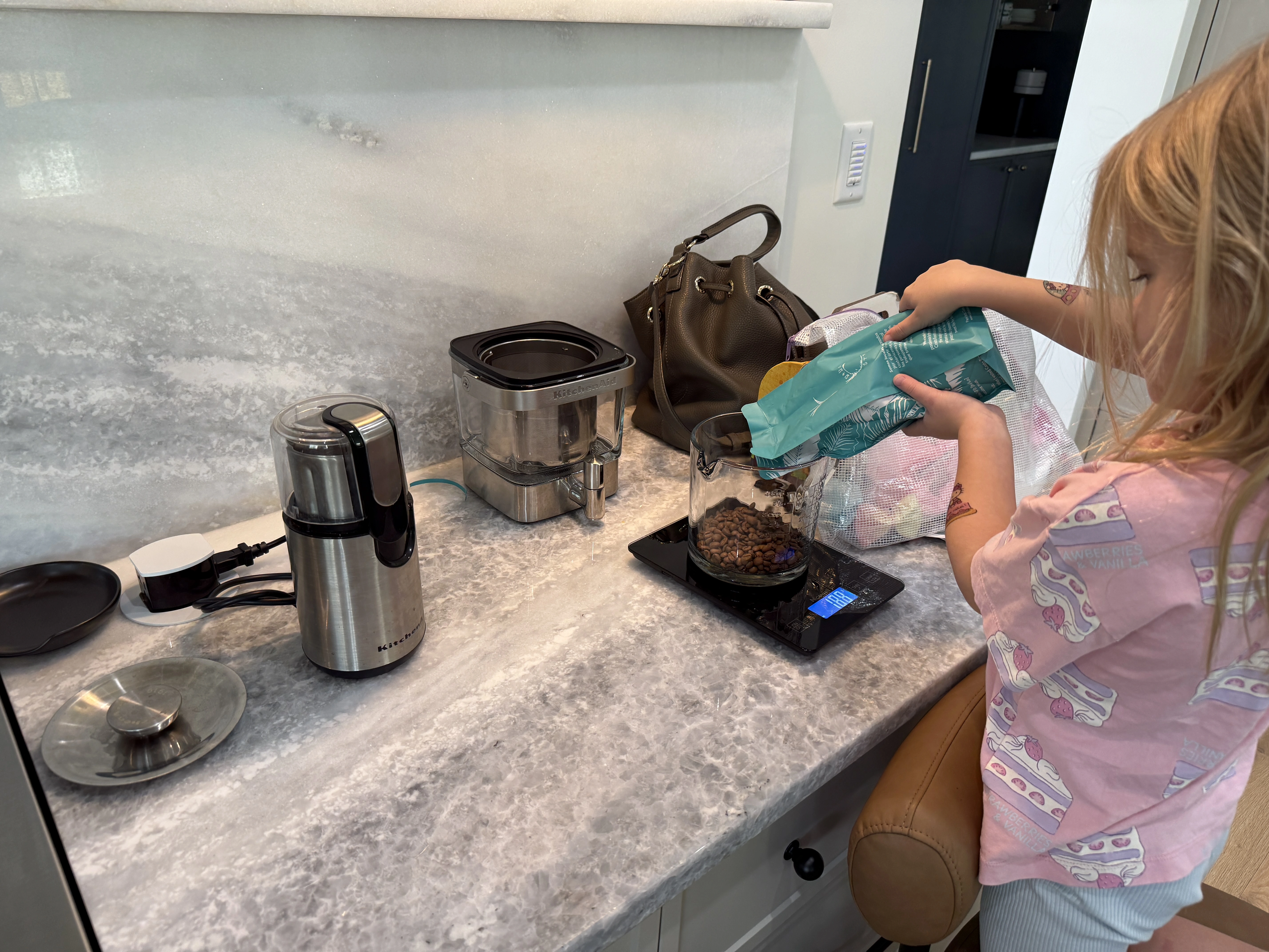 Me to her prior to making the coffee - “Hey Owen, do you have any idea where my scale is?” “Yeah dad, it’s in my room I was weighing my rocks”