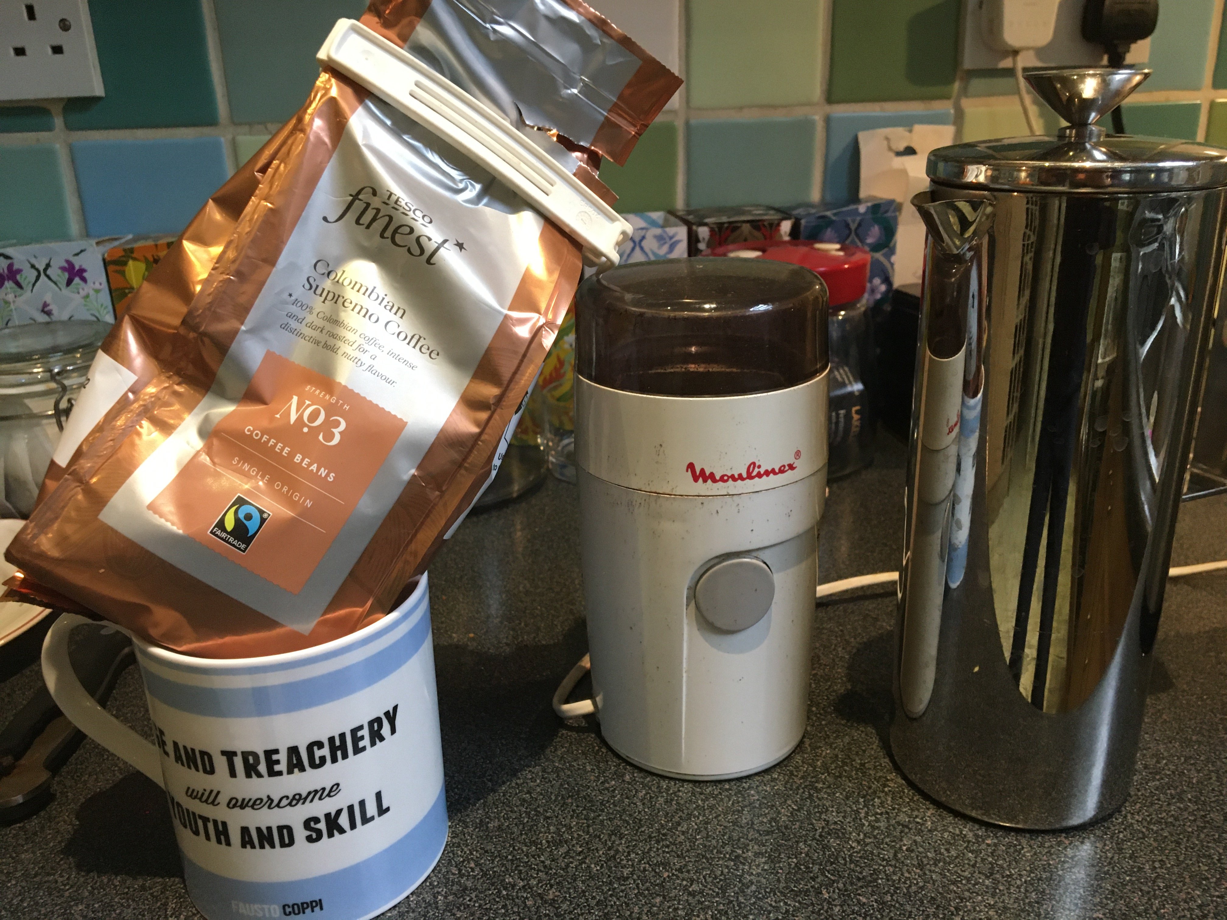 Here’s my set up. Two cups a morning of straight filter coffee then I’m into peppermint tea for the rest of the day. THere's an expensive espresso machine somewhere in the house but it hardly gets used.