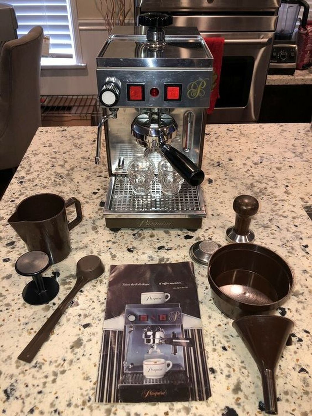 One of my hobbies is rebuilding vintage Olympia espresso machines--Cremina, Maximatic, Coffex. These things were built like tanks, and will run forever with some new gaskets and the occasional pump/solenoid/pressurestat. I recently scored the find of a lifetime: a new-old-stock Pasquini Livietta from 1984. Original box, styrofoam, instructions, coffee scoop, etc. The Liviettas were rebranded Maximatics, so all the parts are interchangeable--but no parts were needed on this machine. I rinsed out the boiler, started it up, and made a very nice latte. There will be many more...