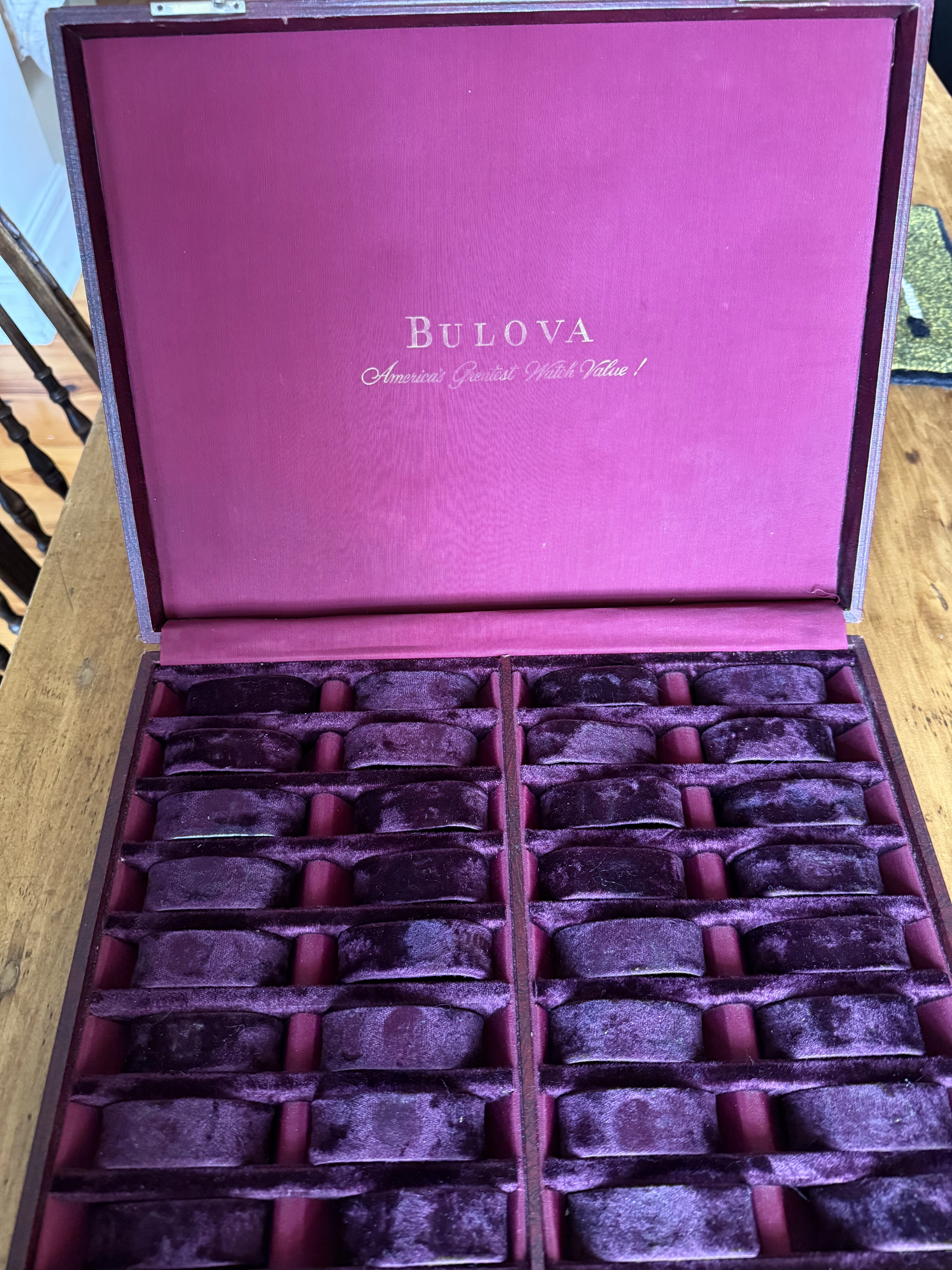 That got me thinking… Bulovas are inexpensive, pretty and usually run at any age… I should fill that box with nice looking Bulovas. No time limit.